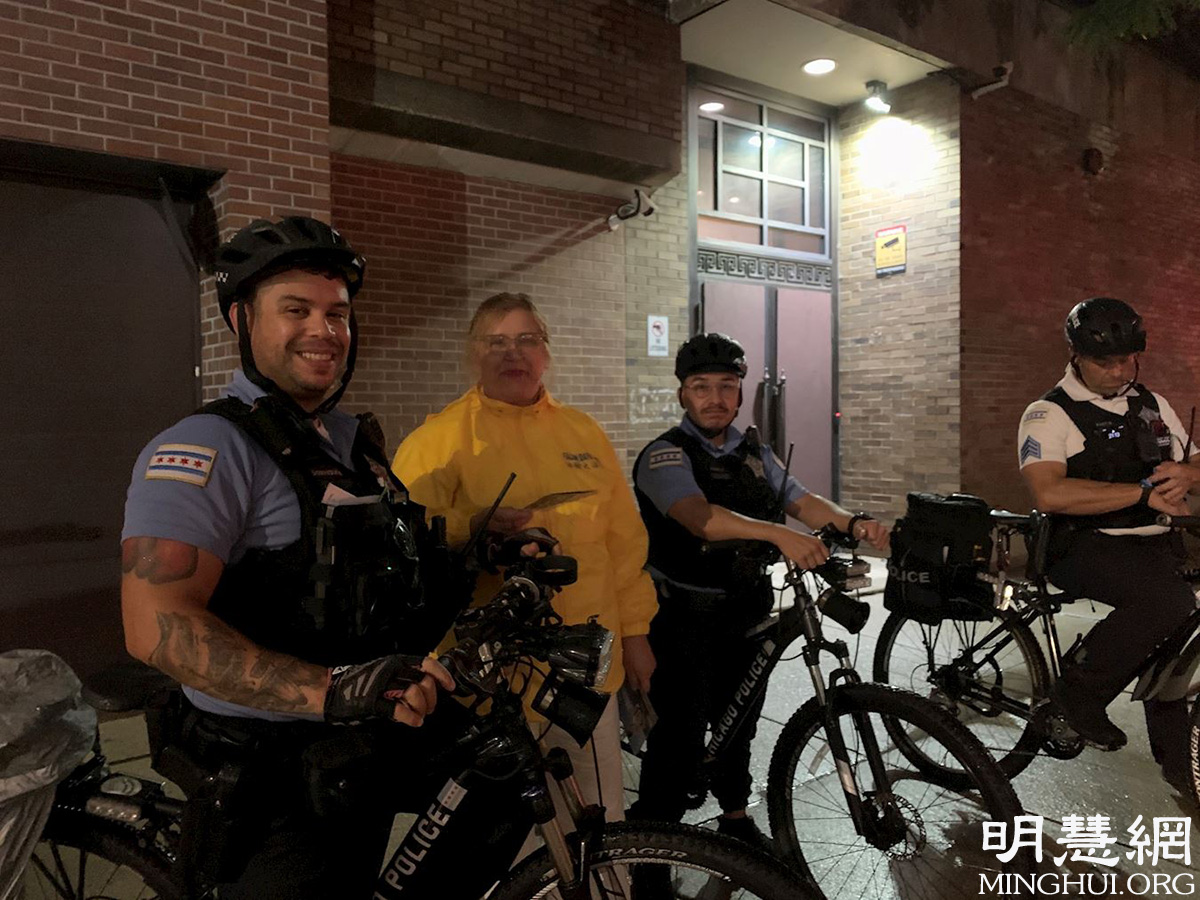 图5:芝加哥警察很高心了解了真相并感谢法轮功学员