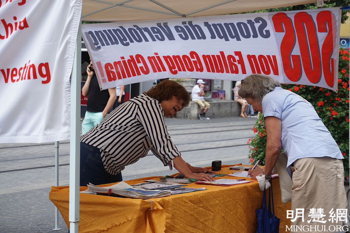 一个来自克罗地亚、在德国已经生活了二十多年的中年女士问学员,“活摘法轮功学员器官,这是真的吗?这太罪恶了,太可怕了!我们必须要阻止这个罪行,虽然它发生在中国。我们应该广而告之,让更多的人知道。”