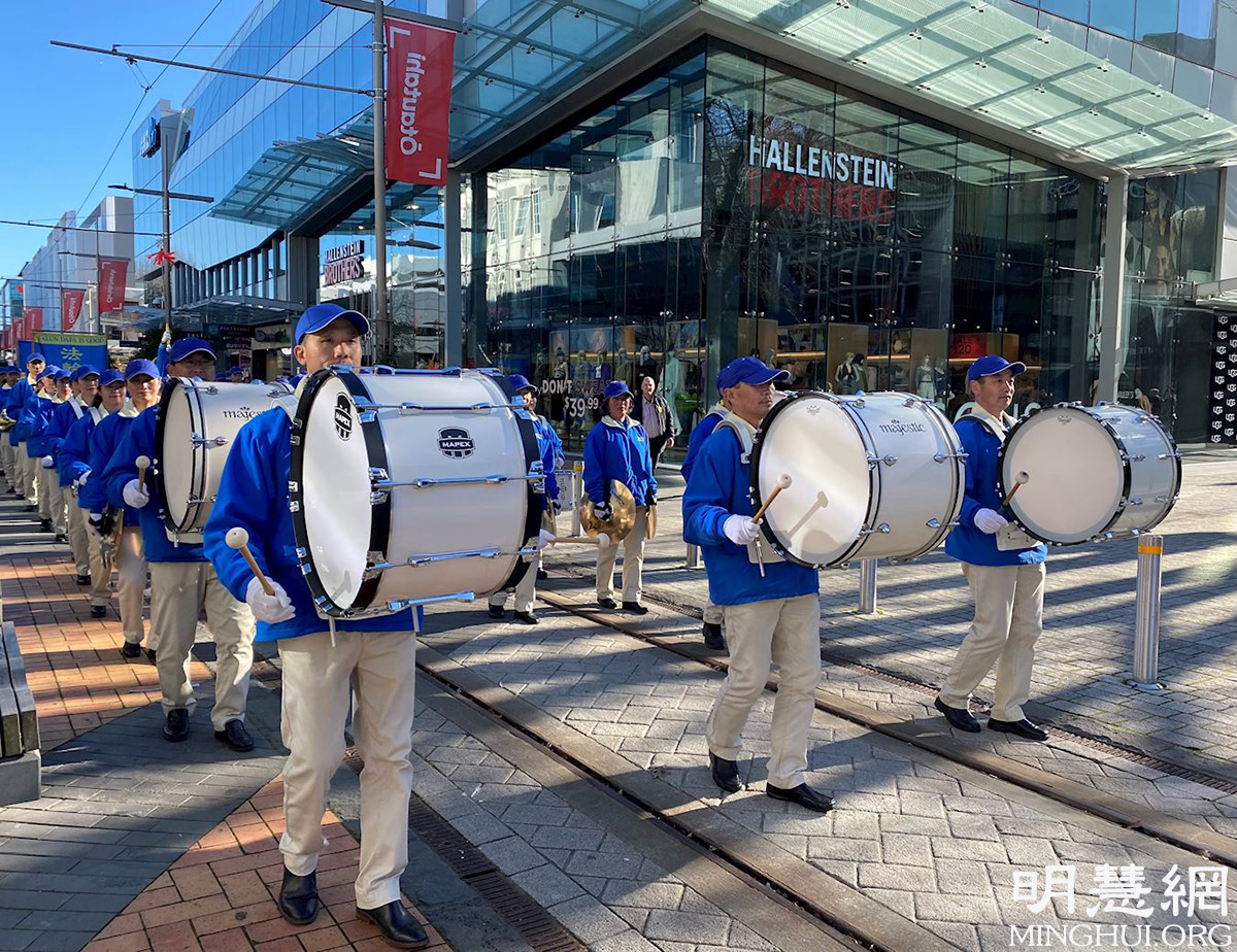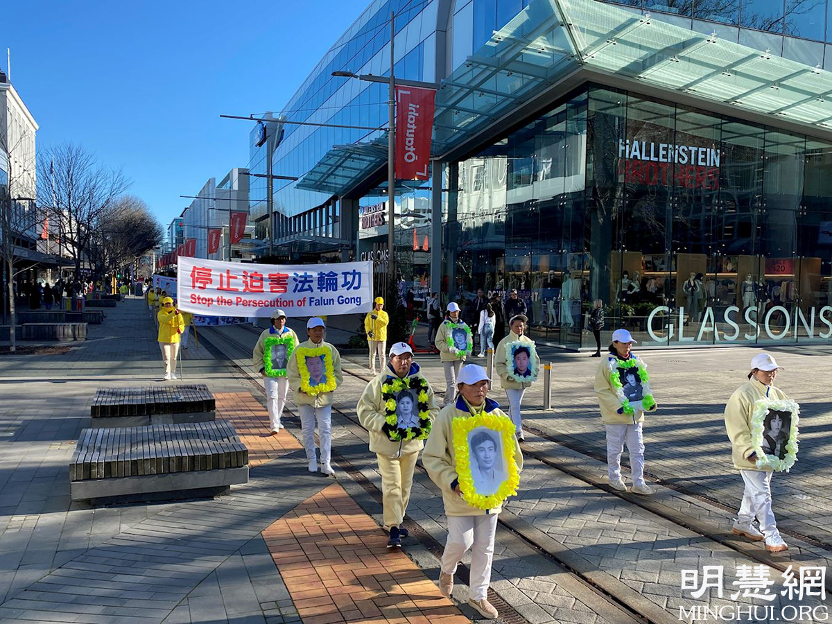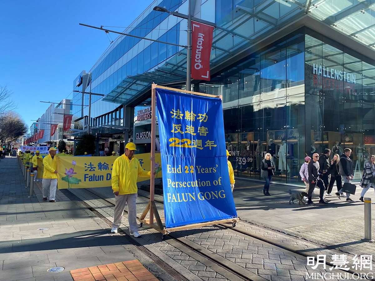 '图1~7:新西兰法轮功学员在基督城市中心游行反迫害'