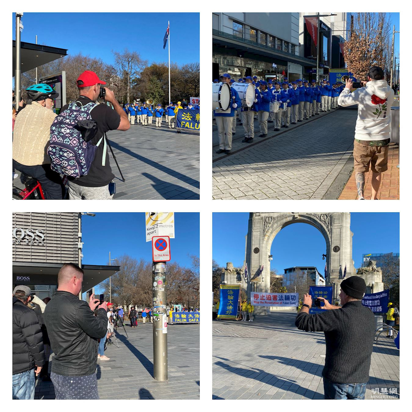 图1~7:新西兰法轮功学员在基督城市中心游行反迫害