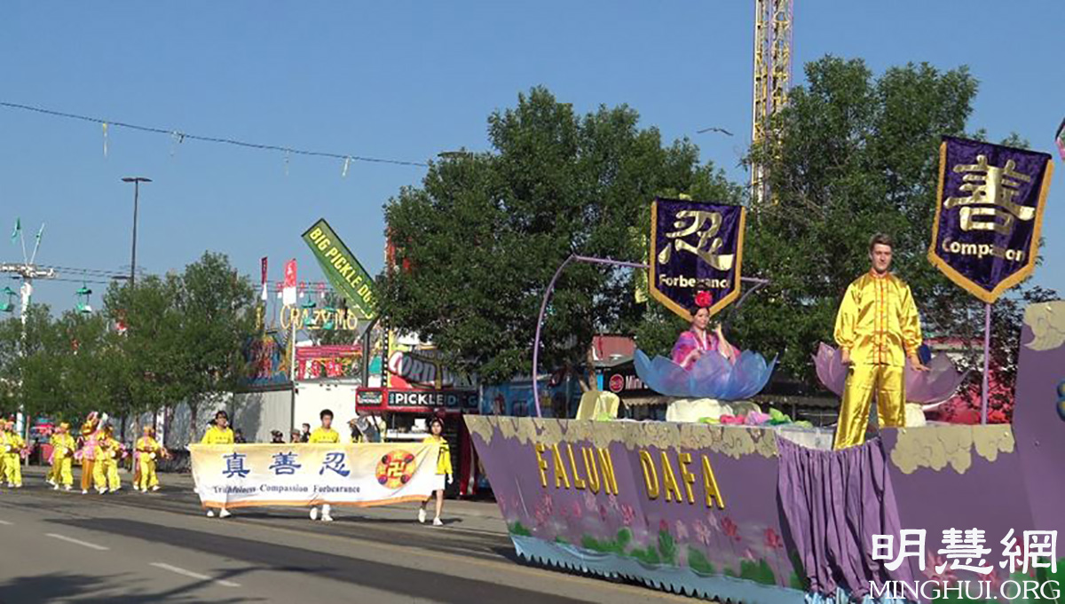 【明慧网二零二一年七月十三日】加拿大卡尔加里牛仔节是北美最著名盛大的户外庆典活动之一,拥有“世界上最精彩的户外表演”,“真正的西部盛会”的美誉。这个有着110年历史的盛举,因疫情于2020年首次取消。二零二一年七月九日,牛仔节在人们的期盼中如期举行。但举办形式有所变化,游行以电视和网络现场直播的形式面向观众。今年的直播,九日当天就已达4.5万人次。随后电视台做了游行直播亮点片段剪辑,法轮大法方阵再次被精彩展现。