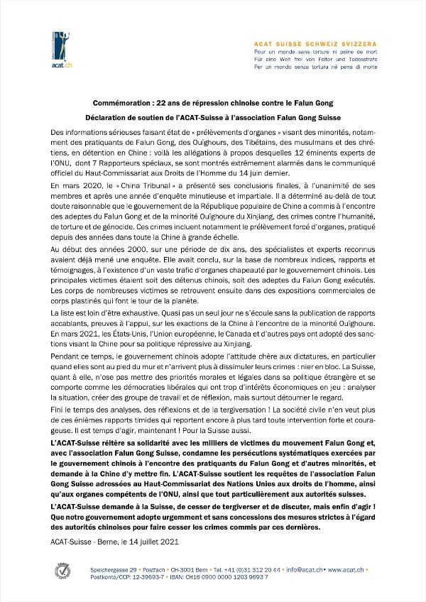 本次集会另外一个突出的主题是对中共活摘法轮功学员器官的谴责。美国国际宗教自由委员会(USCIRF)政策分析主管库尔特·沃斯米勒(Kurt Werthmuller)博士表示, USCIRF 最近的二零二一年年度报告强调了在二零二零年,中国法轮功修炼者继续受到当局骚扰、拘留、监禁和酷刑。联合国人权专家也发表了国际报告,严重关切中共活摘法轮功修炼者器官的可怕不道德行为。他还说,活摘器官这样的罪行在21世纪的今天是不应有容身之地的。在中共建党100周年之际,中共必须接受其应受谴责的迫害历史。