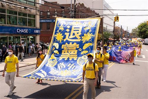 第三方阵为“解体中共、声援三亿八千万同胞退出中共党、团、队组织”,展示着滚滚退党大潮。