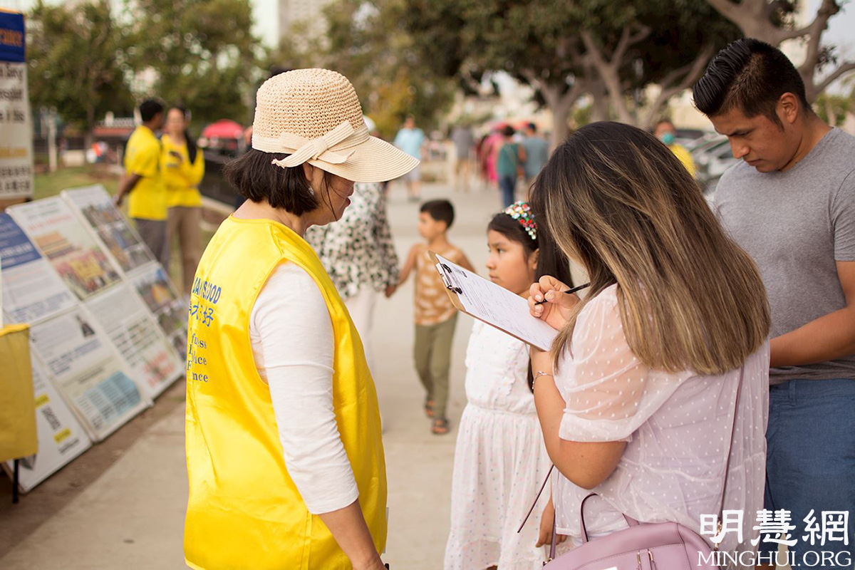 ![]() 图4:民众签名支持法轮功反迫害 |