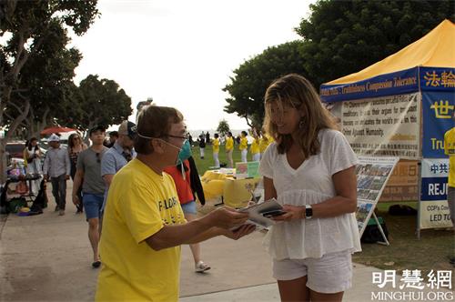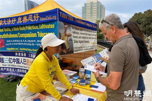 一位男士告诉三退义工,他是刚从大陆来到这里的,今天是第一次看到这个游行,“从来没见过”,同意义工说的“共产党坏事做绝”,并当场同意退出曾经入过的少先队。