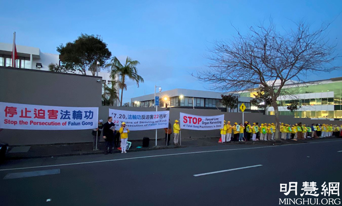 【明慧网二零二一年七月二十一日】(明慧新西兰记者站报道)二零二一年七月二十日傍晚,新西兰法轮功学员在奥克兰中领馆前举行烛光悼念活动,悼念在二十二年里被中共残酷迫害而失去生命的法轮功学员,并呼吁新西兰社会各界反对中共暴行。
