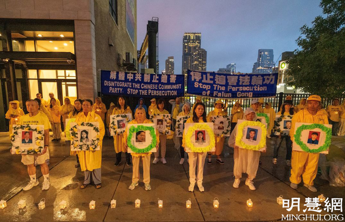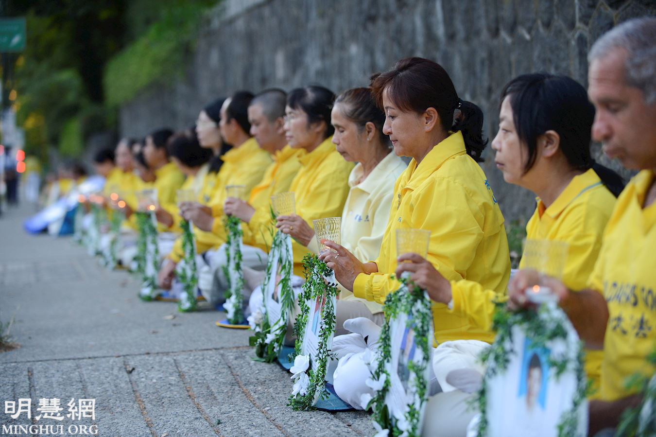 在市中心市政厅前,法轮功学员展开“停止迫害法轮功”和“法轮大法好”的横幅,在点点烛光中,静坐悼念。法轮功学员蒙吉(Mongeau)女士表示:“我们在这里举行烛光夜悼,是为了呼吁结束中共的反人类罪。22年来,每年都有无辜善良的人因为信仰而被迫害致死。真、善、忍的原则正直、让人受益,迫害这样的信仰毫无道理。中国的法轮功学员长期坚持和平抵抗,我们想让他们知道,我们在全力支持他们,并竭力揭露他们所遭受的人权迫害。同样重要的是,要让更多本地民众了解迫害和活摘器官的罪行,保护他们,避免无意中成为中共犯罪的同谋。”