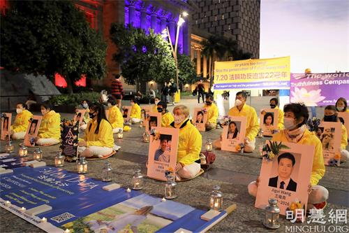 ![]() 图1~2:七月二十日傍晚,法轮功学员在乔治国王广场(King George Square)举行纪念法轮功反对中共迫害二十二周年烛光夜悼活动。 |