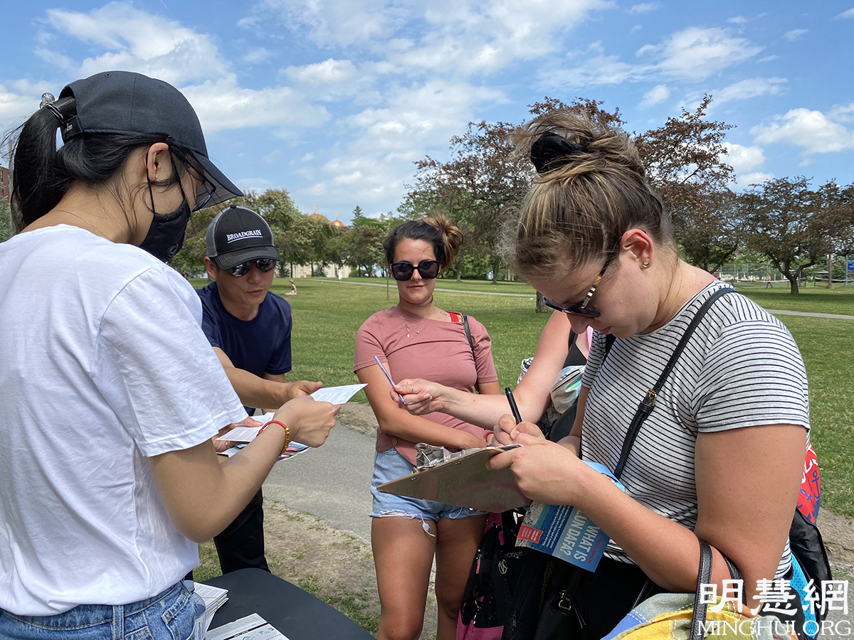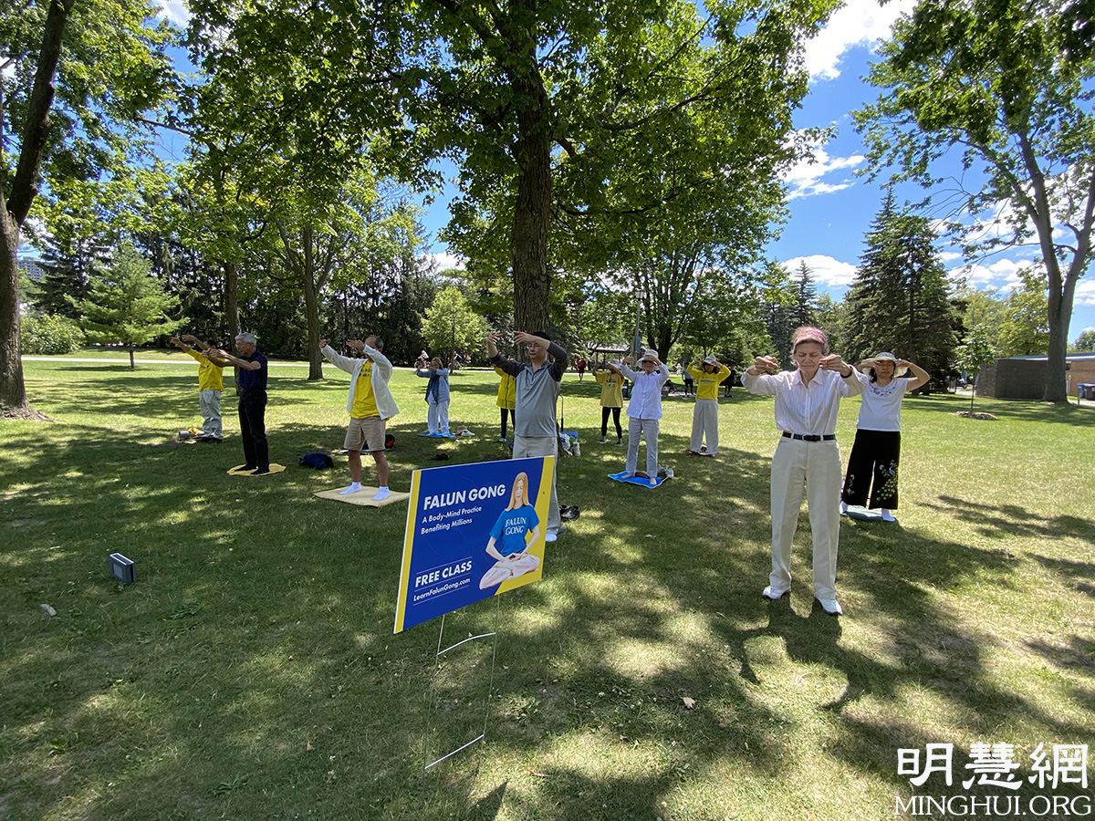 随着疫情放缓,渥太华几个开放的公园中、在市中心的街道上,人们又见到了法轮功学员的身影。本地辅导站负责人忻女士接受采访时表示,虽然中共对法轮功的迫害进入二十二个年头,但它根本无法动摇真修者的信仰,反而使越来越多的世人,包括加拿大人,认识到了真善忍的宝贵和中共的邪恶。许多加拿大人加入到公园炼功的学员中,开始学功。更多善良的人们在给总理和加拿大主要党派领袖的请愿明信片上签名,支持反迫害。