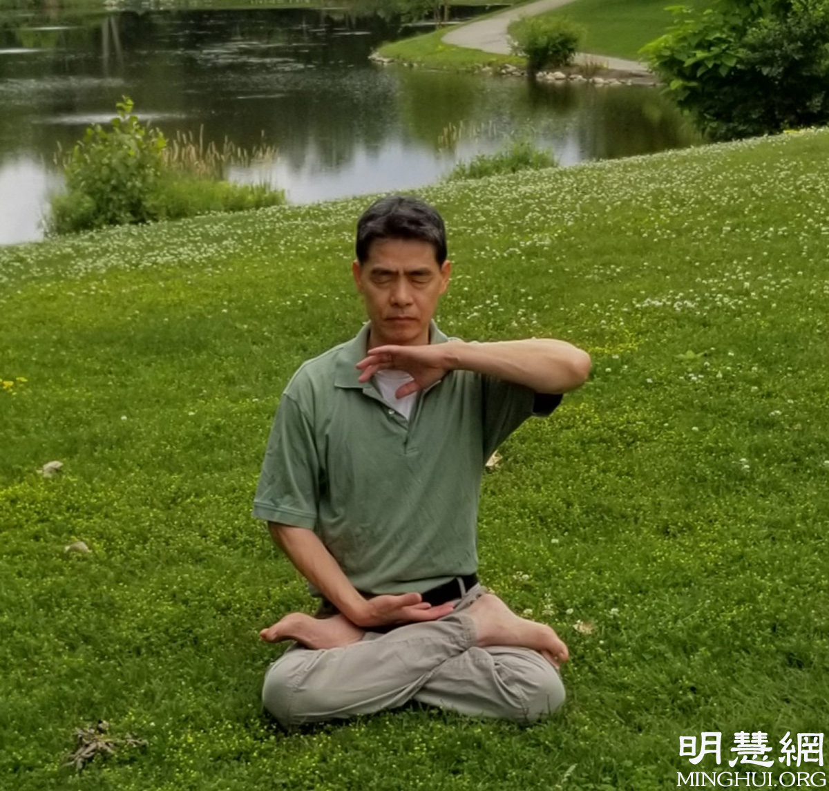 ![]() 图:林先生工作午休时间在公园里打坐炼功 |