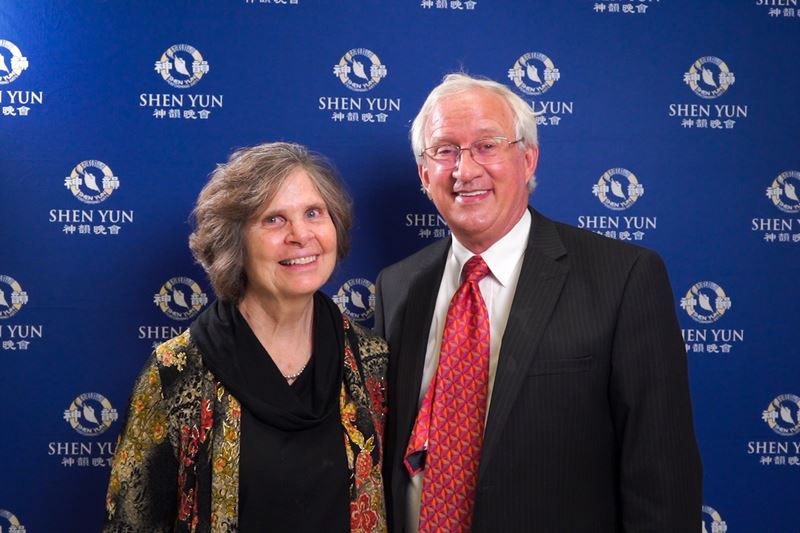 图3:二零二一年八月七日晚,大学教授兼作家保罗·斯考森(Paul Skousen)和太太一起观看了神韵在盐湖城的演出。他惊叹:“原来如此美丽的文化已(在中国)存在多年。”