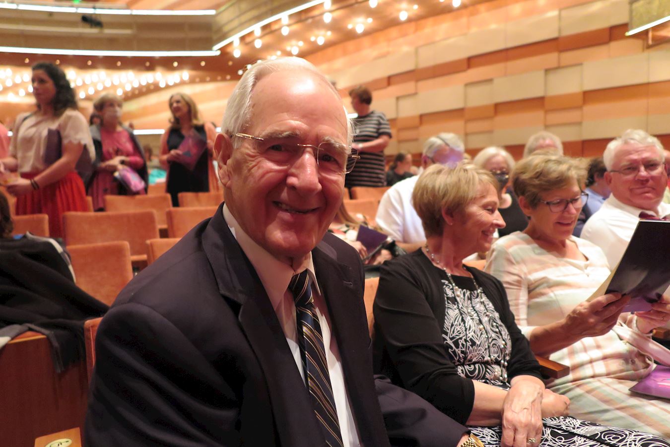 图4:二零二一年八月七日下午,前杨百翰大学教育心理学教授加里·克雷默(Gary Kramer)在乔治·多洛雷斯多尔·埃克尔斯剧院观赏神韵。
