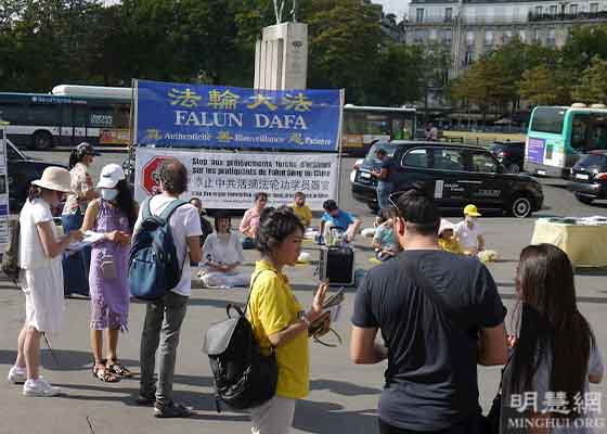 八月八日和八月十五日,法轮功学员分别在巴黎圣米歇尔广场和特洛卡德罗广场展示法轮功功法,并讲真相,揭露中共对法轮功的迫害。