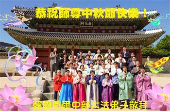韩国仁川、首尔、江原岭西、蔚山、大邱、安山市大法弟子恭祝师尊中秋节快乐!