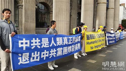 游行结束后,学员们在著名地标爱尔兰邮政总局(GPO)前举行集会,有不少过往车辆鸣笛致意。一位民众一直招手走过来告诉学员:“我很佩服你们!”有的爱尔兰人在现场一直听完集会发言后在反迫害征签表上签名。