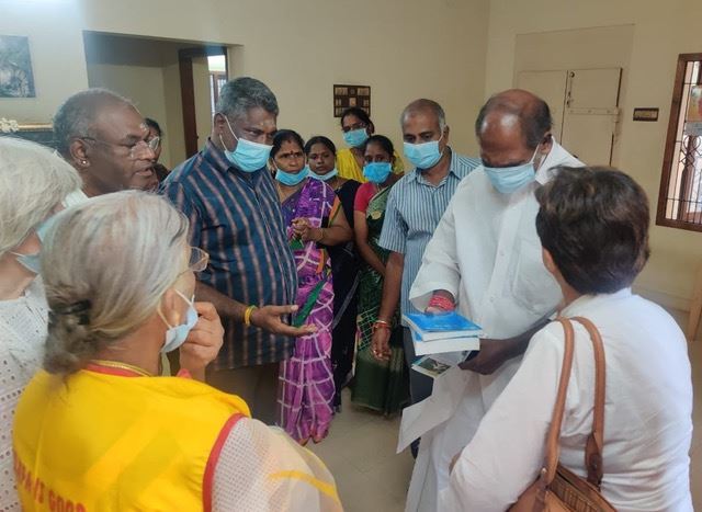 ![]() 图2:法轮功学员给首席部长朗嘎斯瓦米(N.Rangaswamy)讲法轮功无辜遭受中共迫害的真相。 |