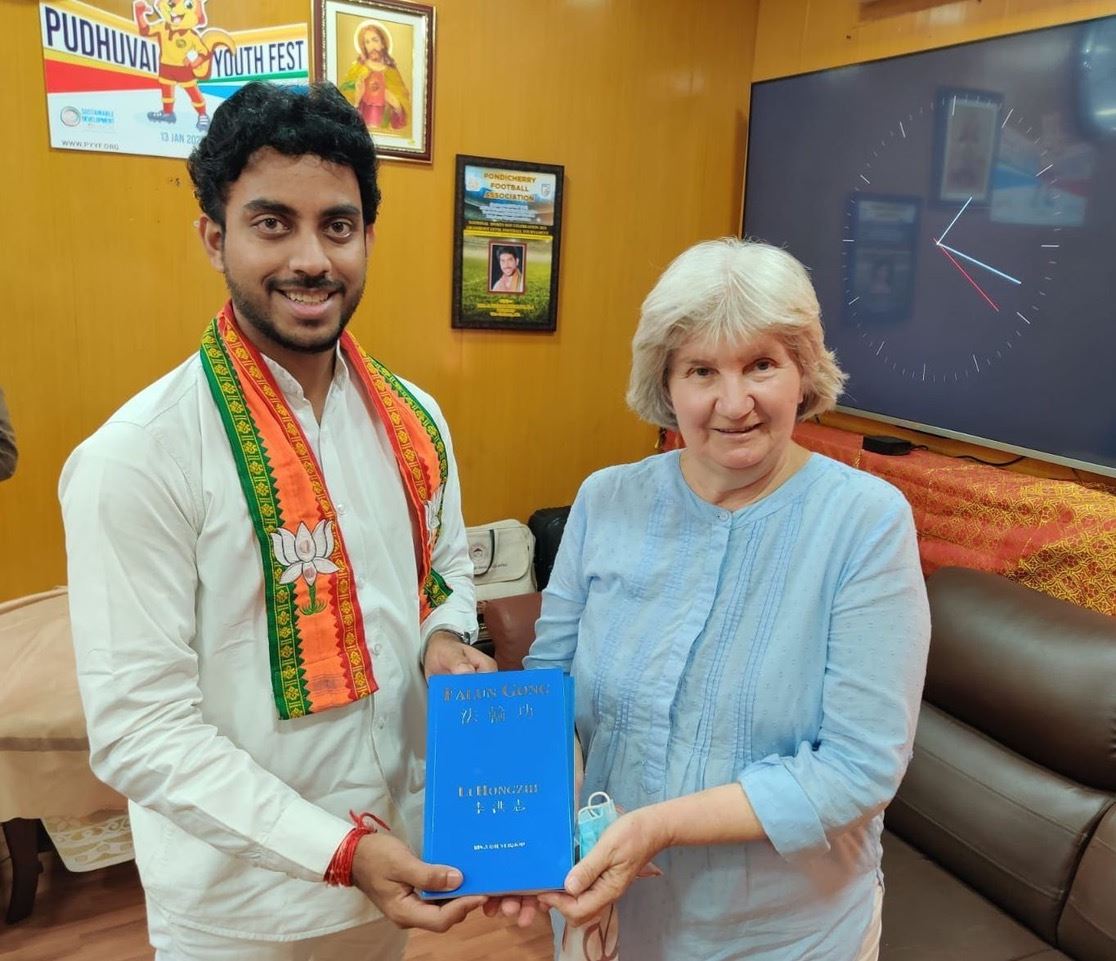 第一天,朋迪治里州首席部长朗嘎斯瓦米(N.Rangaswamy)在为书展揭幕典礼期间,法轮功学员向他讲述了法轮功是以真、善、忍为原则的、修心向善的高德大法,中共自一九九九年开始迫害法轮功至今已超过二十二年了。学员揭露了中共残酷迫害法轮功学员及强行活摘法轮功学员器官的罪恶,并向首席部长朗嘎斯瓦米赠送了已经翻译成当地语言的法轮功书籍(《法轮功》和《转法轮》)。