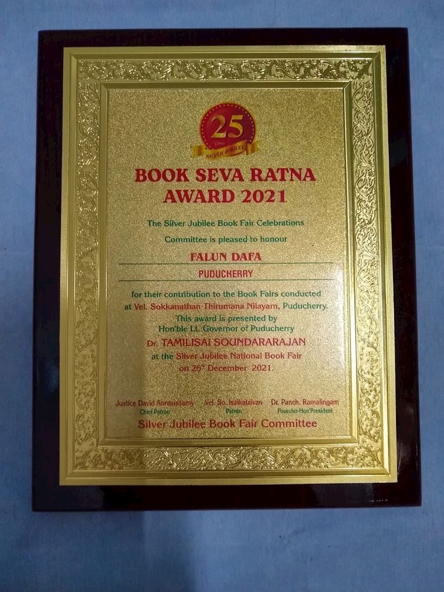 活动的最后一天,朋迪治里州书展举办者为参加书展的法轮功学员颁发了奖项。