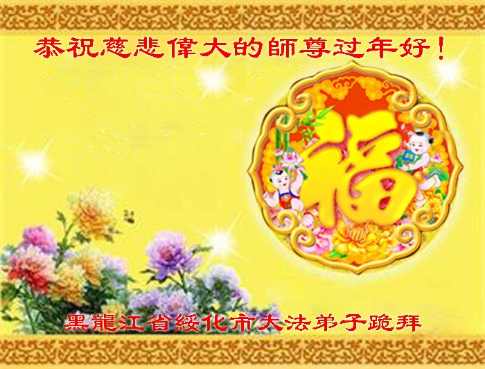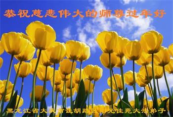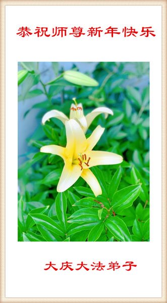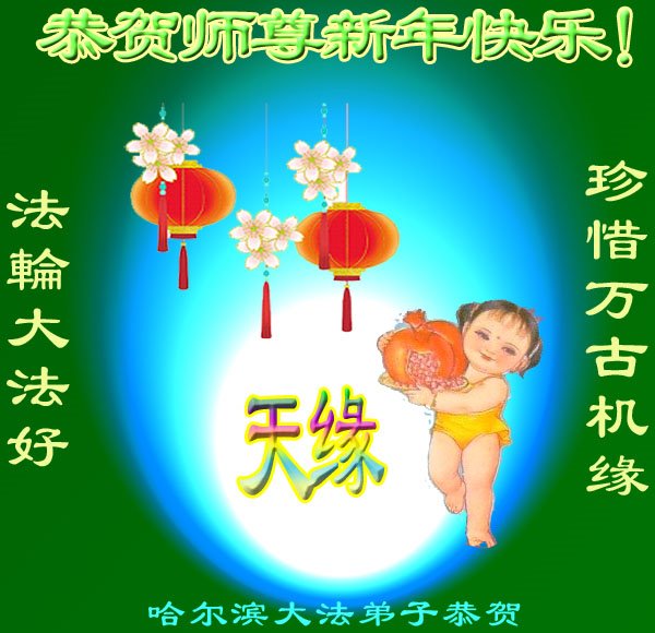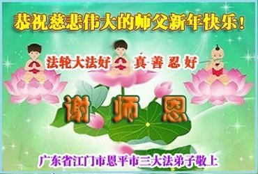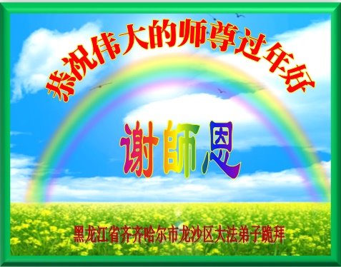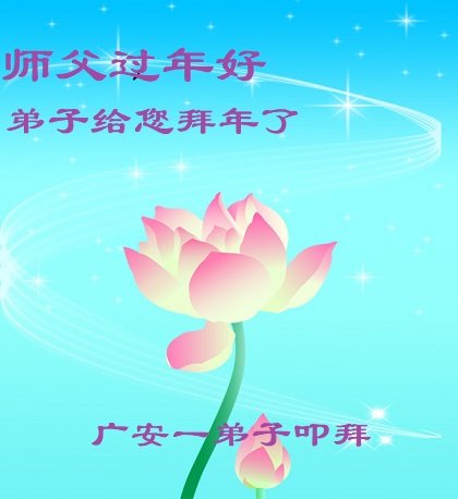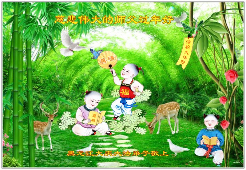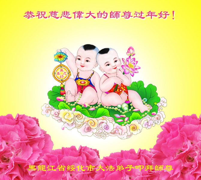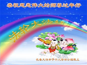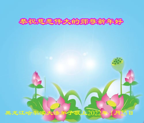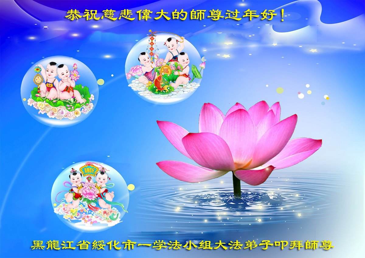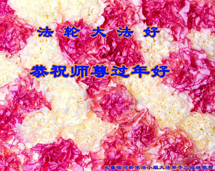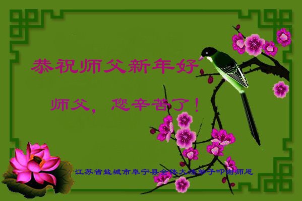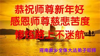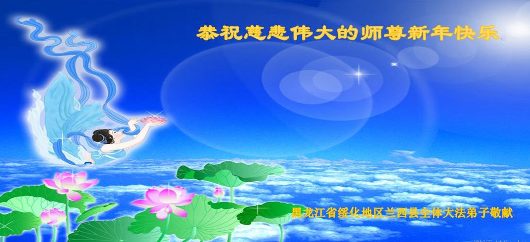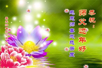 我是得法两年的大法弟子,在这里弟子给师父拜年了!在这得法修炼的两年多时间里,师父您给弟子净化了身体,净化了心灵,让我感觉到了法轮在给弟子净化身体时的变化,感受到了大法的神奇和玄妙,弟子在修炼的路上还需要精進再精進!