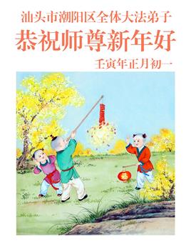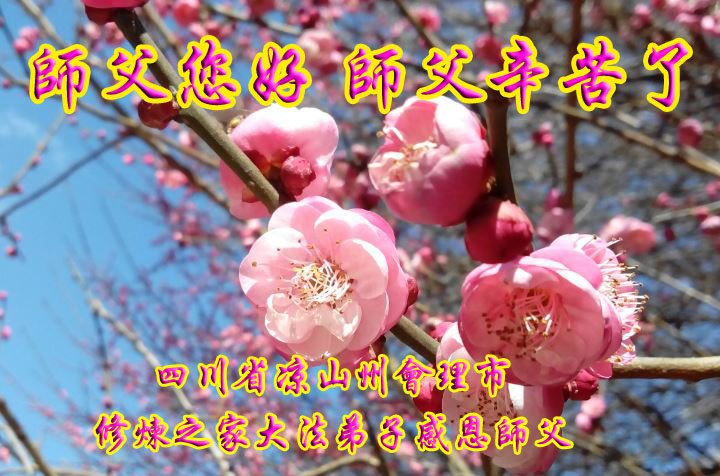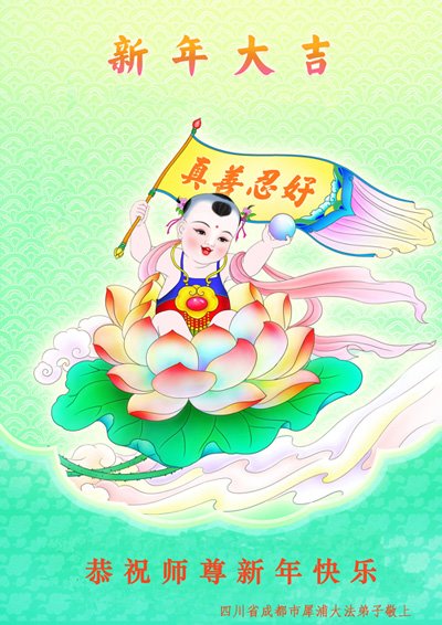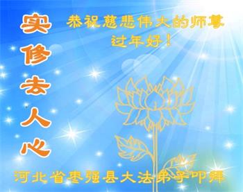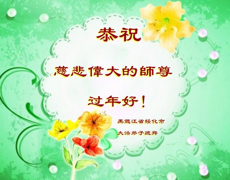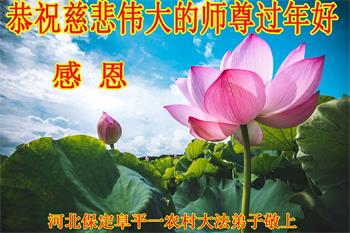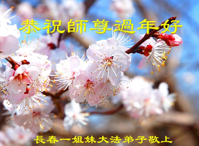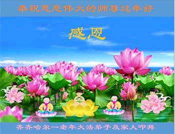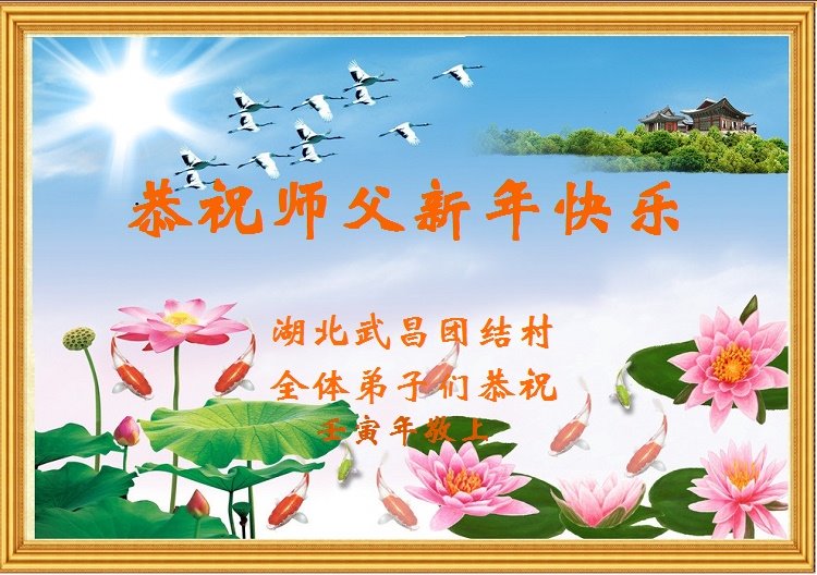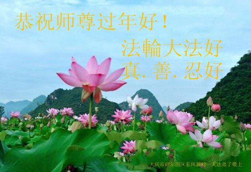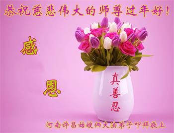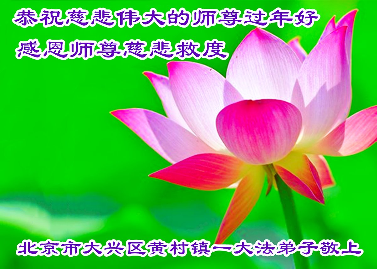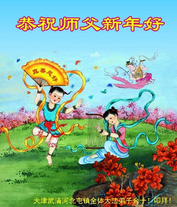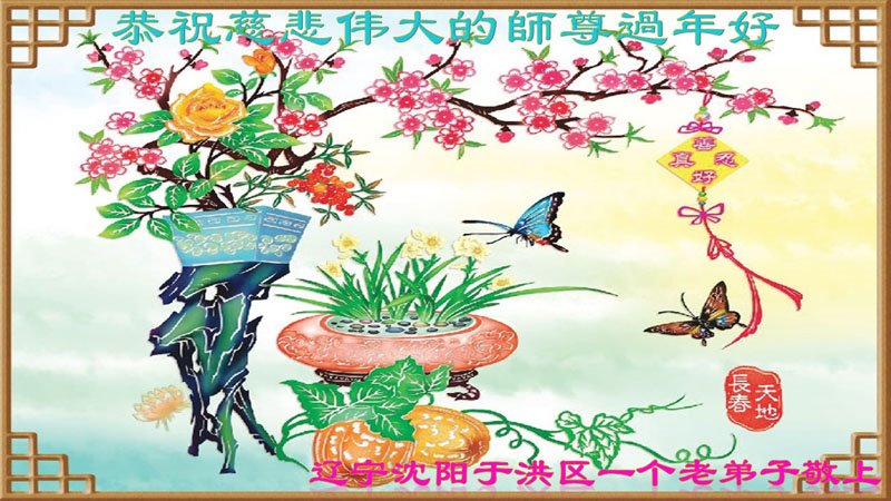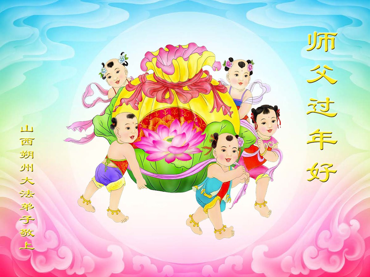 我是得法两年的大法弟子,在这里弟子给师父拜年了!在这得法修炼的两年多时间里,师父您给弟子净化了身体,净化了心灵,让我感觉到了法轮在给弟子净化身体时的变化,感受到了大法的神奇和玄妙,弟子在修炼的路上还需要精進再精進!