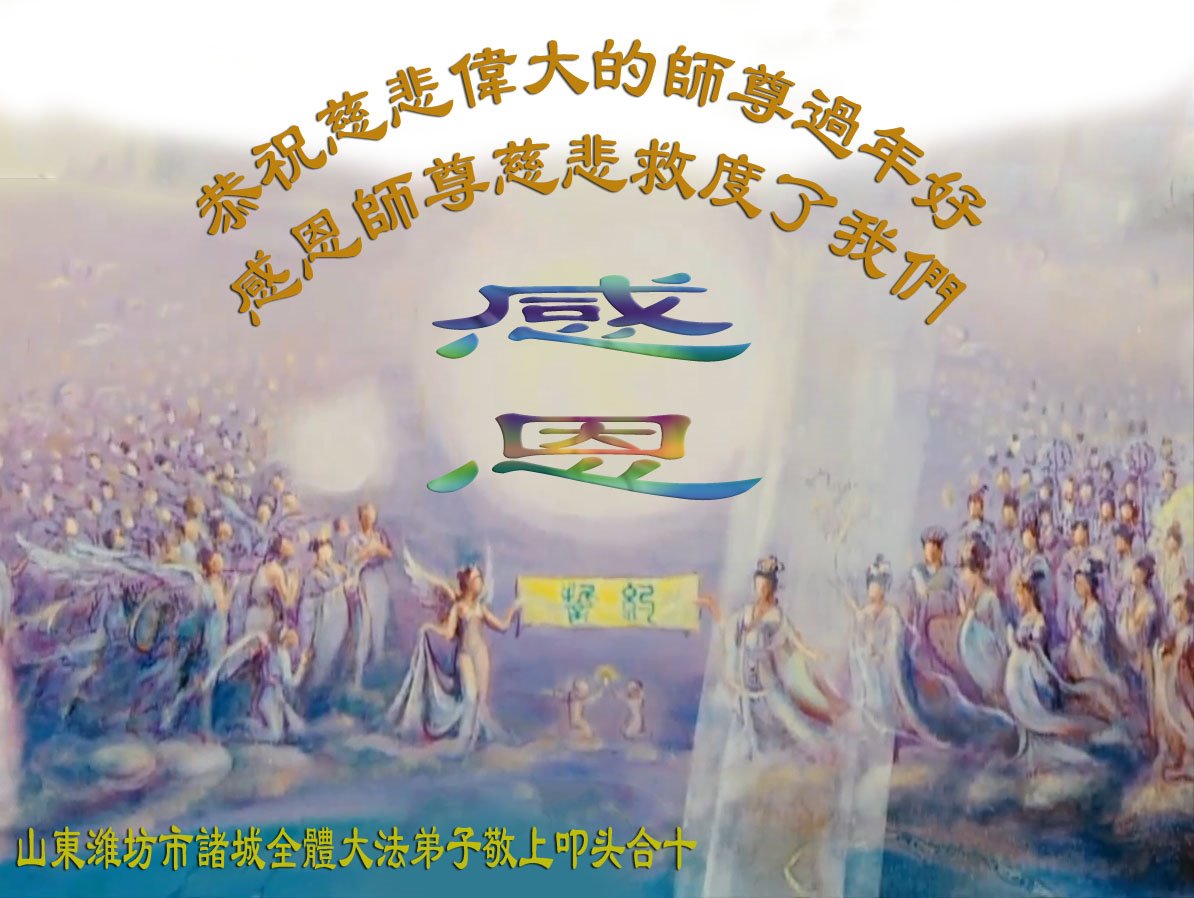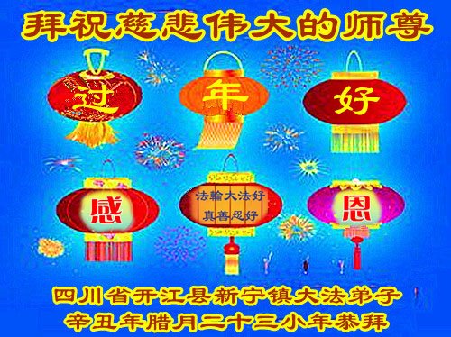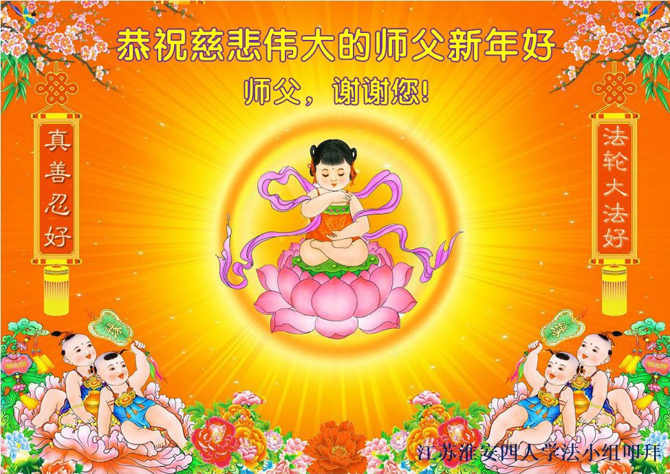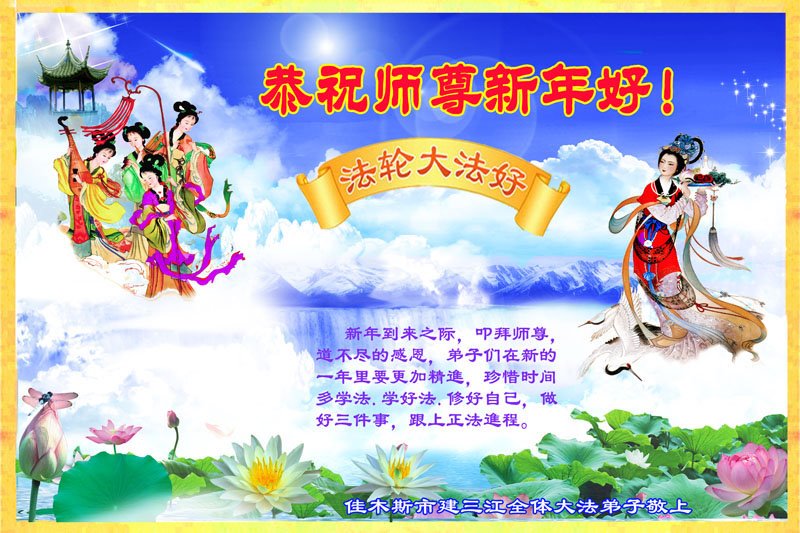 江苏省司法系统大法弟子恭祝师尊新年快乐!他们写道:留给我们救人、修炼的机会越来越少了,弟子一定会珍惜这宝贵的圣缘,精進实修。弟子期盼着与师父相聚的那一天。