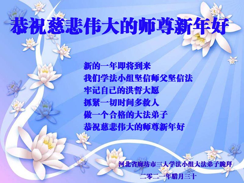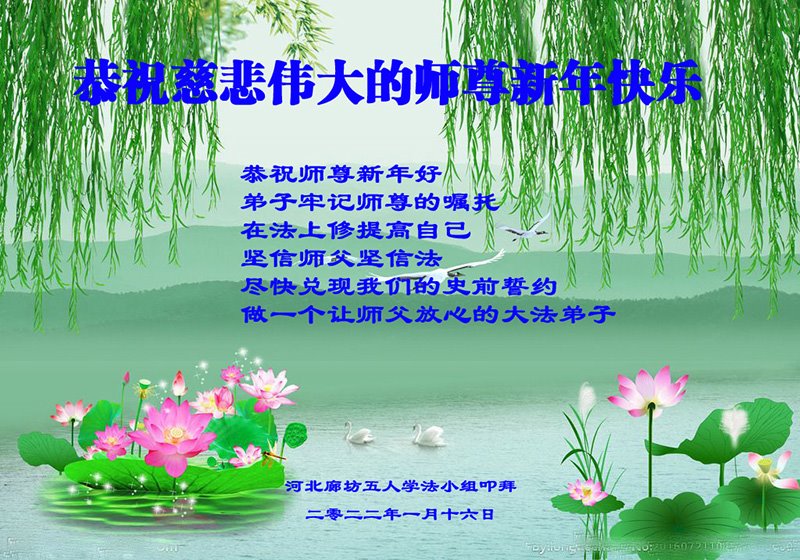 <英文版: http://en.minghui.org/html/articles/2022/1/31/198607.html>中国公检法司、政府机关大法弟子敬拜师尊过年好
