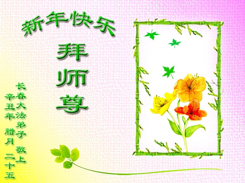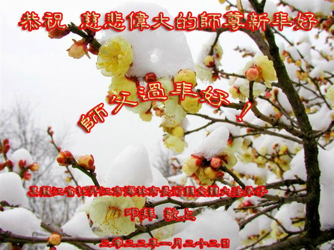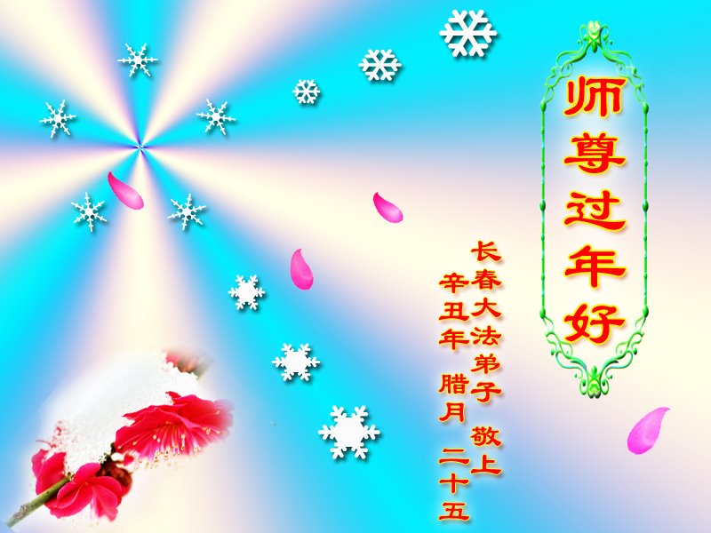 在这新春佳节来临之际,全家人向师尊拜年!祝师尊新年好!祝法轮大法洪传全世界。