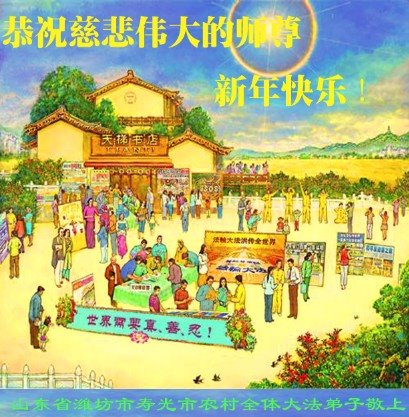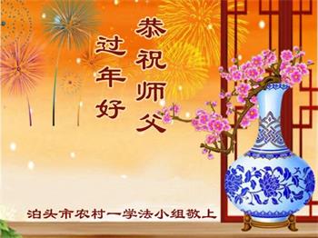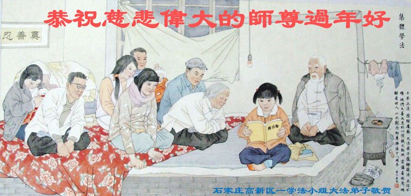 山东招远一新学员与全家人及明真相亲人恭祝师尊过年好!