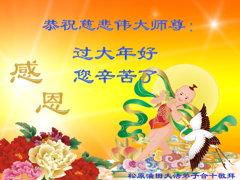 恭祝慈悲伟大的师尊过年好!我们会坚定的跟随师尊走,学好法,成为师尊的好弟子,助师救度众生。能得到师尊的救度我们感到无比荣幸!谢谢师尊的慈悲救度!