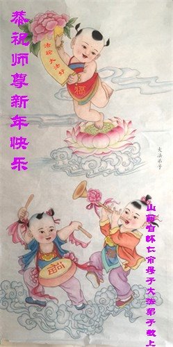 山东烟台招远一新得法的老年学员敬祝师父过年好!