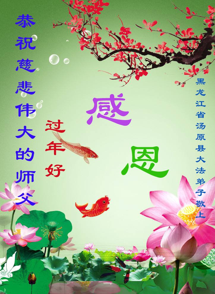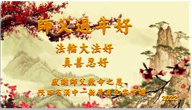 我是陕西省汉中一新学员,身患癌症命悬一线之际有缘得法修炼,身体很快恢复,值此佳节,我和全家叩谢师父救命之恩,恭祝师父过年好!