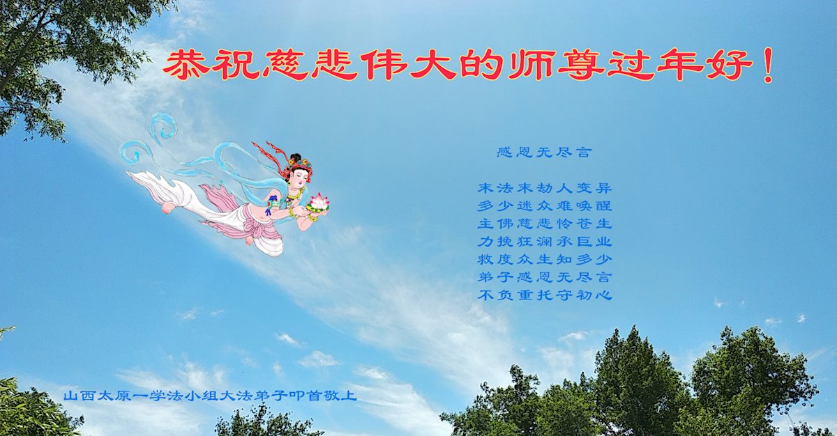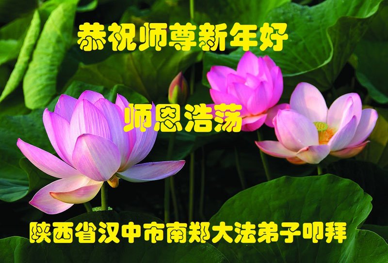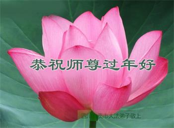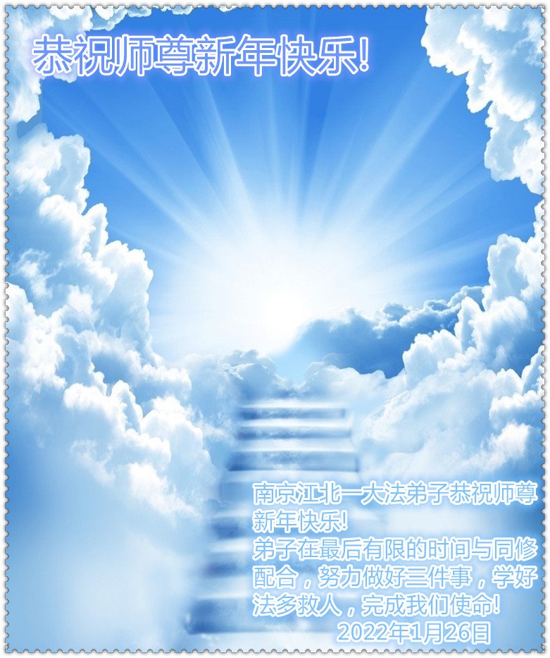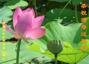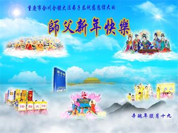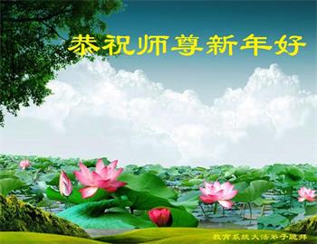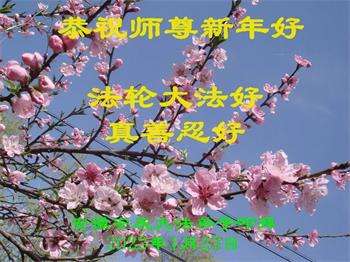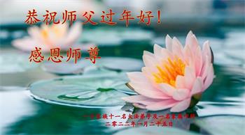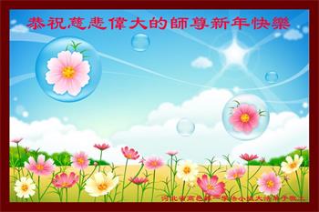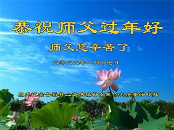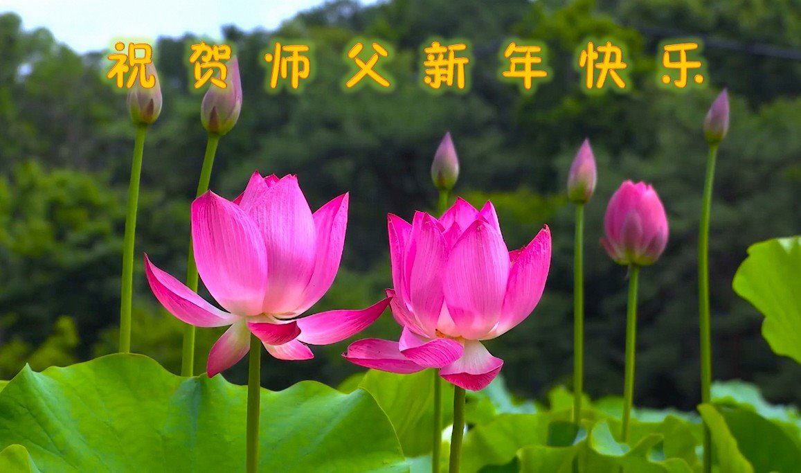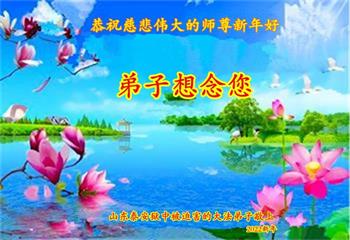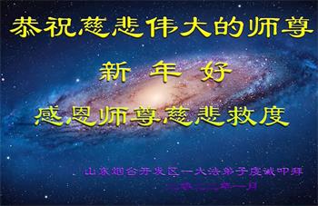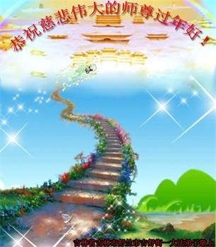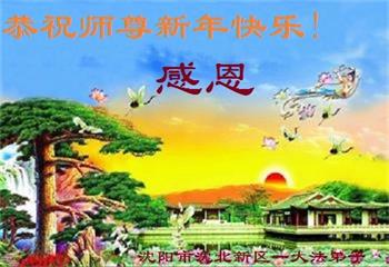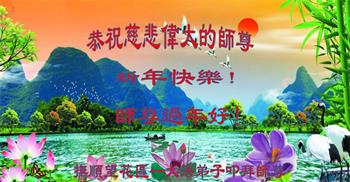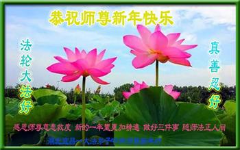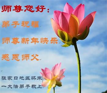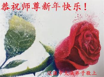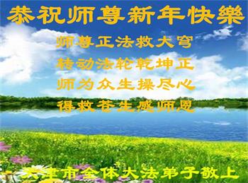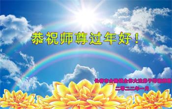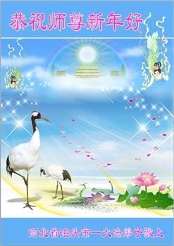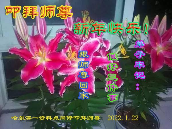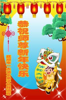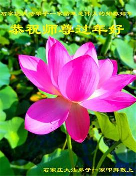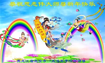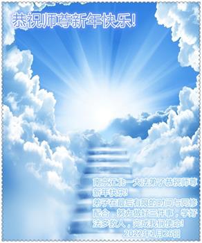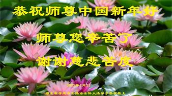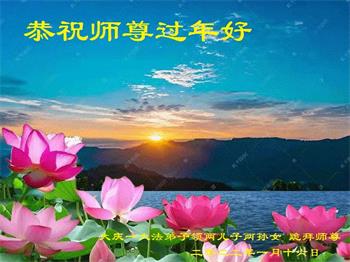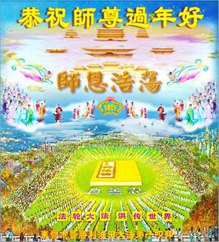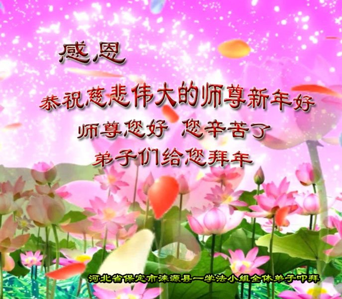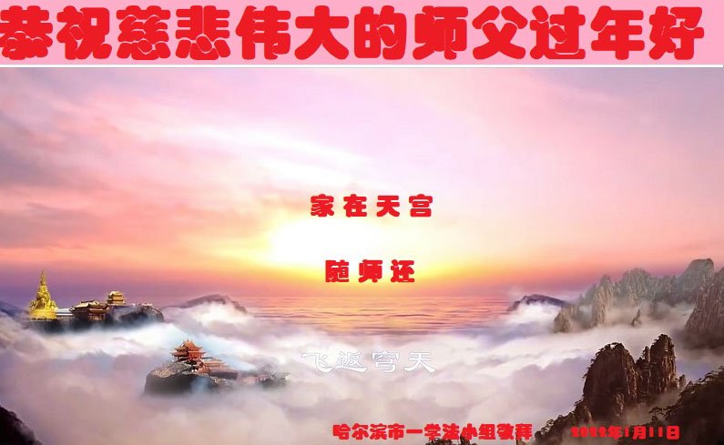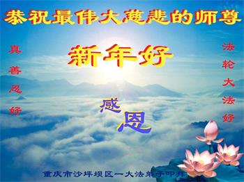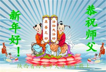 在师尊您的加持和保护下,又進入了新的一年。新的一年里,我们一定会按照师尊您的教诲,做好三件事,学好法,修好自己、多救人。紧跟师尊的正法進程,圆满随师还。