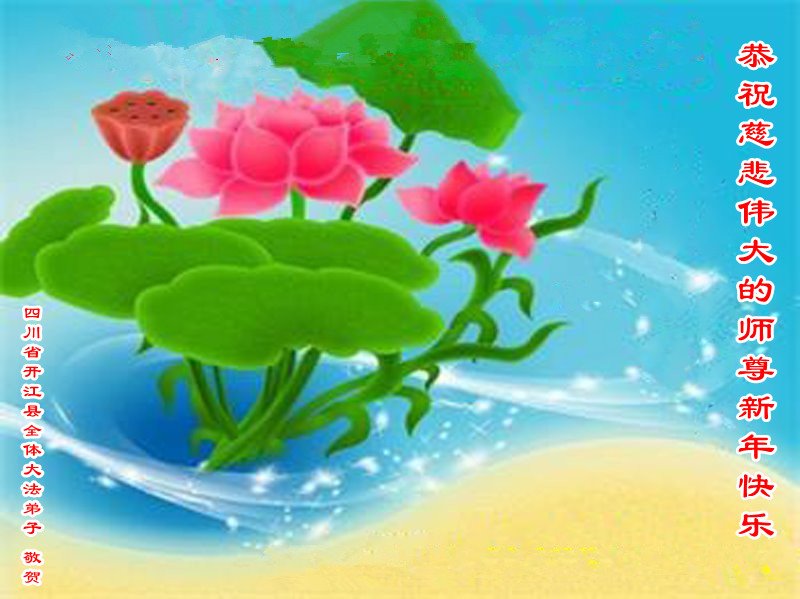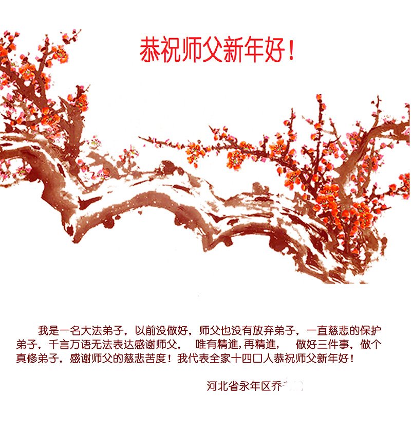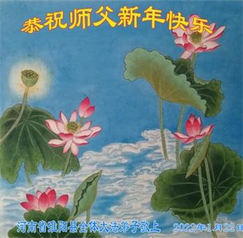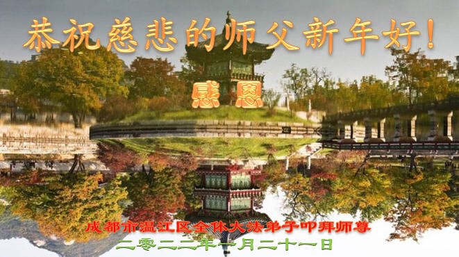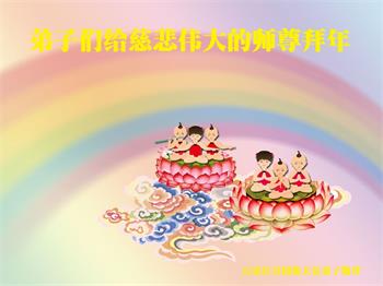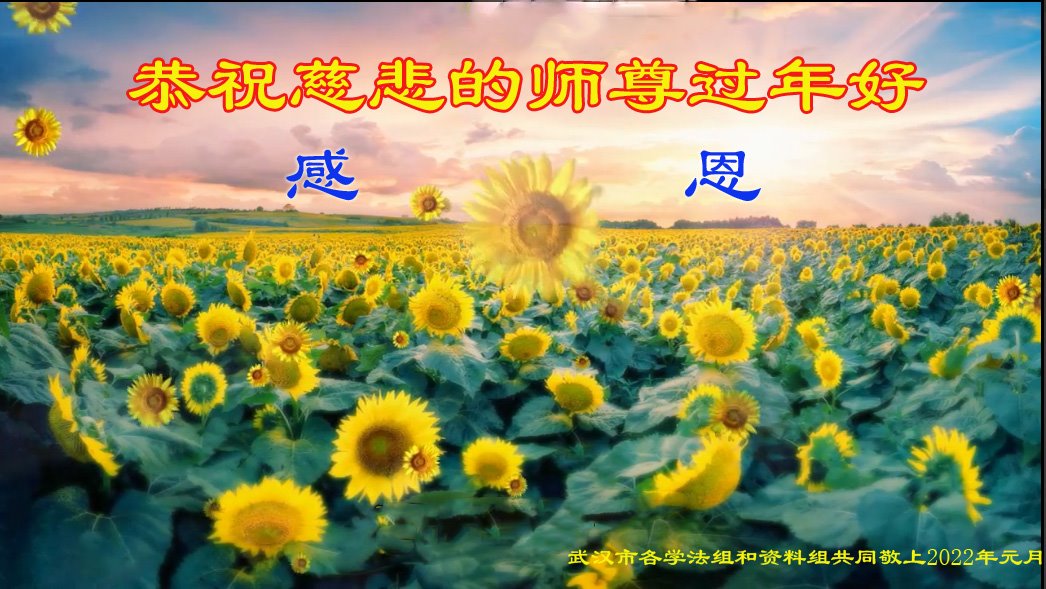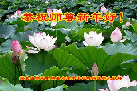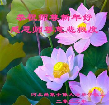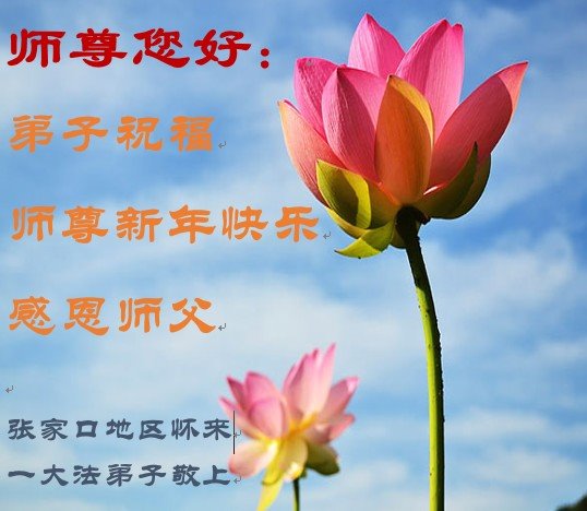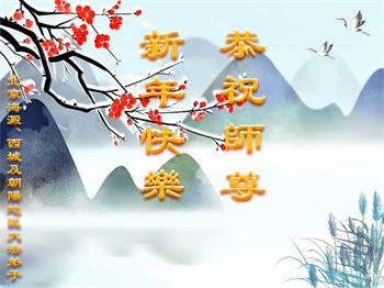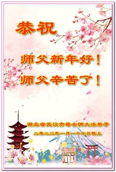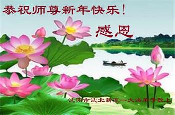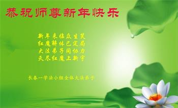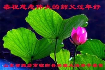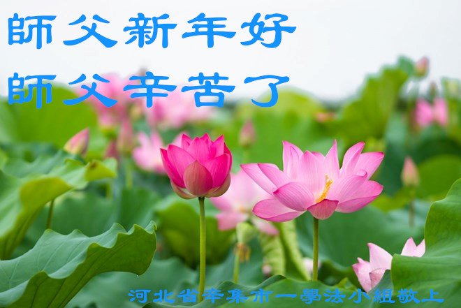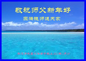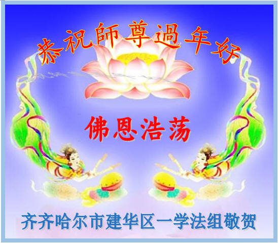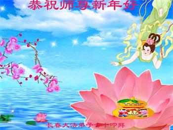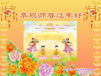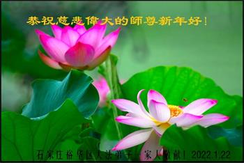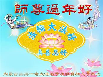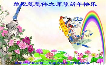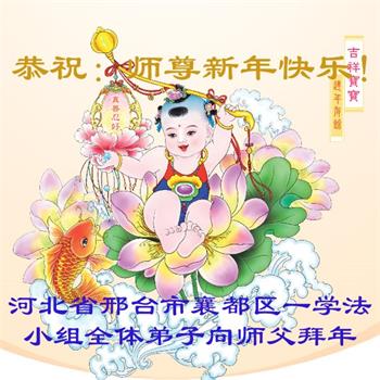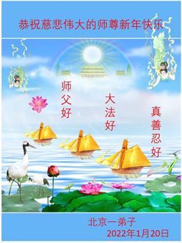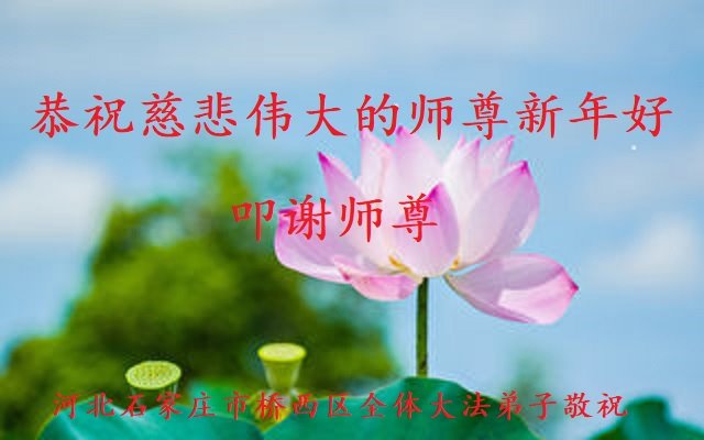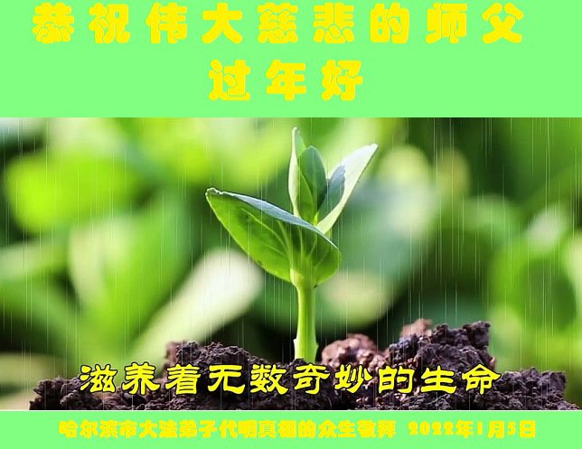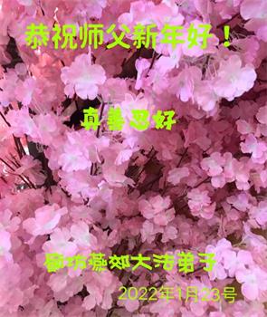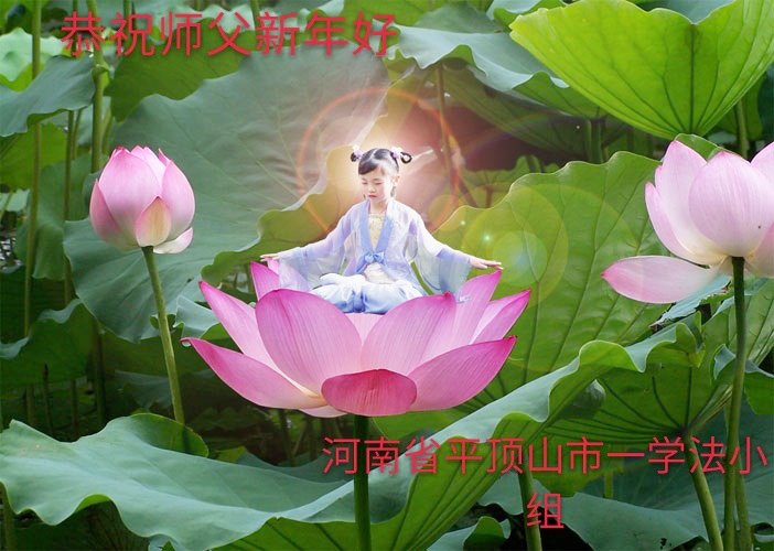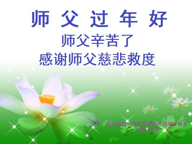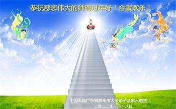 在师尊您的加持和保护下,又進入了新的一年。新的一年里,我们一定会按照师尊您的教诲,做好三件事,学好法,修好自己、多救人。紧跟师尊的正法進程,圆满随师还。
