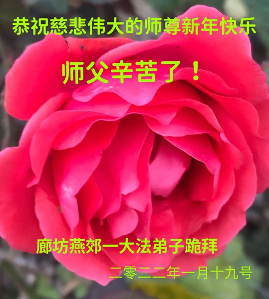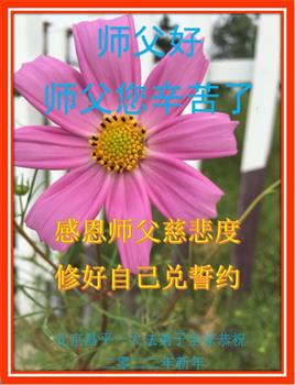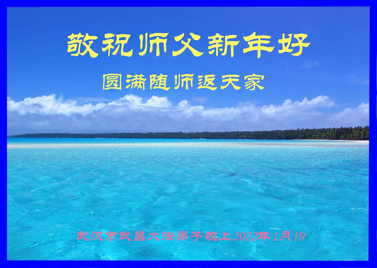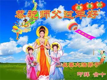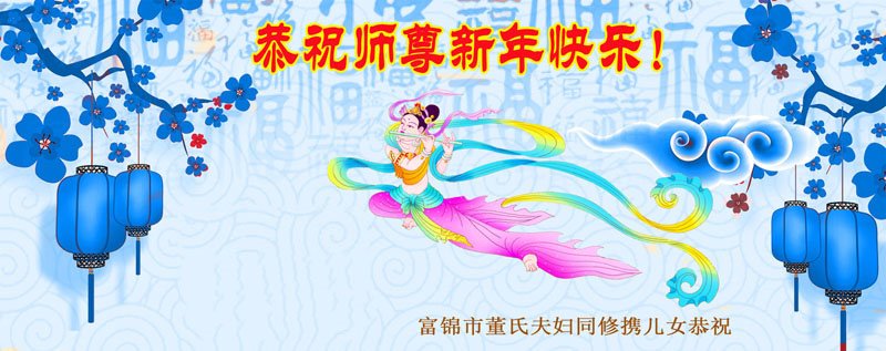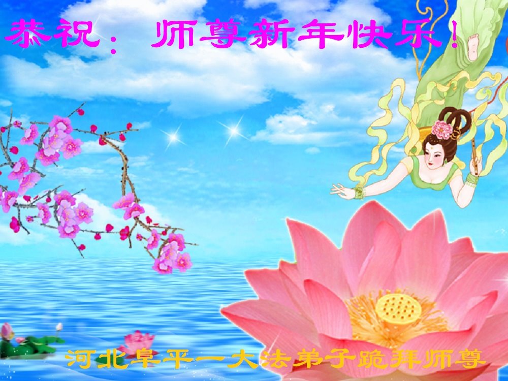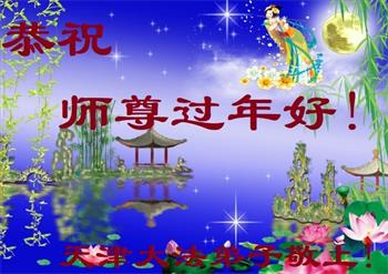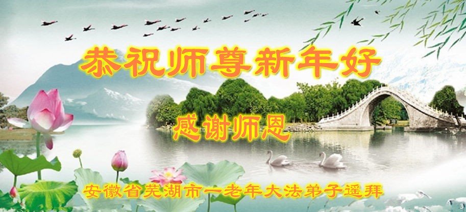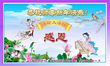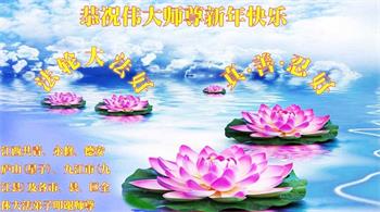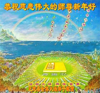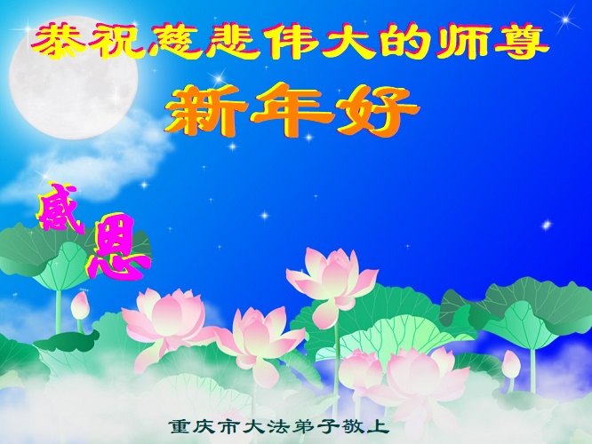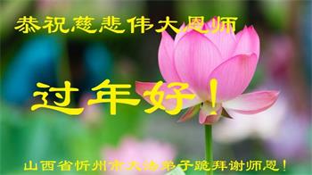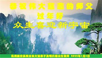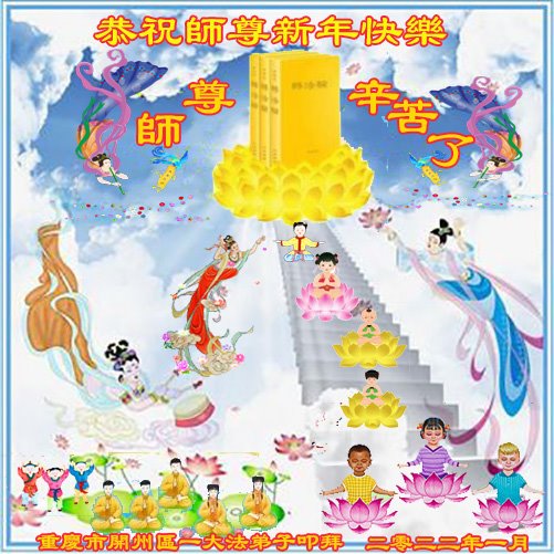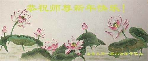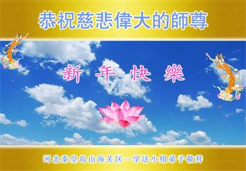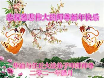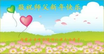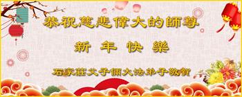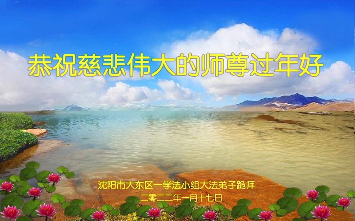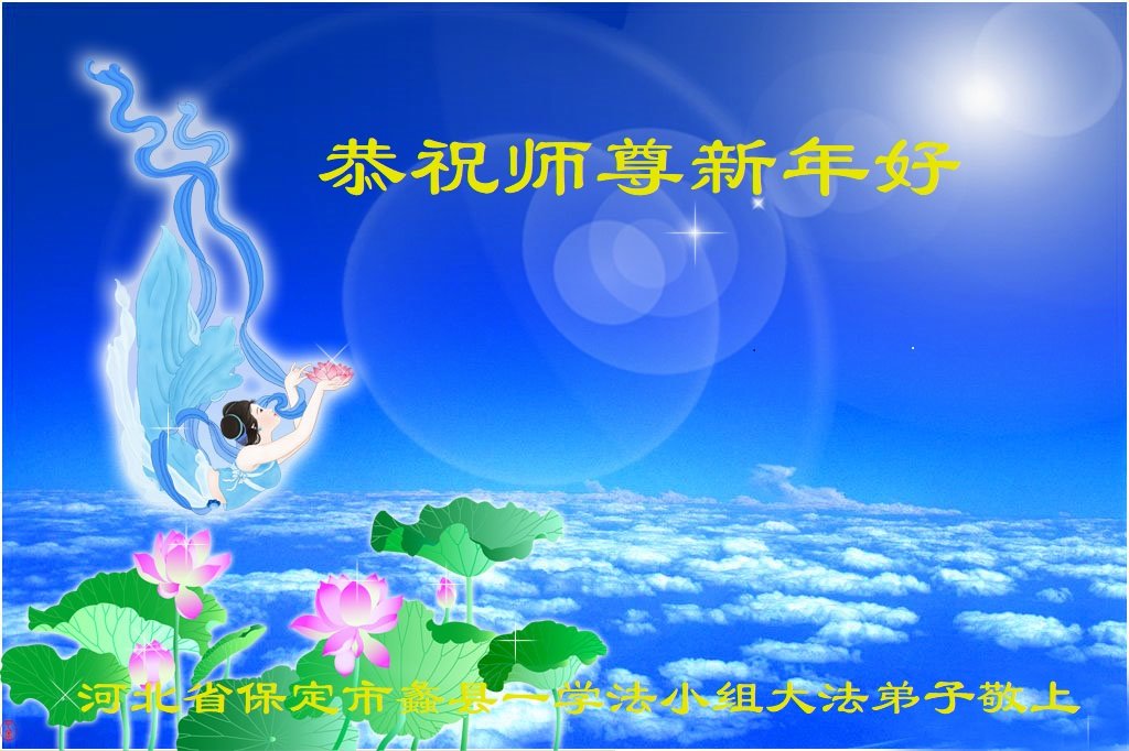 在师尊您的加持和保护下,又進入了新的一年。新的一年里,我们一定会按照师尊您的教诲,做好三件事,学好法,修好自己、多救人。紧跟师尊的正法進程,圆满随师还。