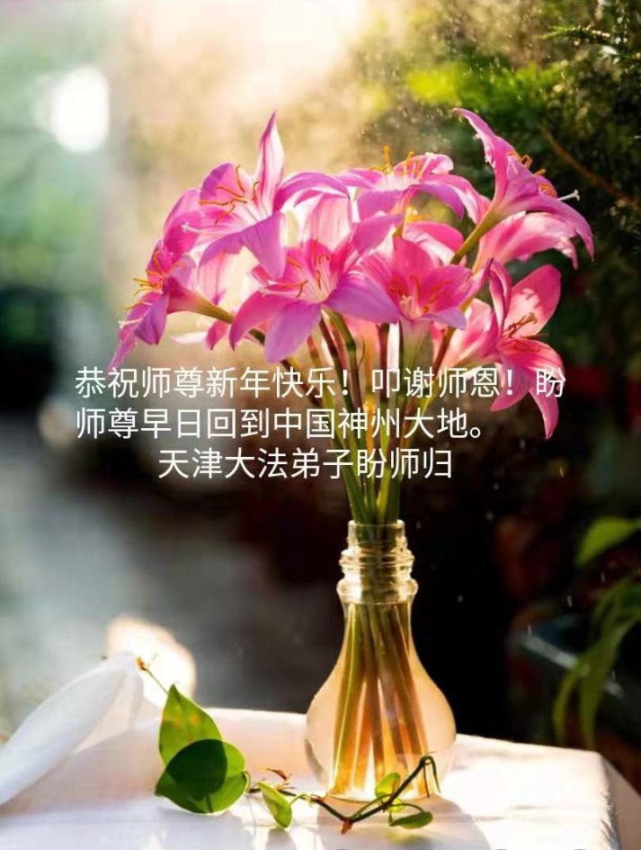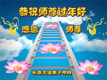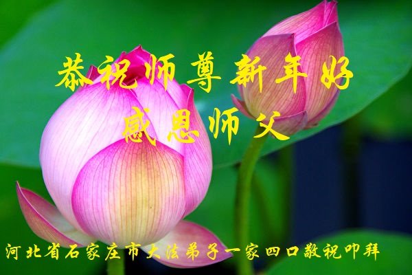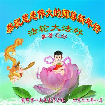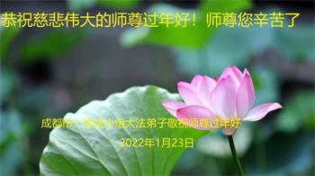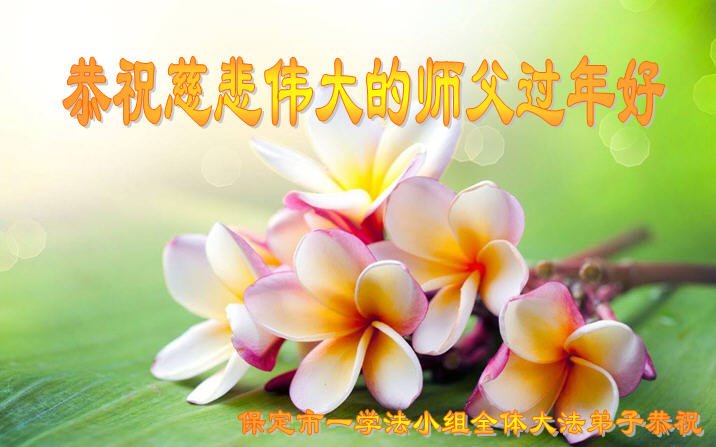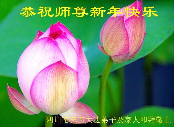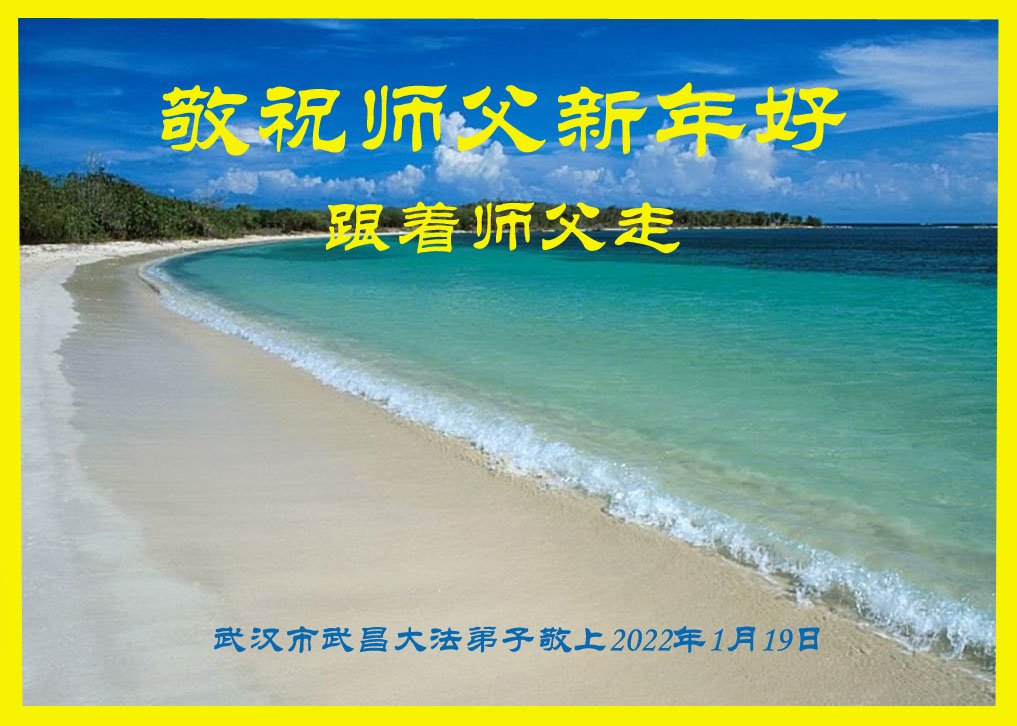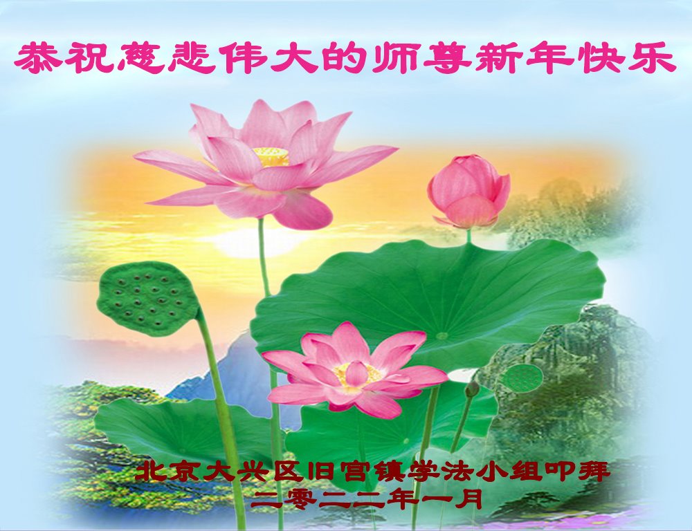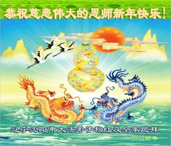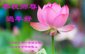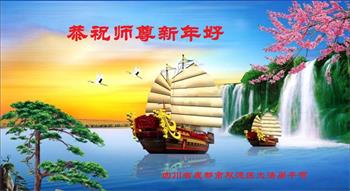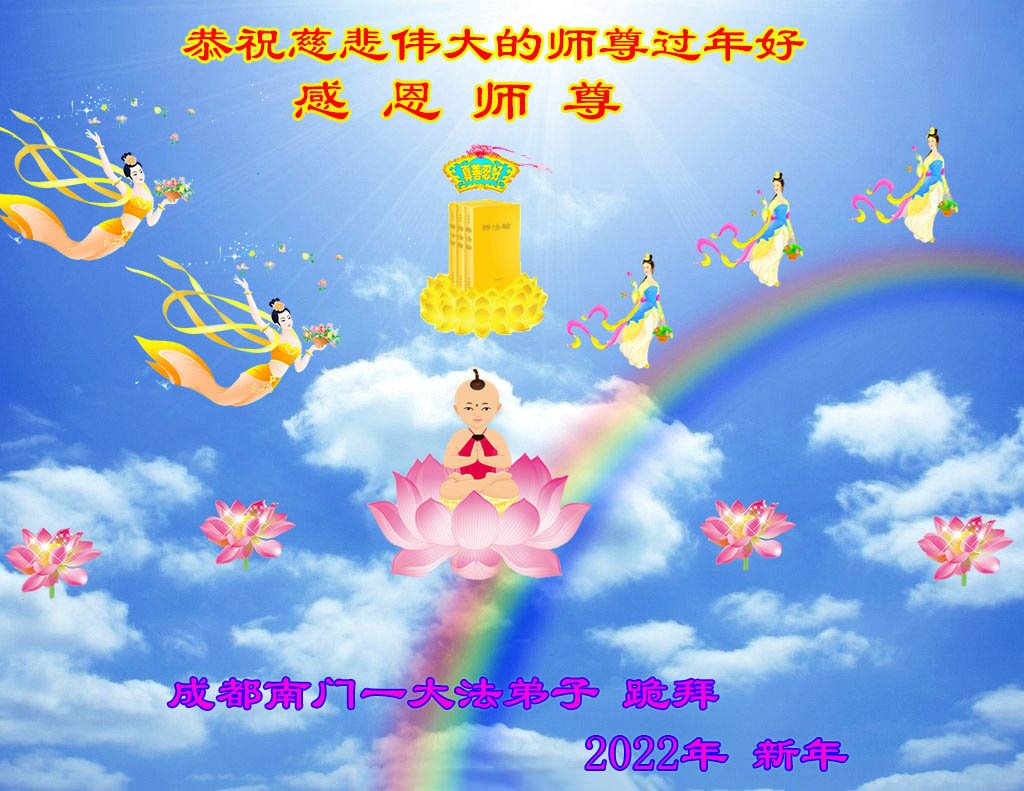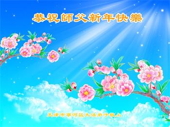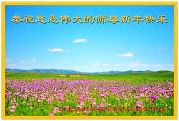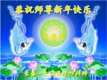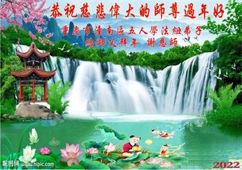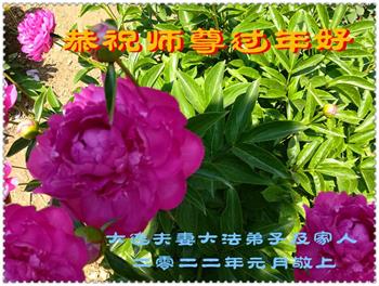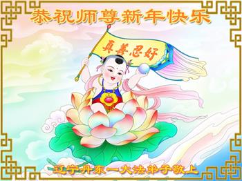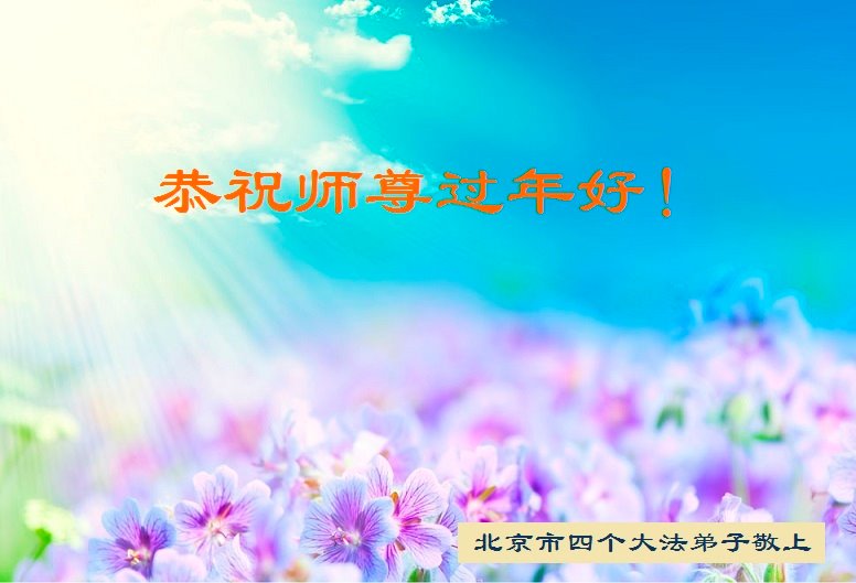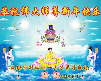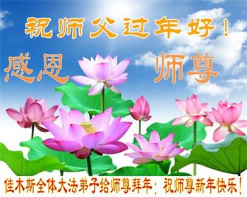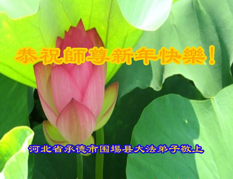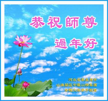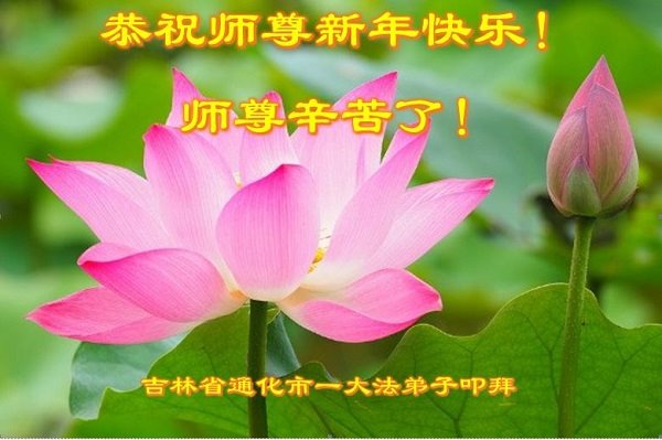 在师尊您的加持和保护下,又進入了新的一年。新的一年里,我们一定会按照师尊您的教诲,做好三件事,学好法,修好自己、多救人。紧跟师尊的正法進程,圆满随师还。