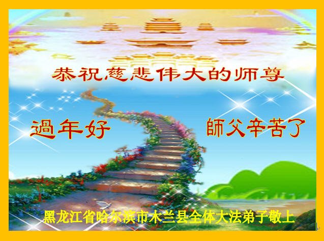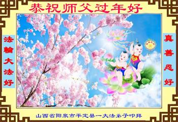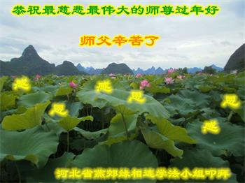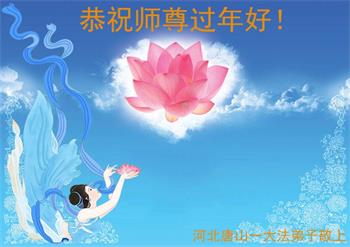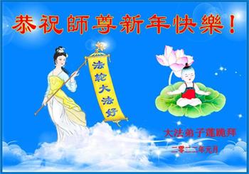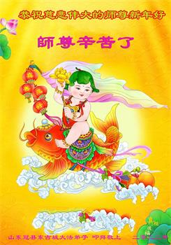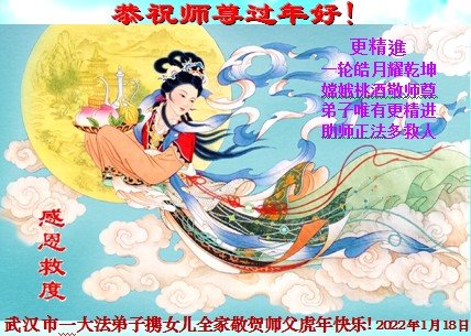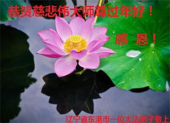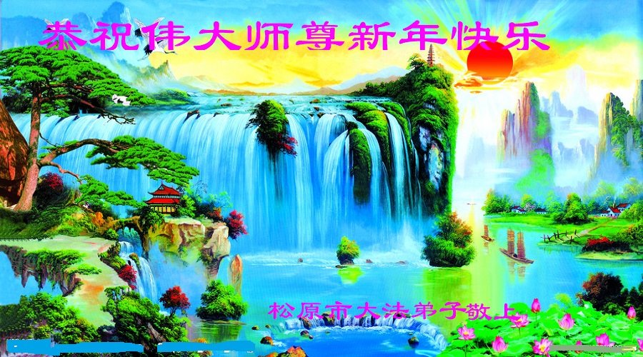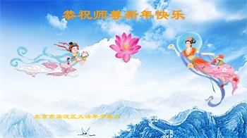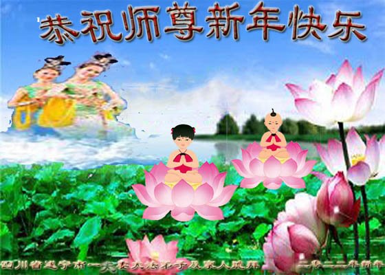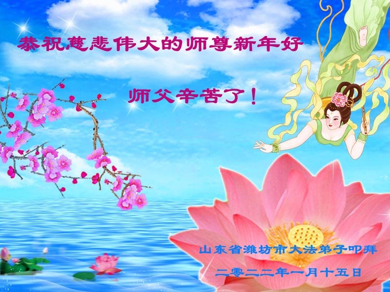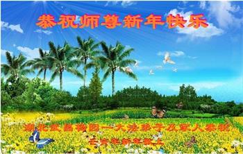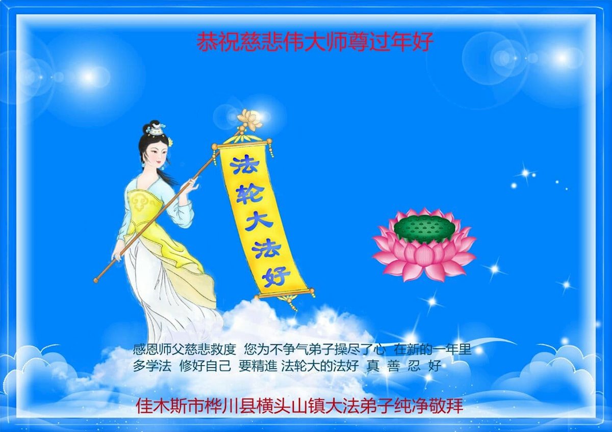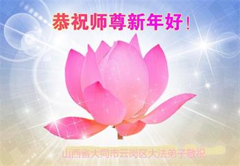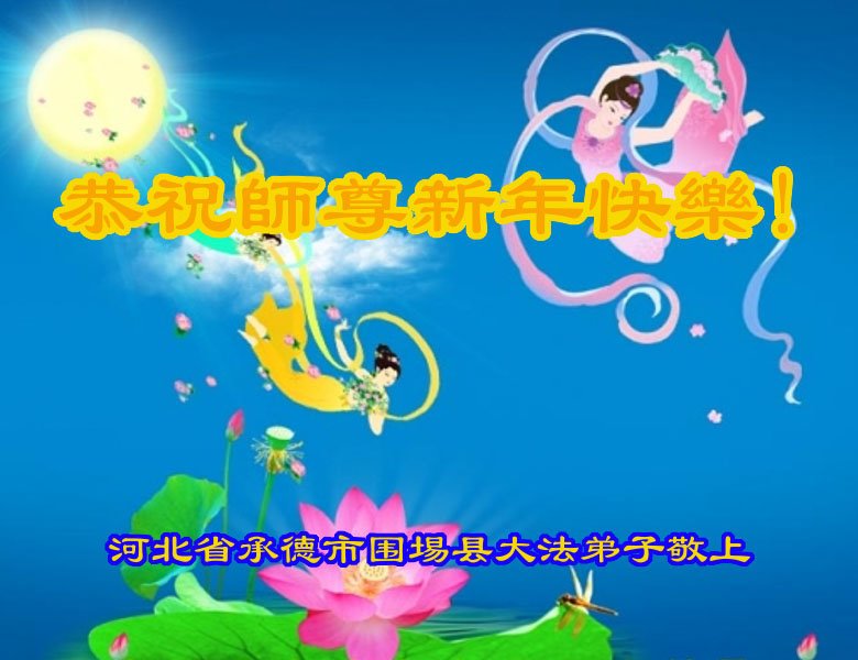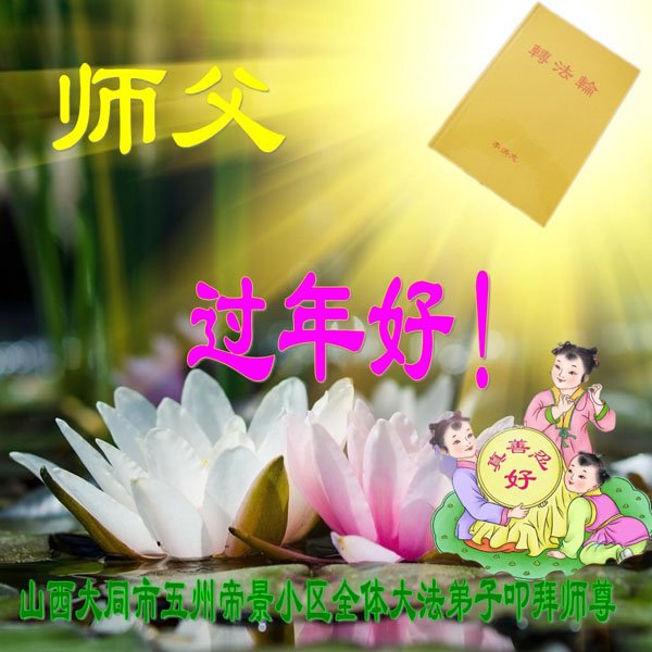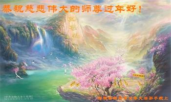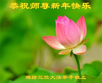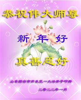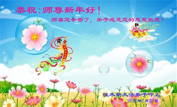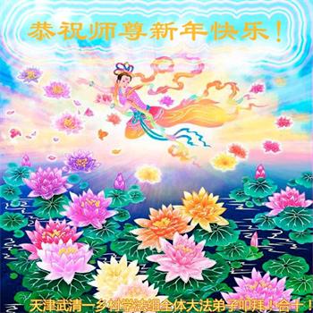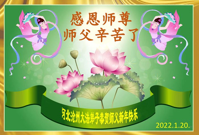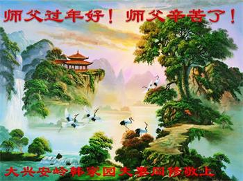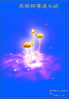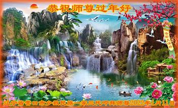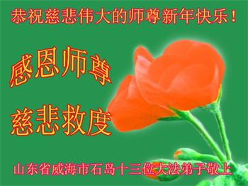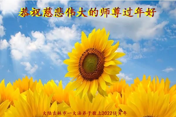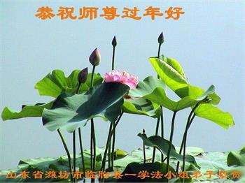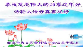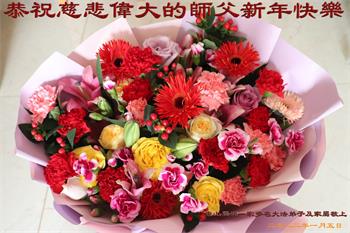 在师尊您的加持和保护下,又進入了新的一年。新的一年里,我们一定会按照师尊您的教诲,做好三件事,学好法,修好自己、多救人。紧跟师尊的正法進程,圆满随师还。