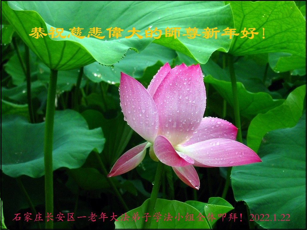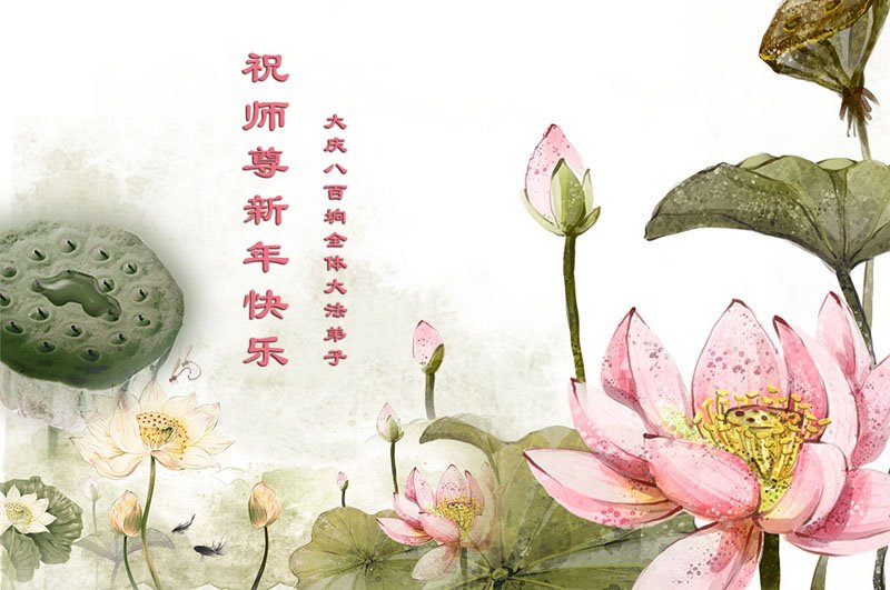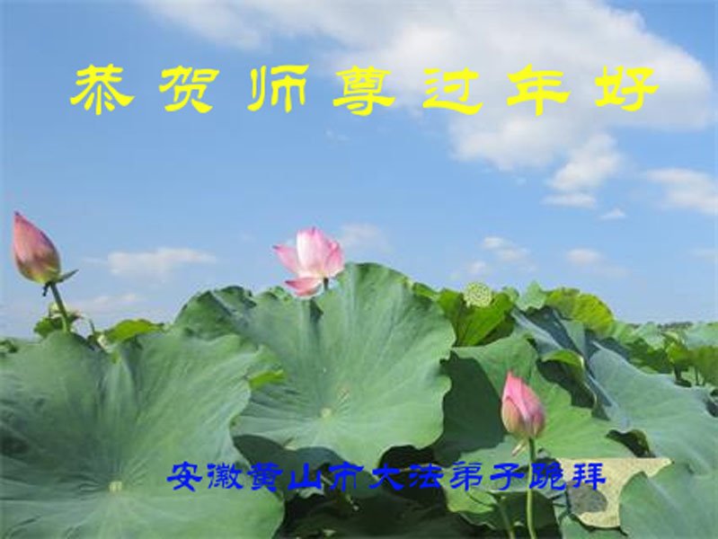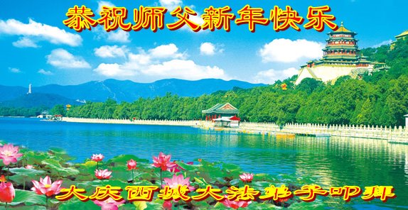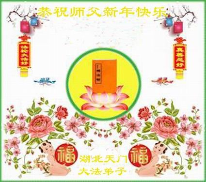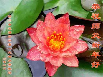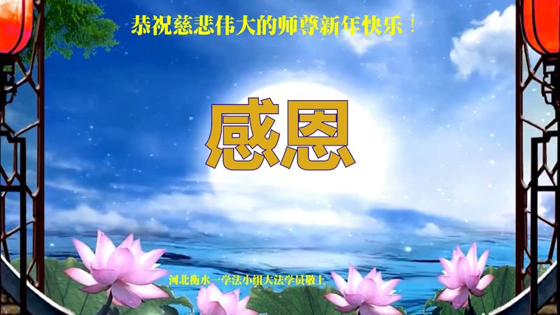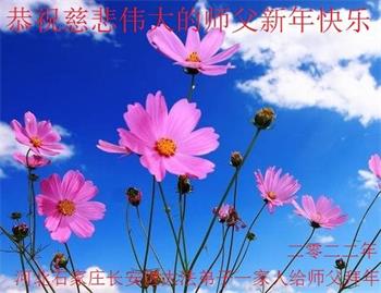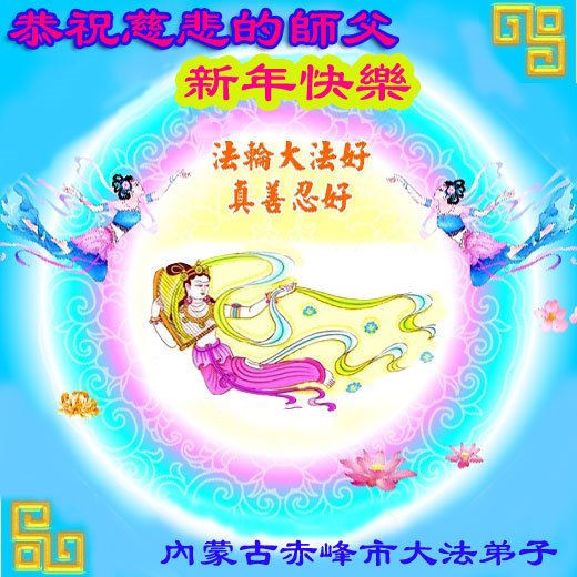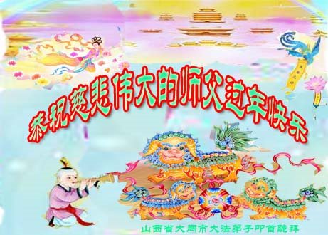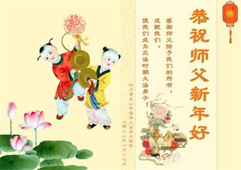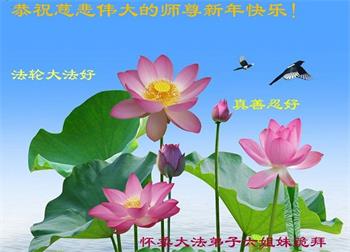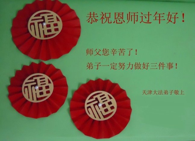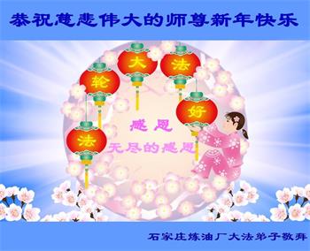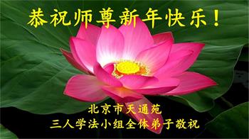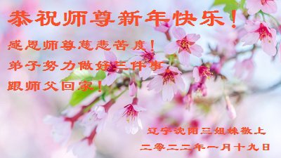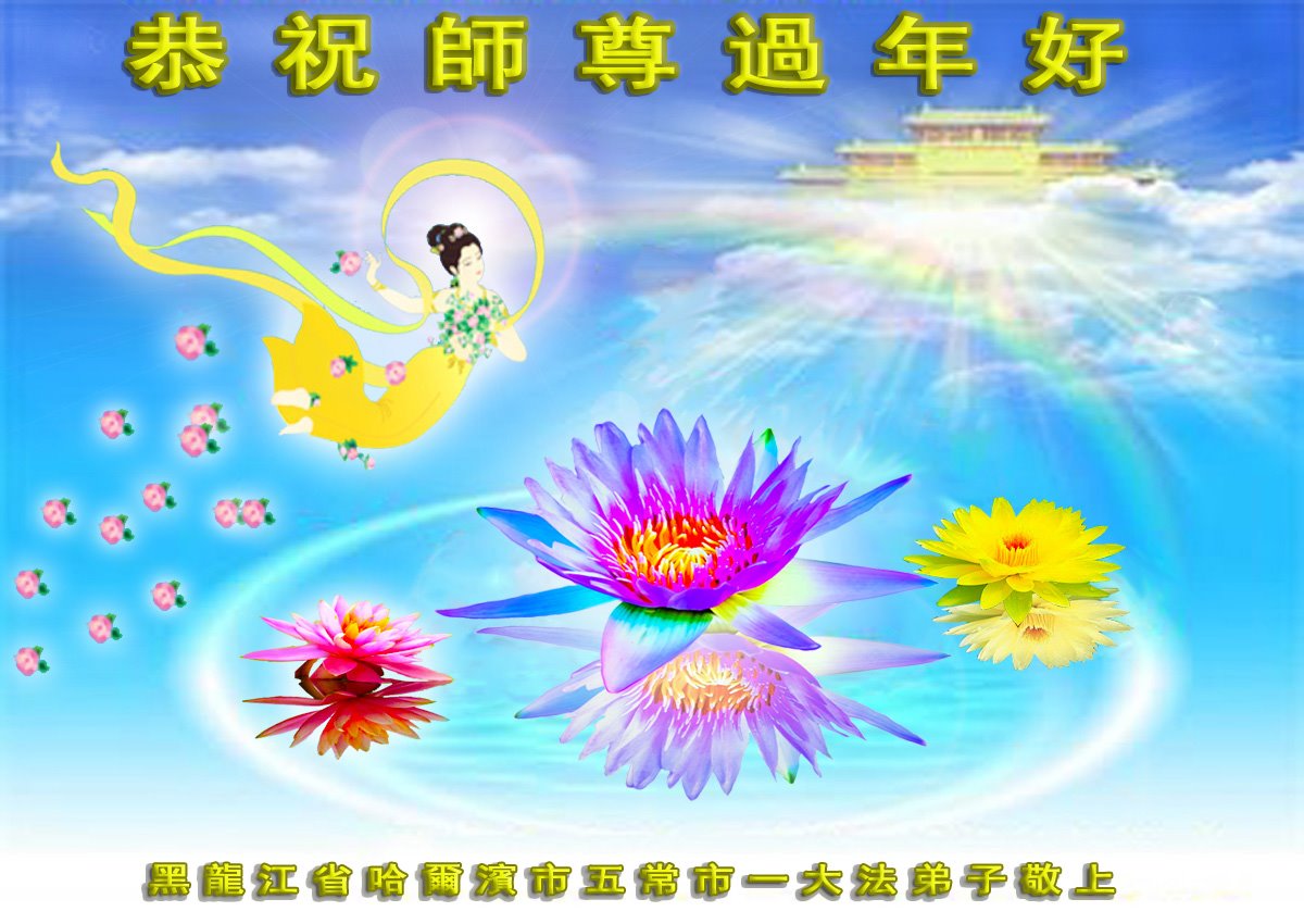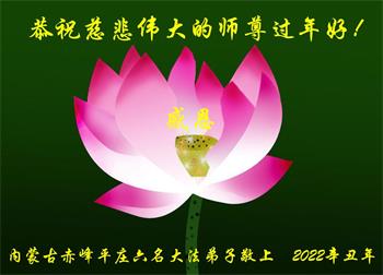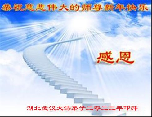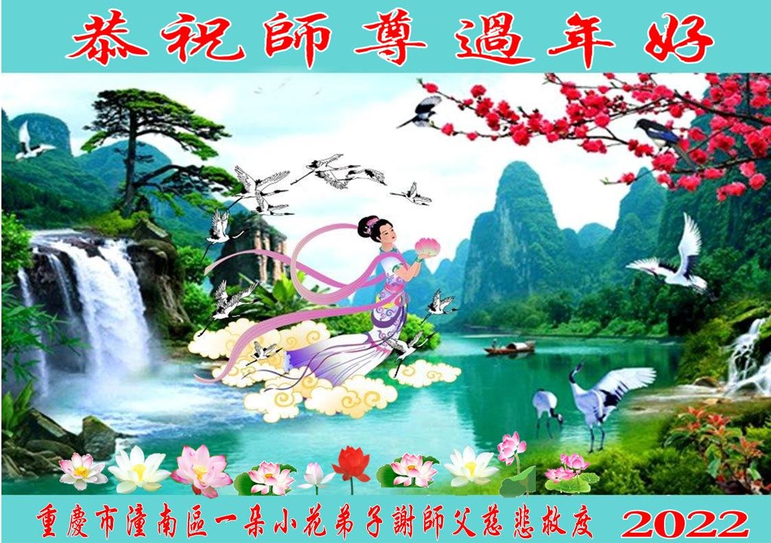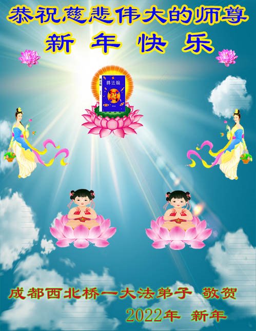 在师尊您的加持和保护下,又進入了新的一年。新的一年里,我们一定会按照师尊您的教诲,做好三件事,学好法,修好自己、多救人。紧跟师尊的正法進程,圆满随师还。