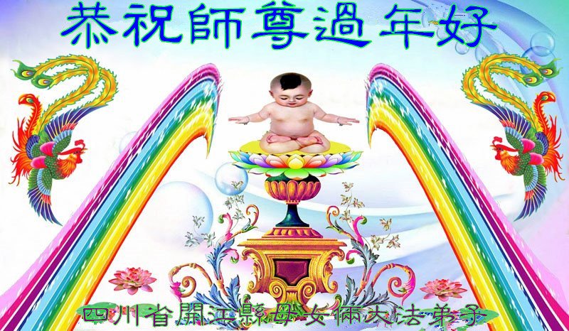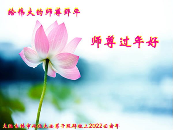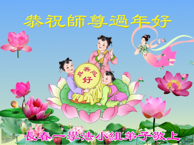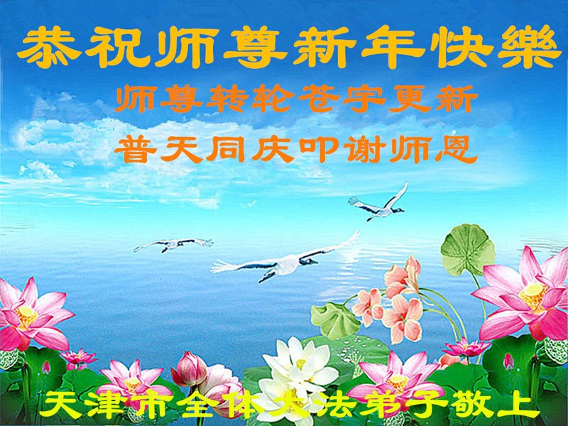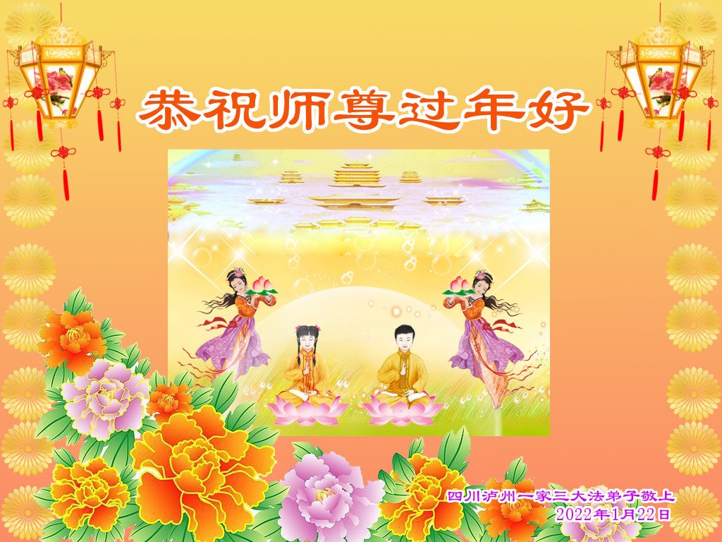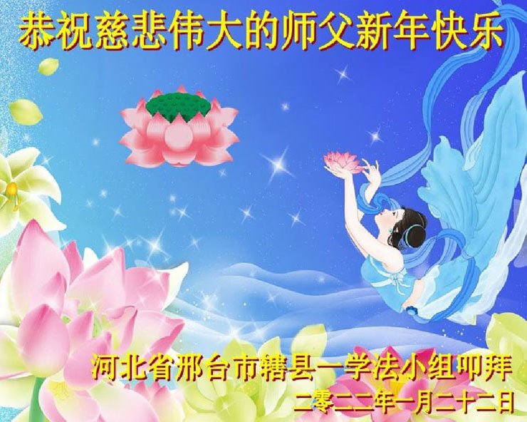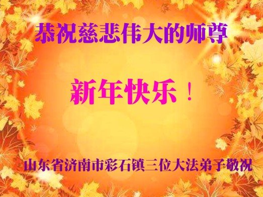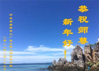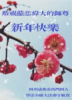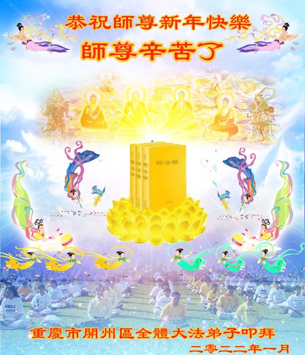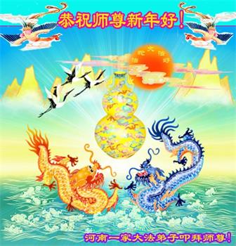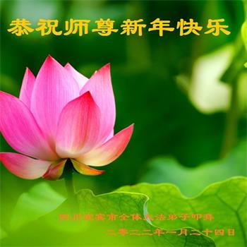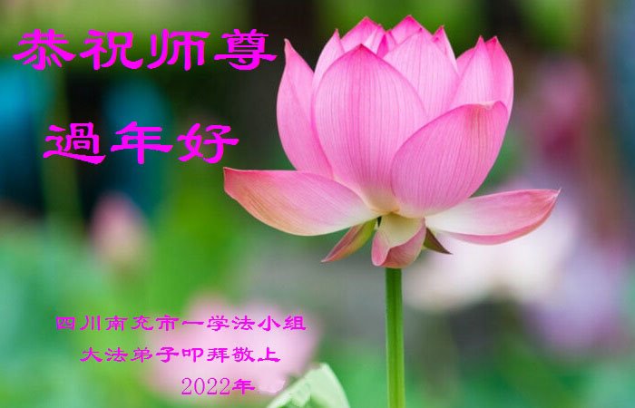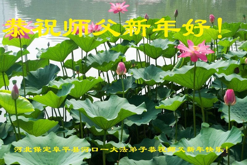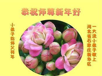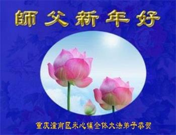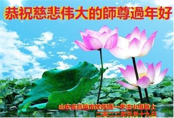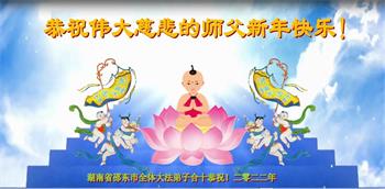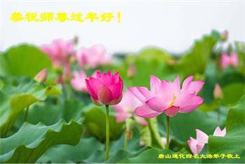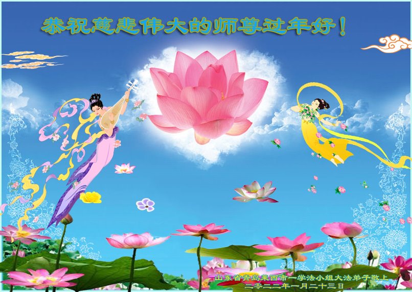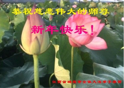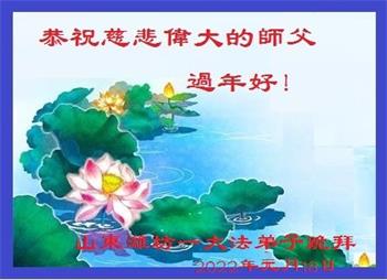在师尊您的加持和保护下,又進入了新的一年。新的一年里,我们一定会按照师尊您的教诲,做好三件事,学好法,修好自己、多救人。紧跟师尊的正法進程,圆满随师还。
