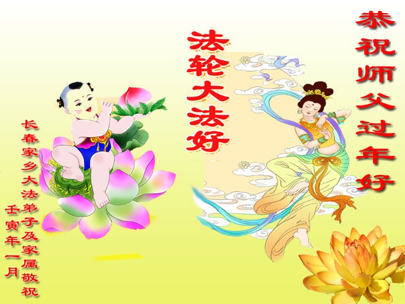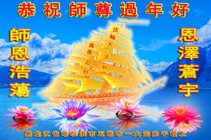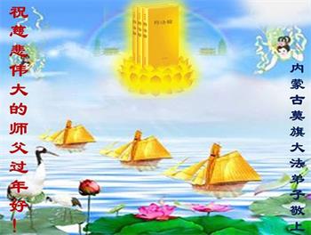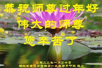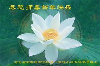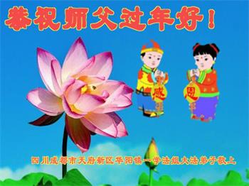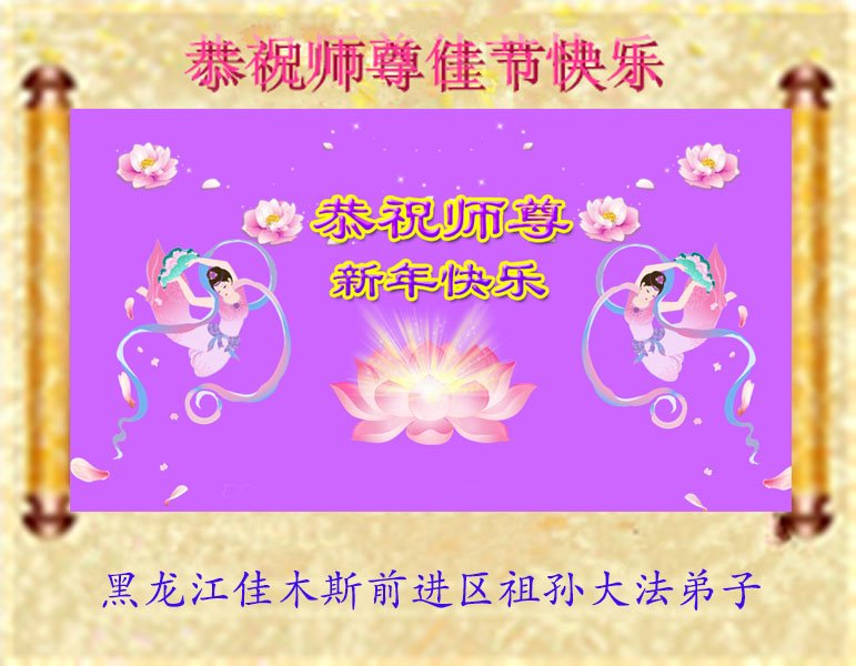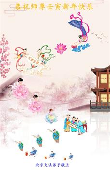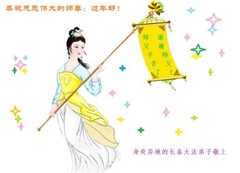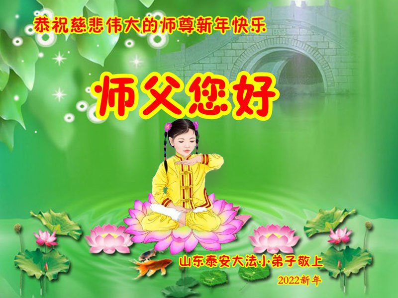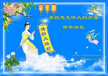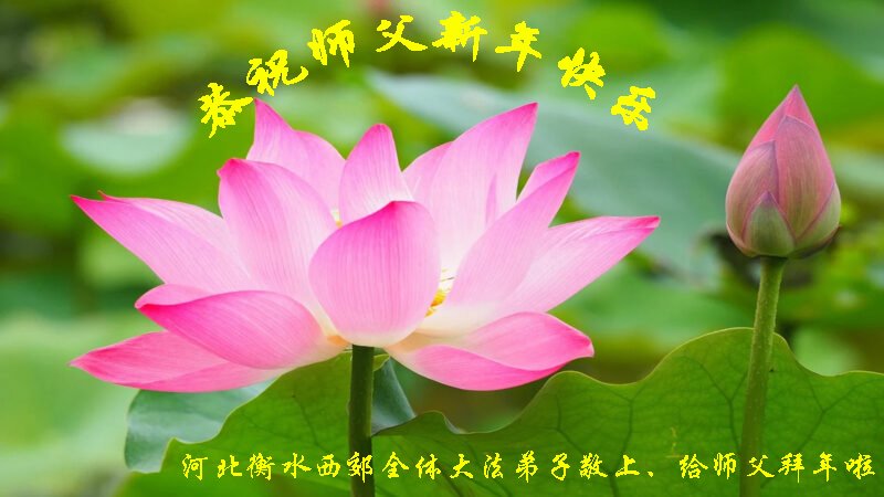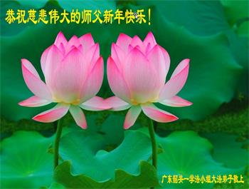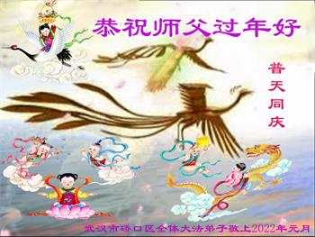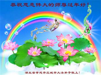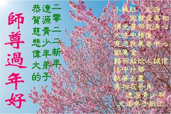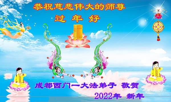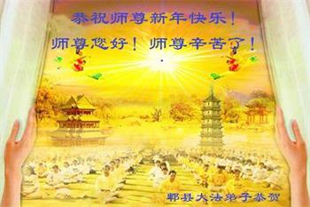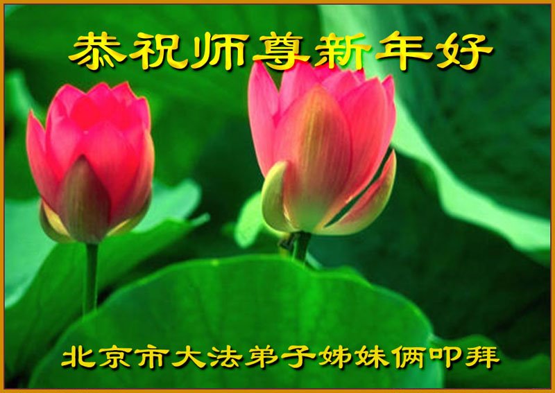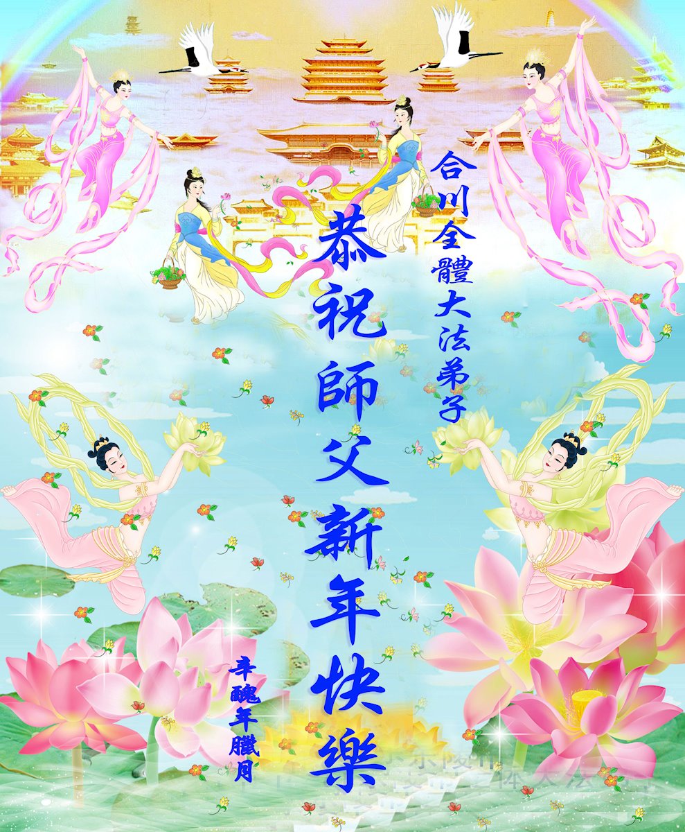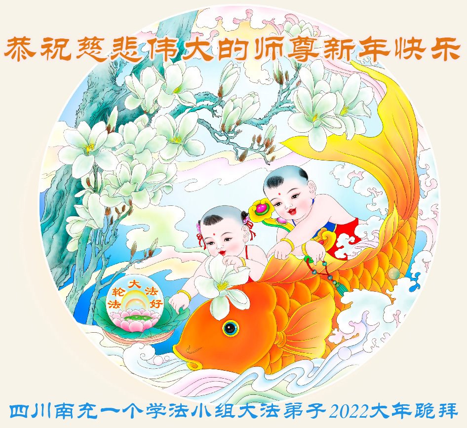 在师尊您的加持和保护下,又進入了新的一年。新的一年里,我们一定会按照师尊您的教诲,做好三件事,学好法,修好自己、多救人。紧跟师尊的正法進程,圆满随师还。