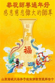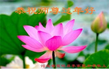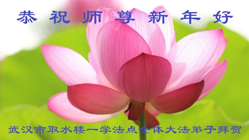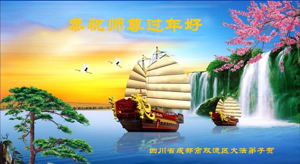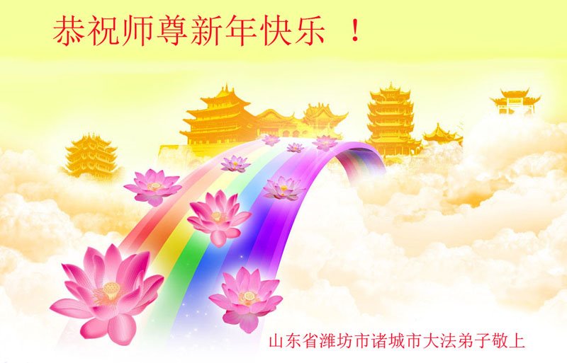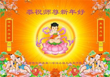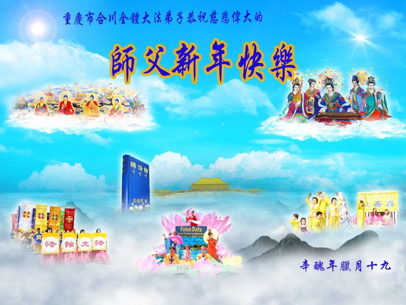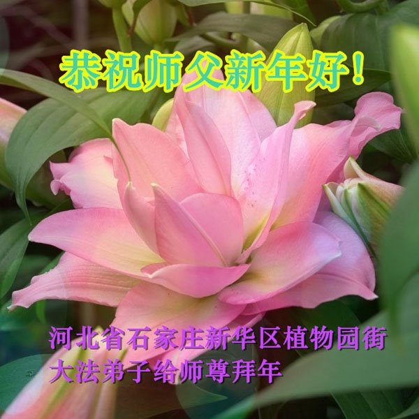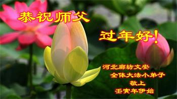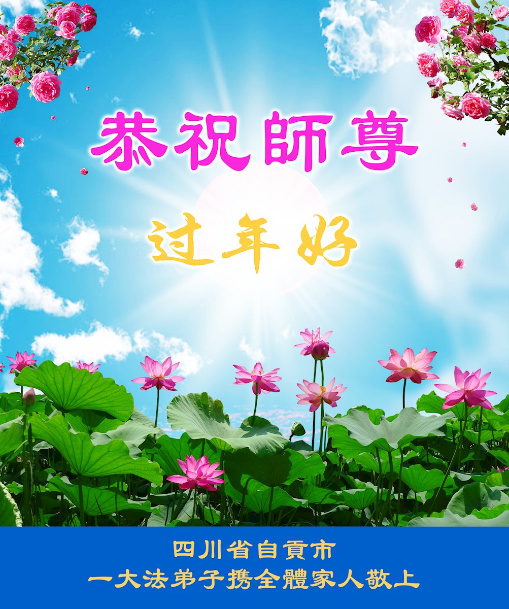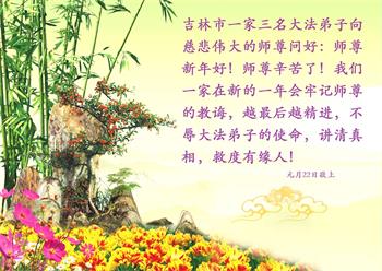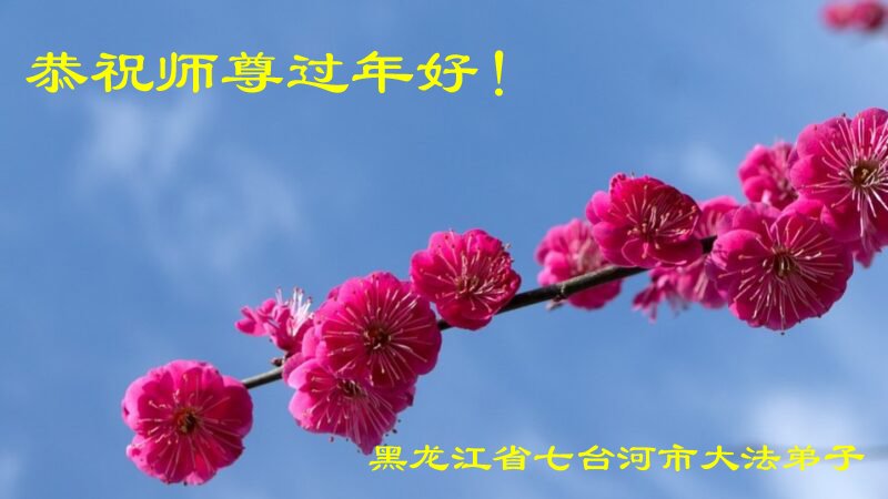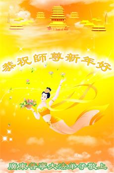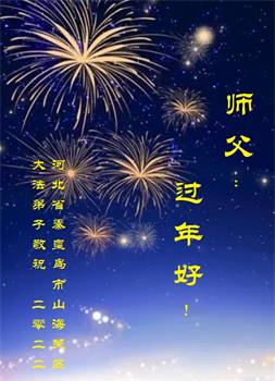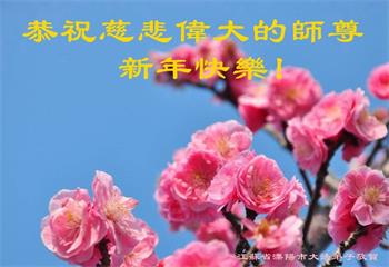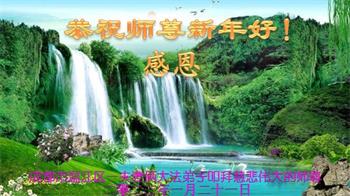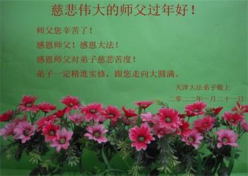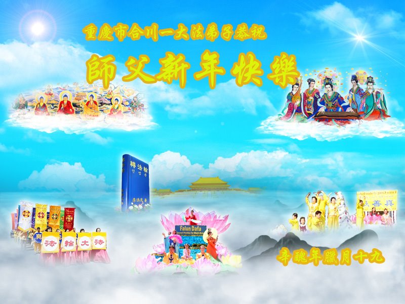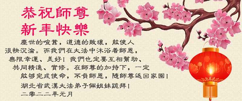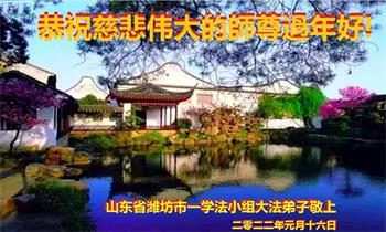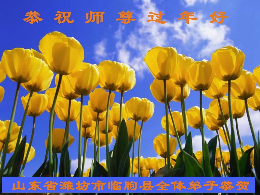 在师尊您的加持和保护下,又進入了新的一年。新的一年里,我们一定会按照师尊您的教诲,做好三件事,学好法,修好自己、多救人。紧跟师尊的正法進程,圆满随师还。