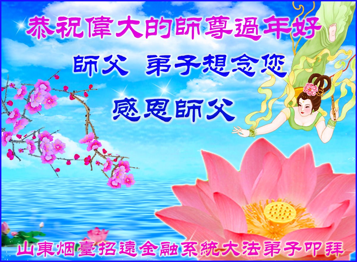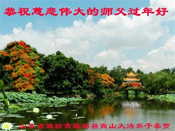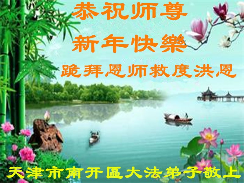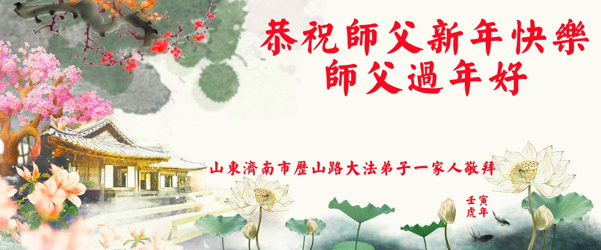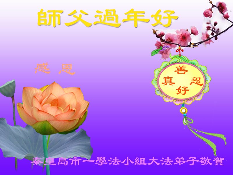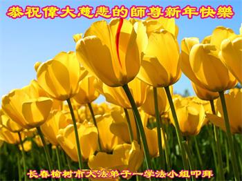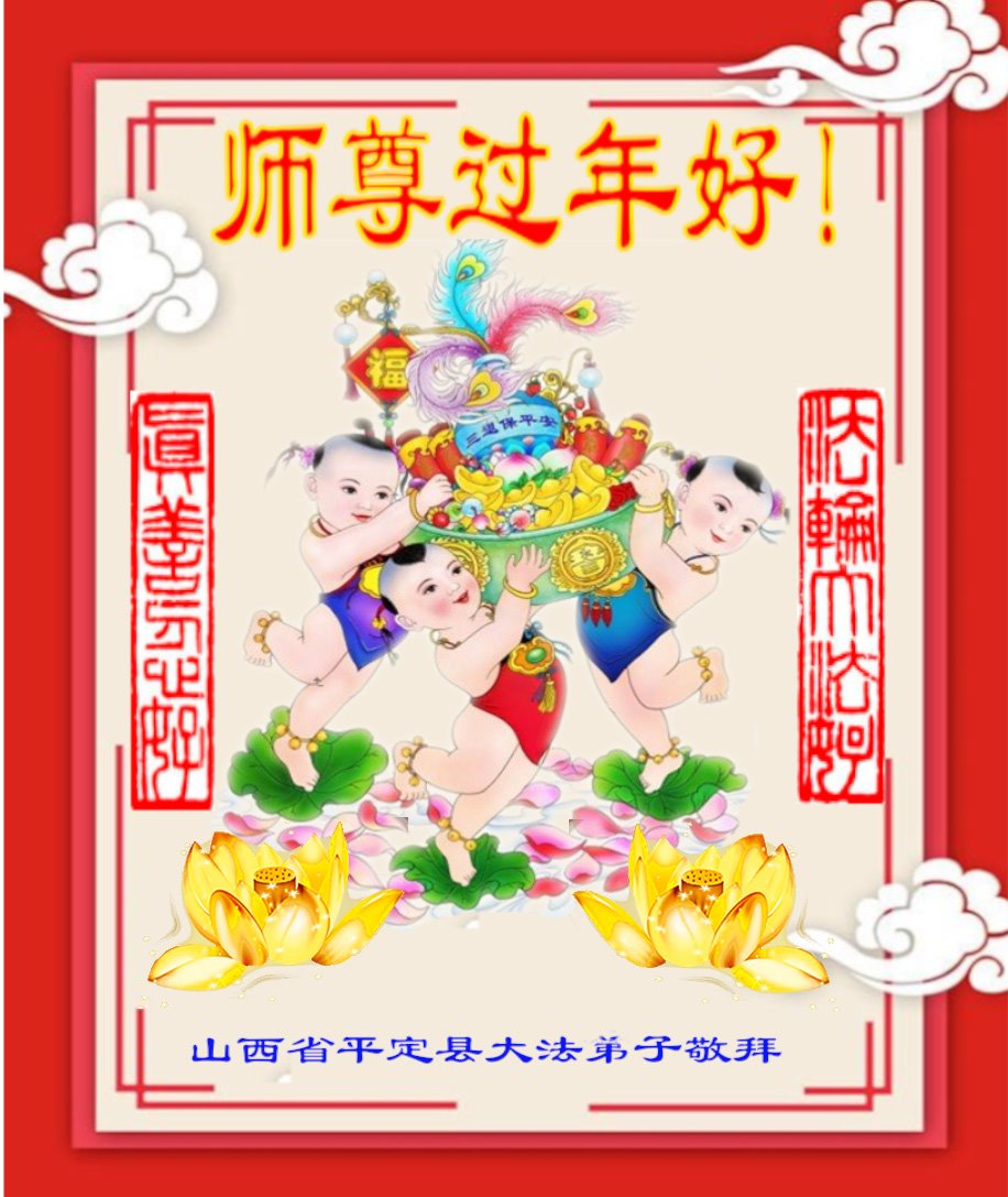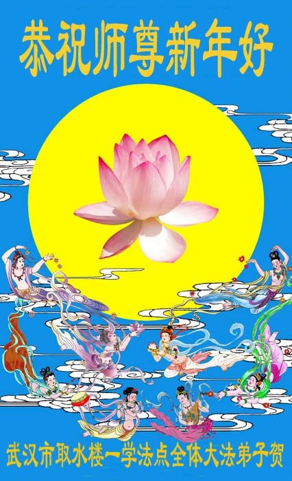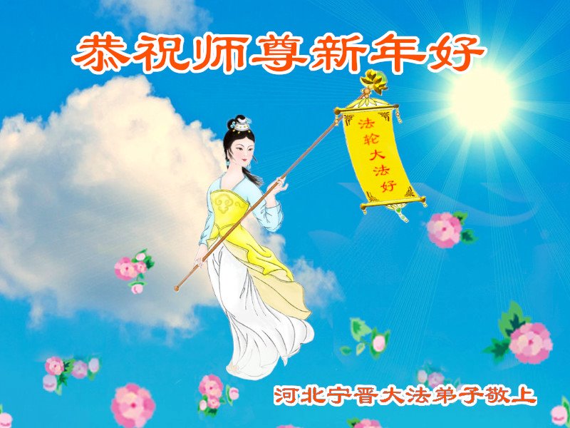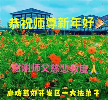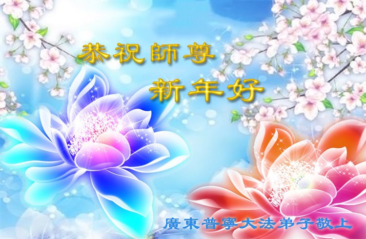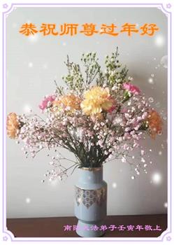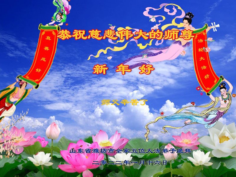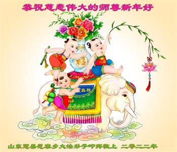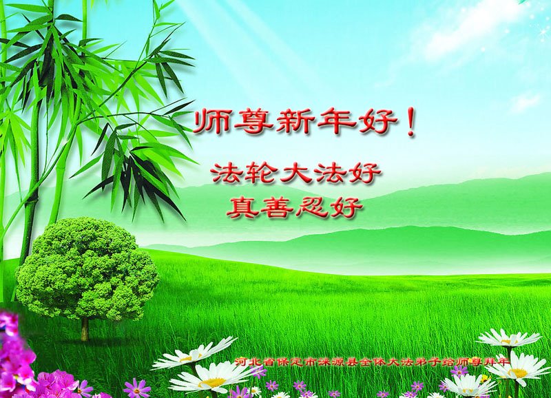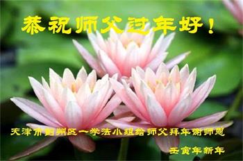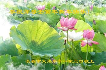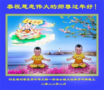 在师尊您的加持和保护下,又進入了新的一年。新的一年里,我们一定会按照师尊您的教诲,做好三件事,学好法,修好自己、多救人。紧跟师尊的正法進程,圆满随师还。