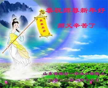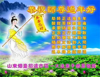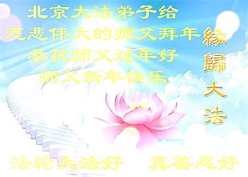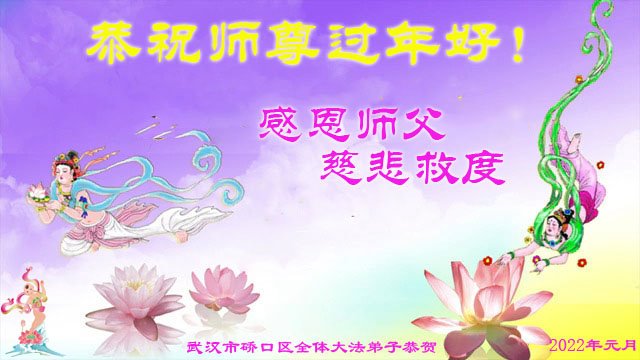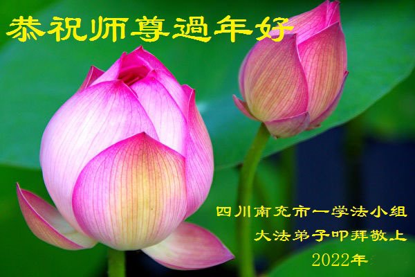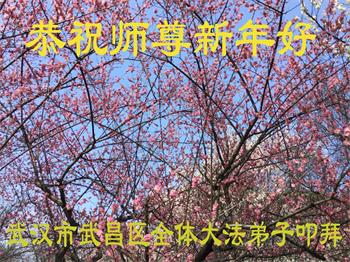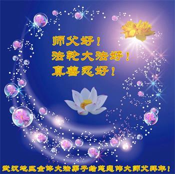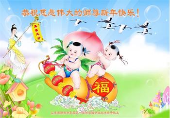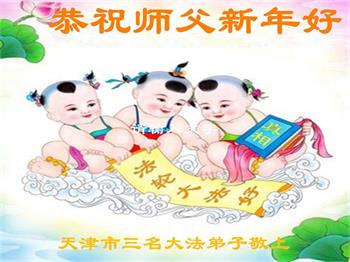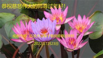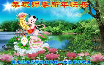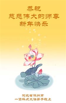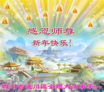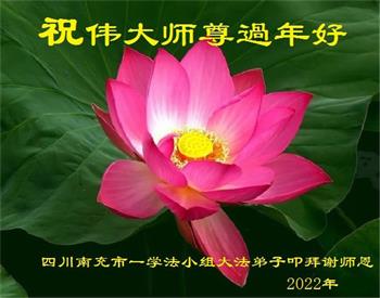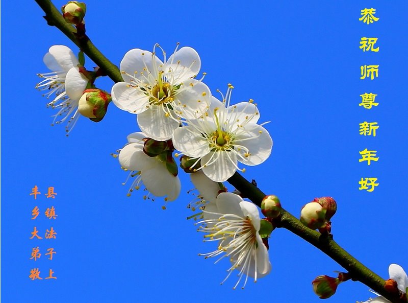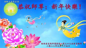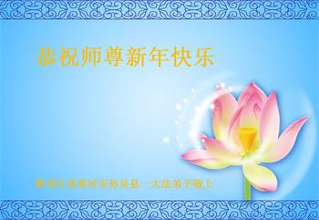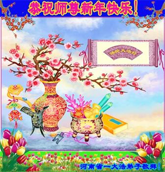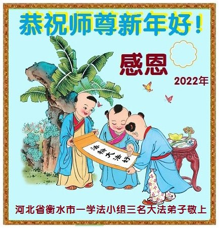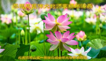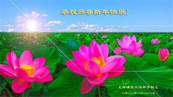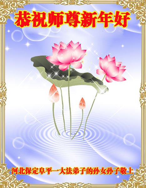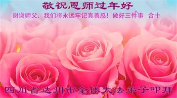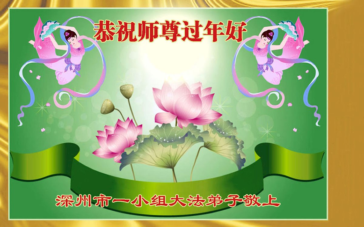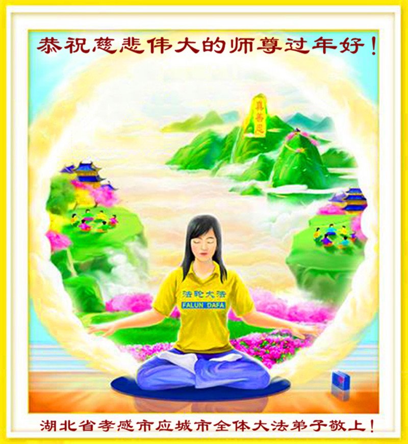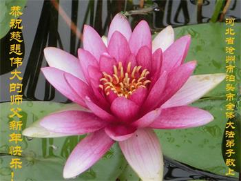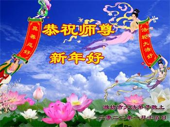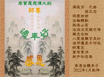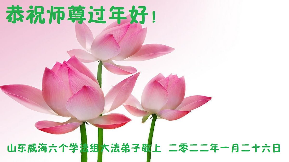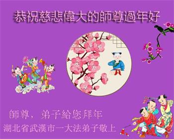 在师尊您的加持和保护下,又進入了新的一年。新的一年里,我们一定会按照师尊您的教诲,做好三件事,学好法,修好自己、多救人。紧跟师尊的正法進程,圆满随师还。