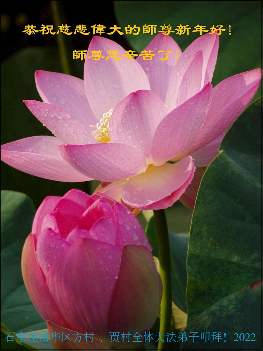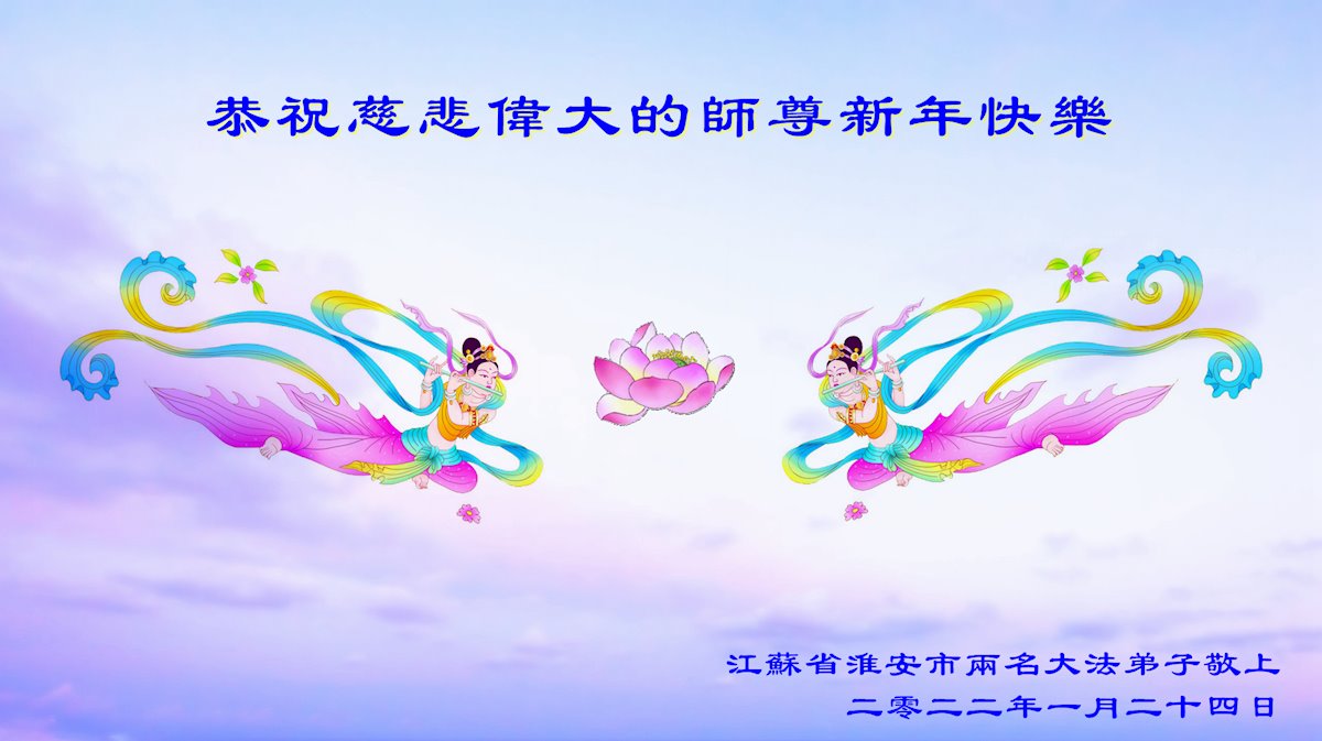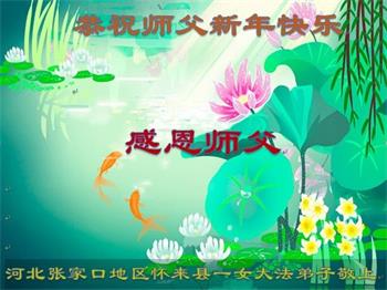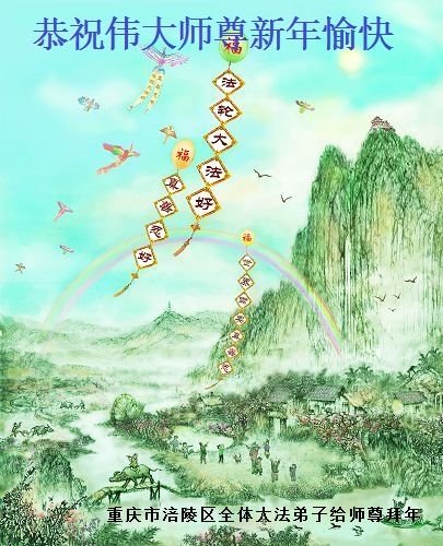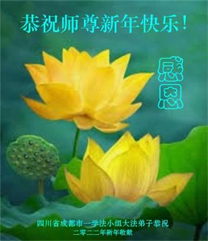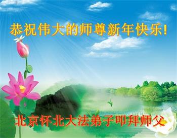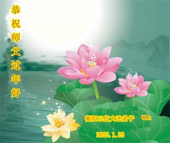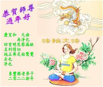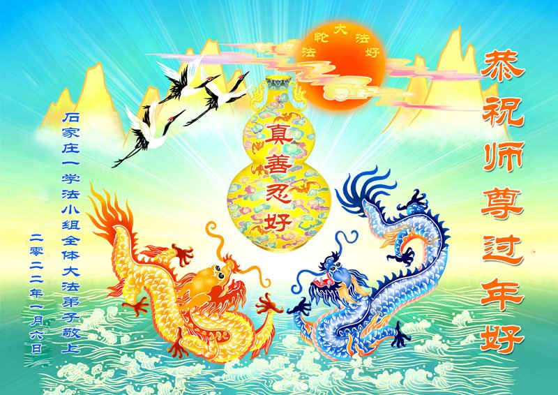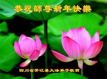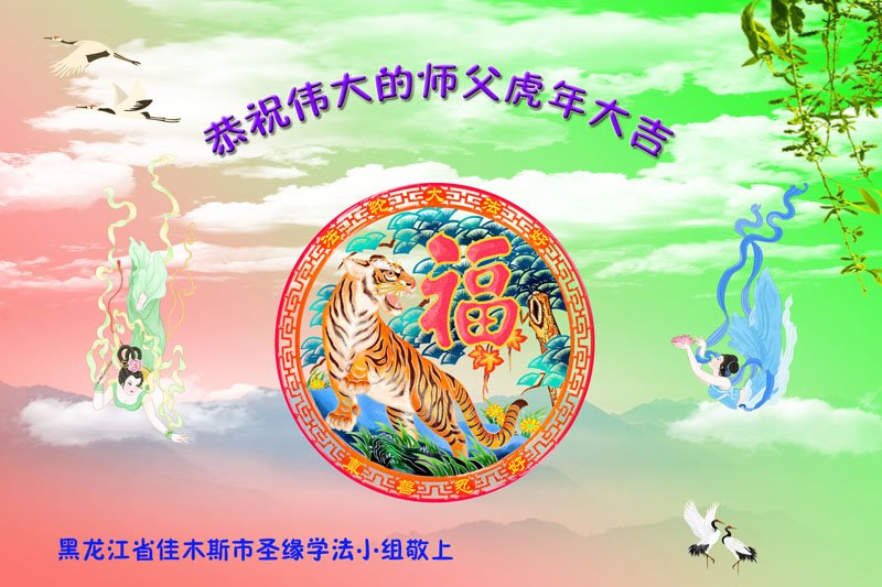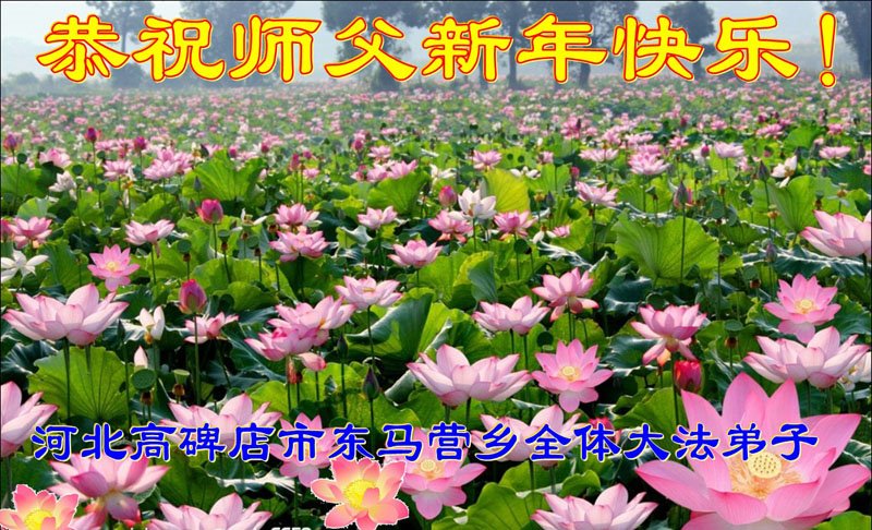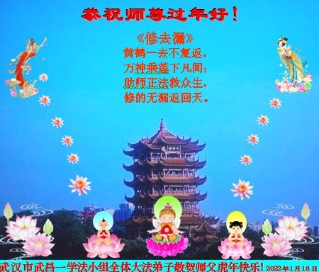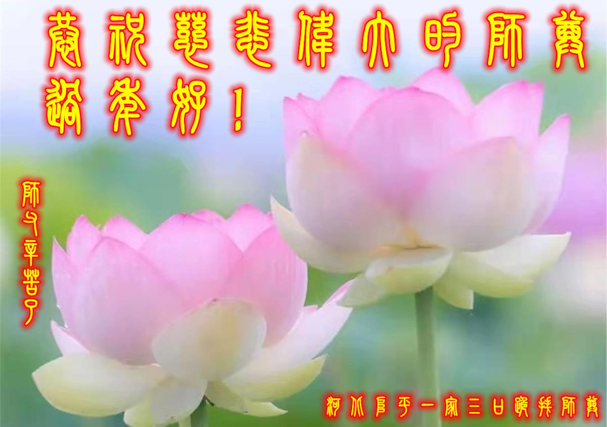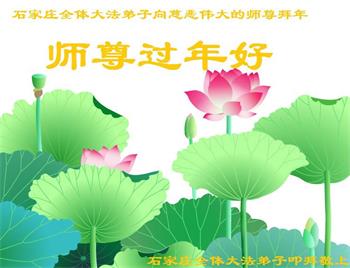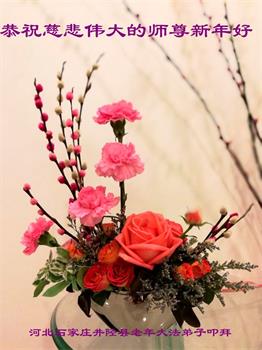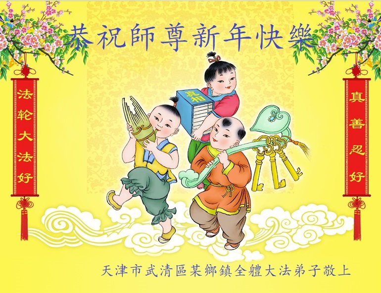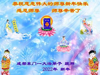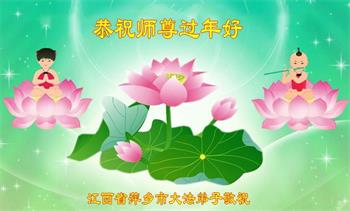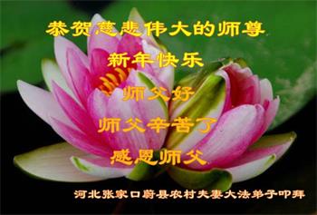 在师尊您的加持和保护下,又進入了新的一年。新的一年里,我们一定会按照师尊您的教诲,做好三件事,学好法,修好自己、多救人。紧跟师尊的正法進程,圆满随师还。