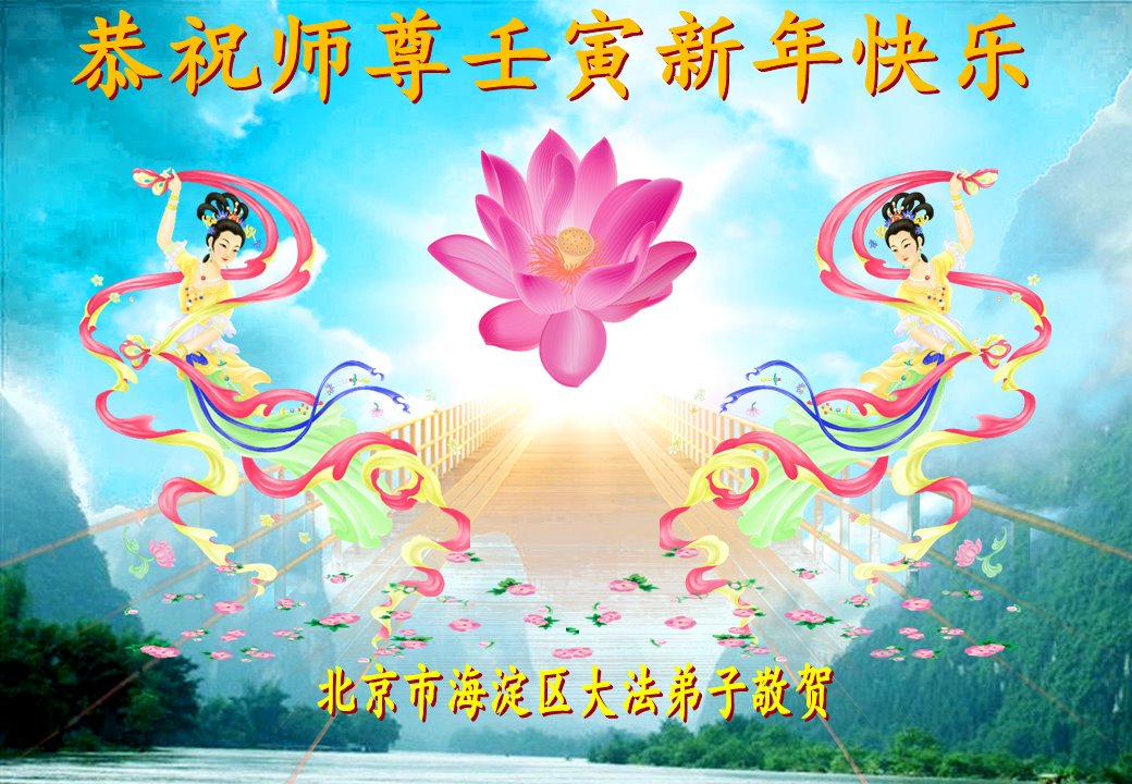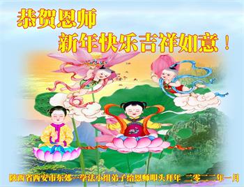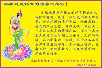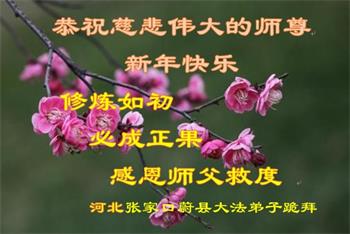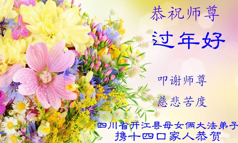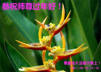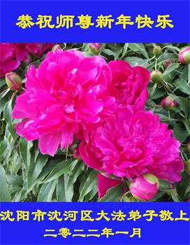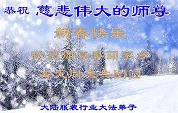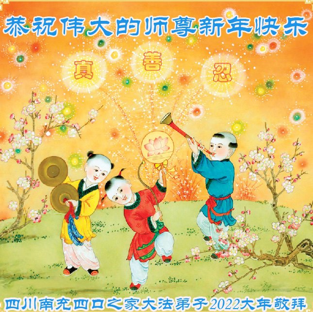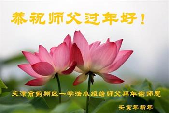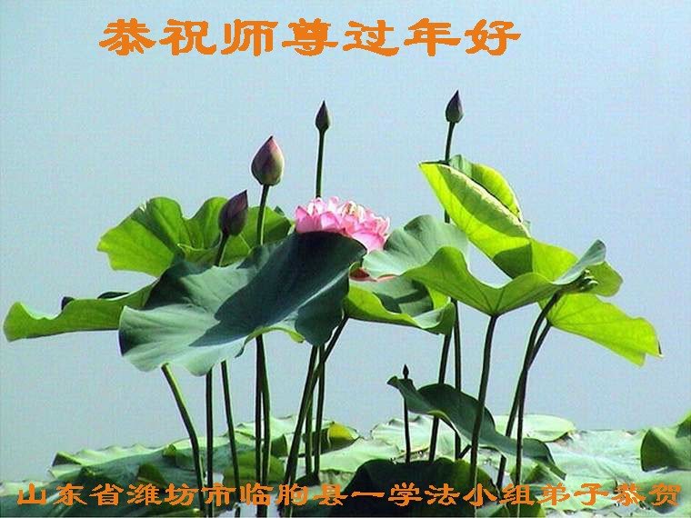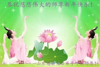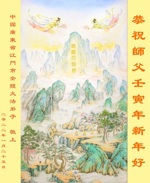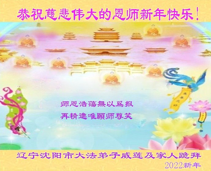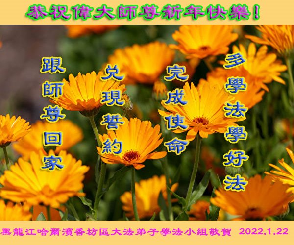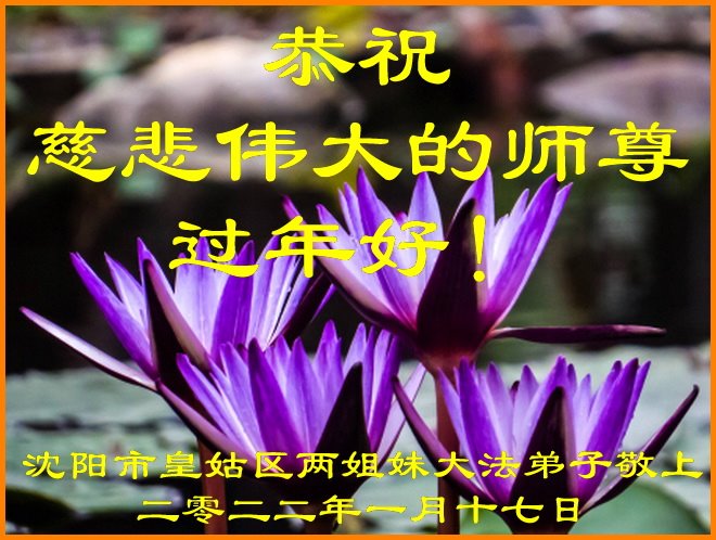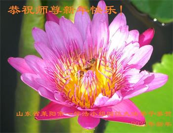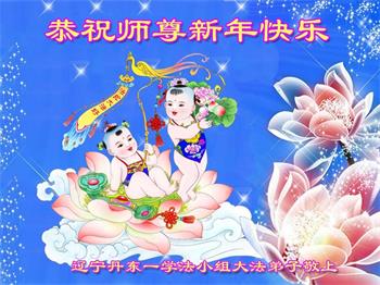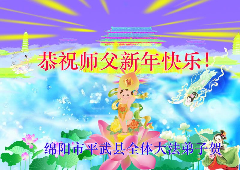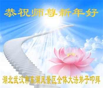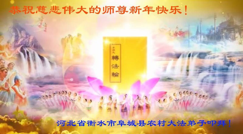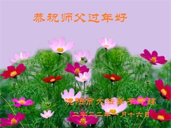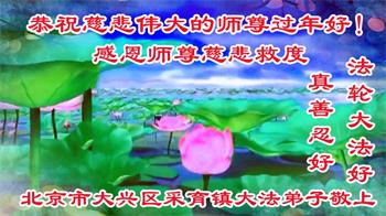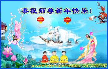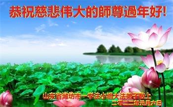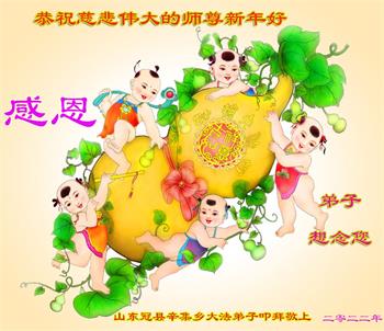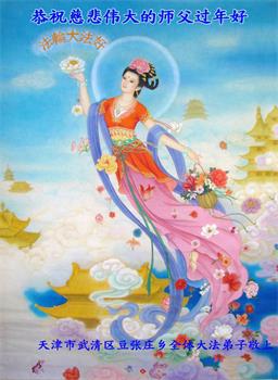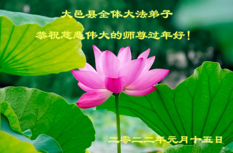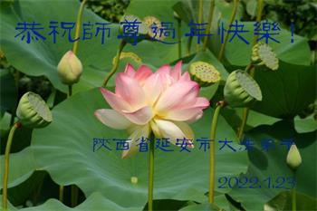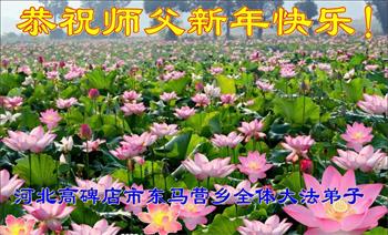 在师尊您的加持和保护下,又進入了新的一年。新的一年里,我们一定会按照师尊您的教诲,做好三件事,学好法,修好自己、多救人。紧跟师尊的正法進程,圆满随师还。