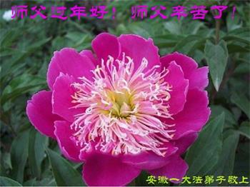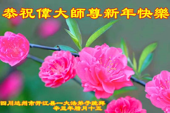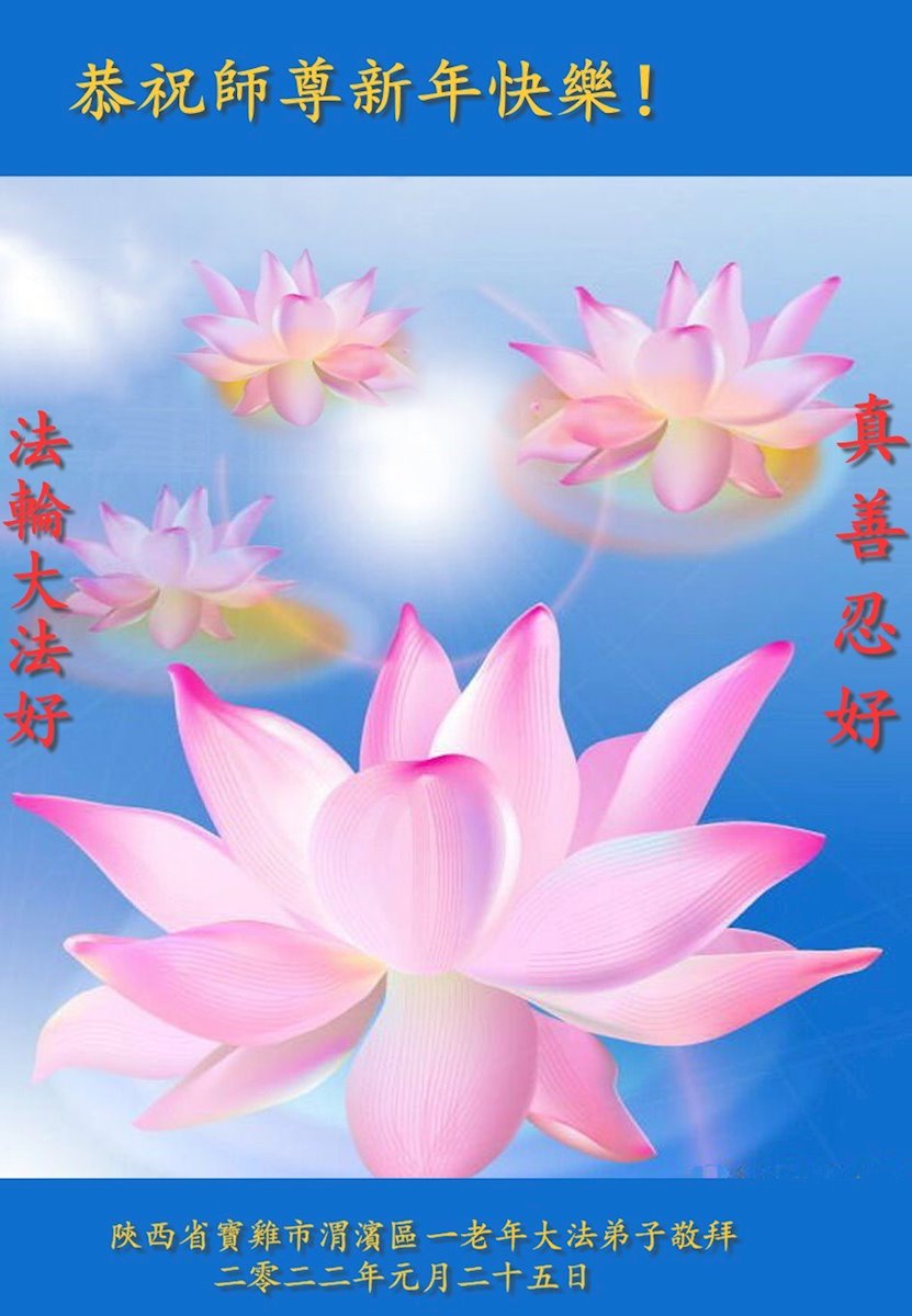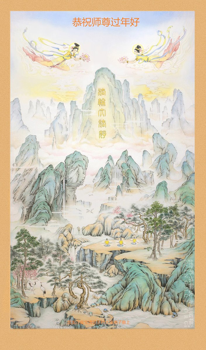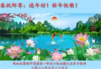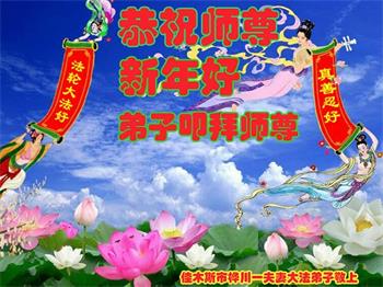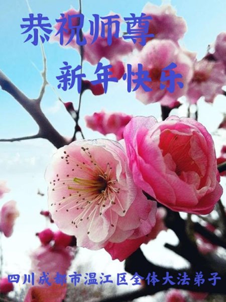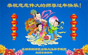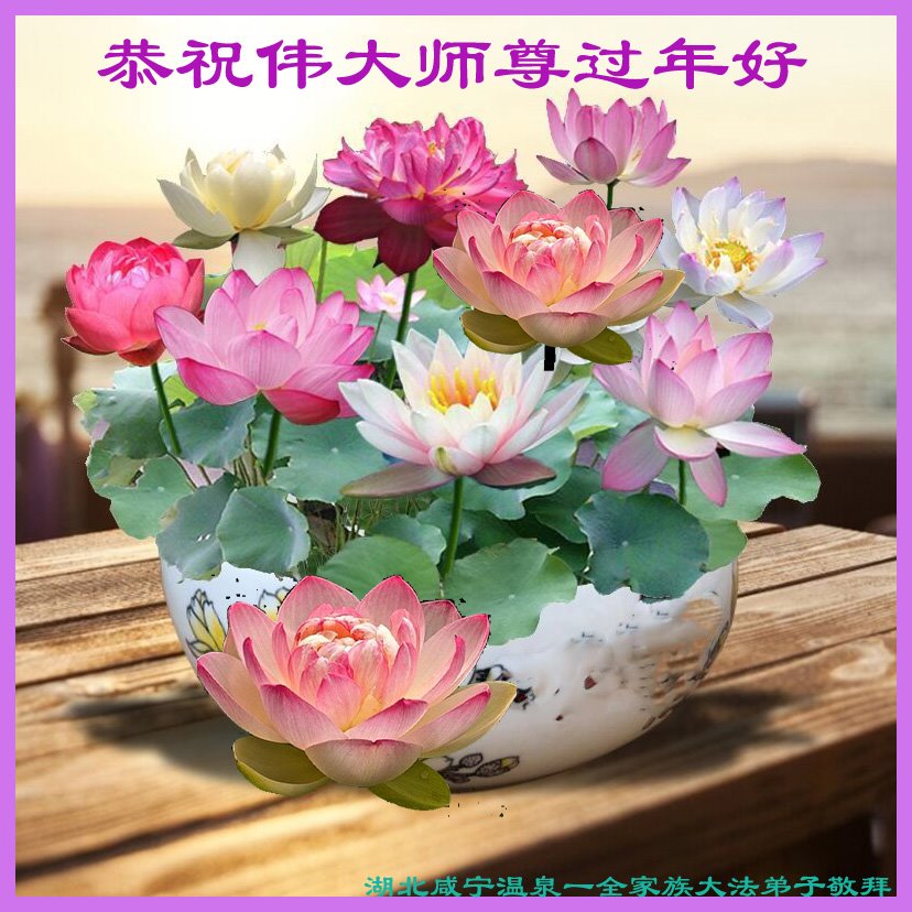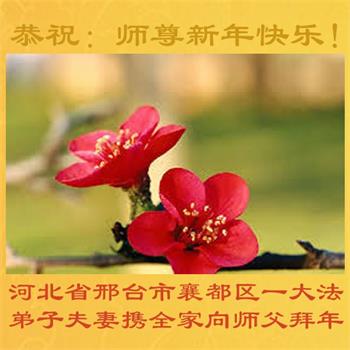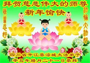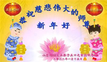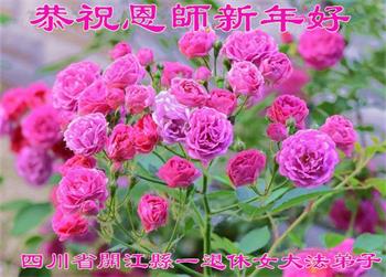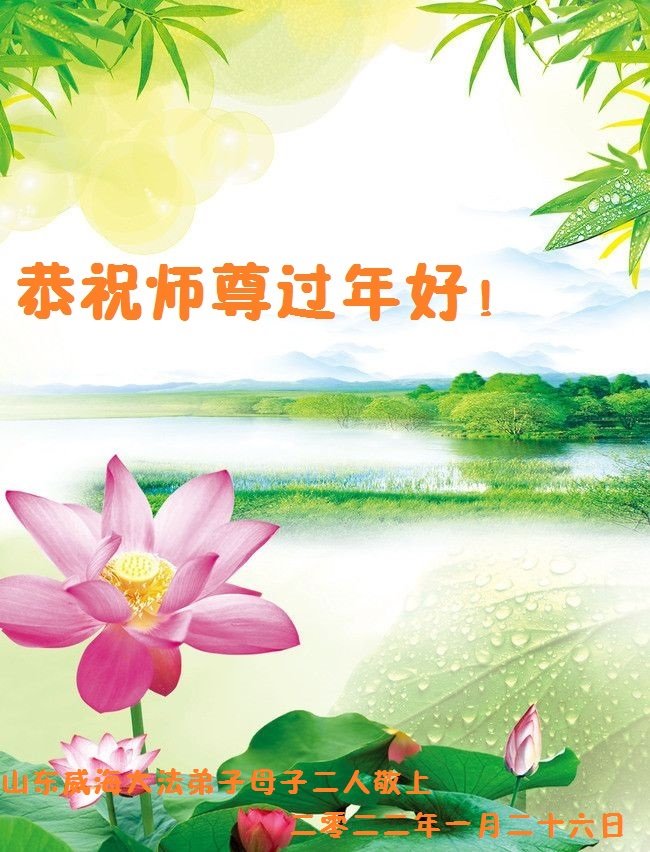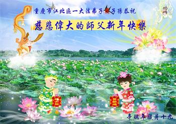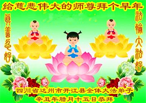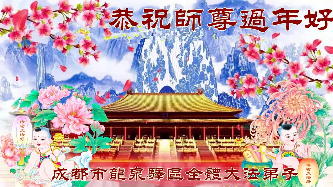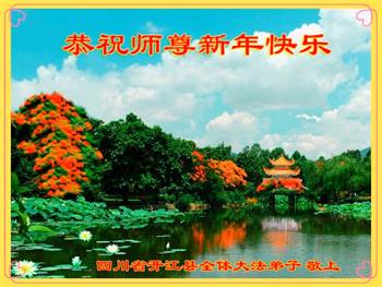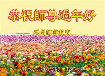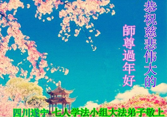 在师尊您的加持和保护下,又進入了新的一年。新的一年里,我们一定会按照师尊您的教诲,做好三件事,学好法,修好自己、多救人。紧跟师尊的正法進程,圆满随师还。