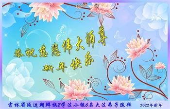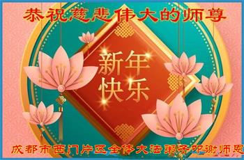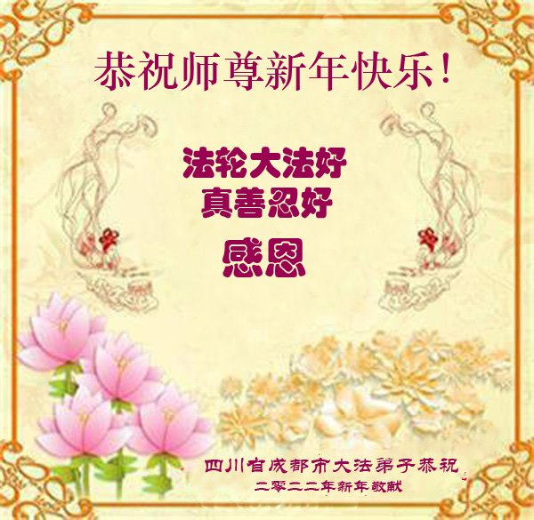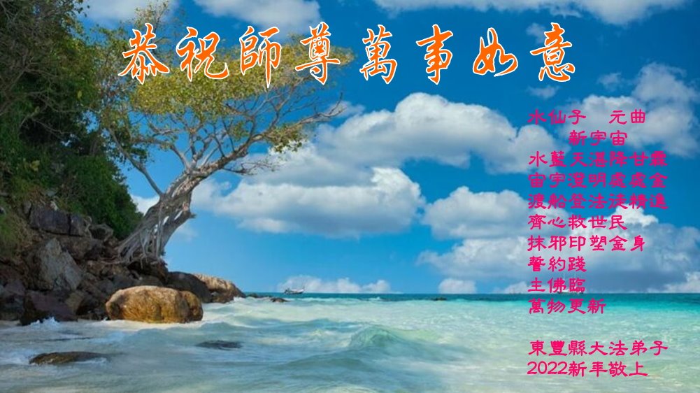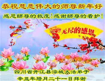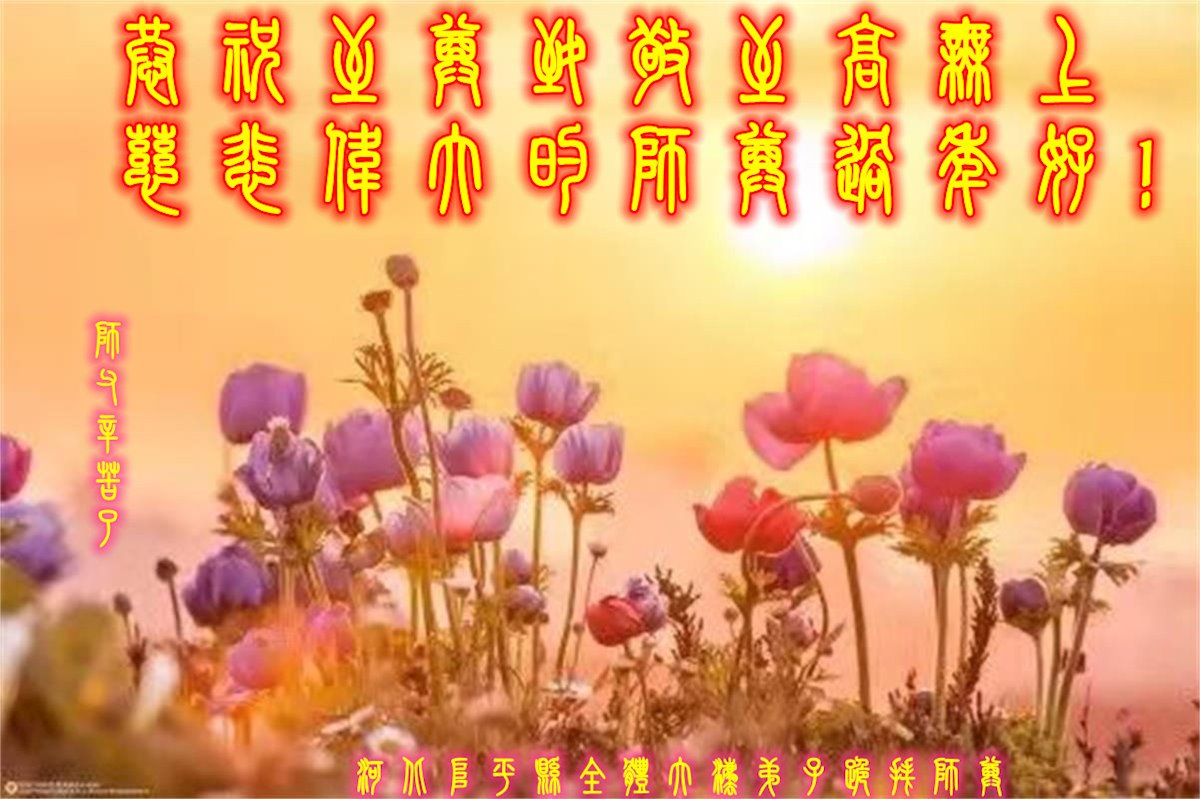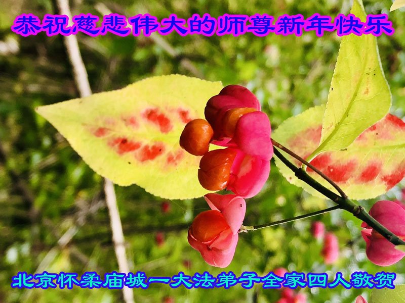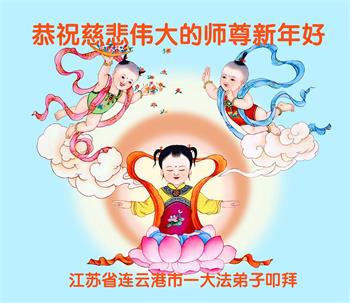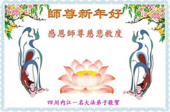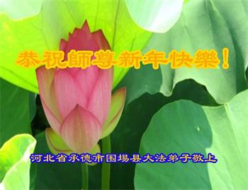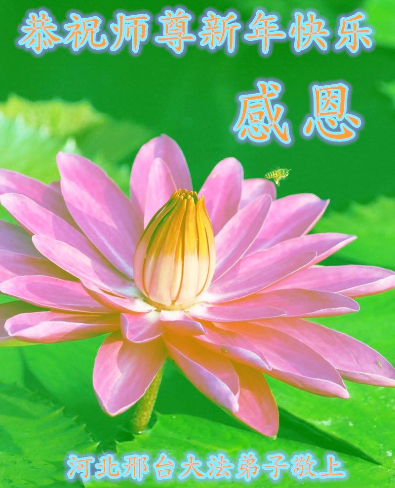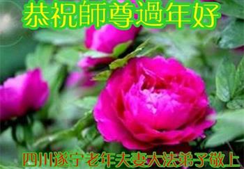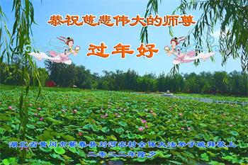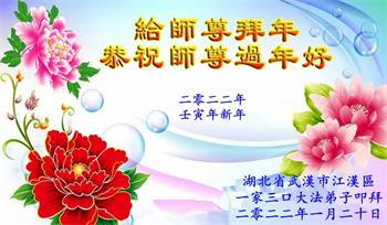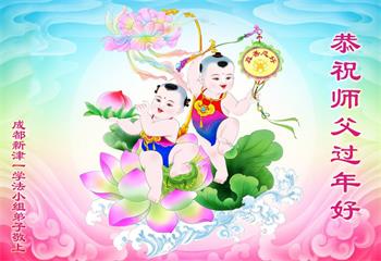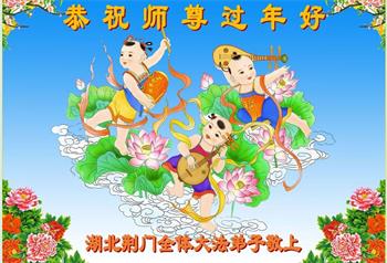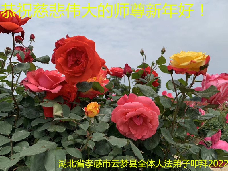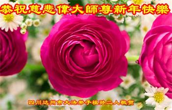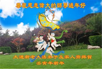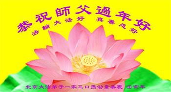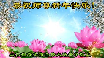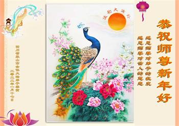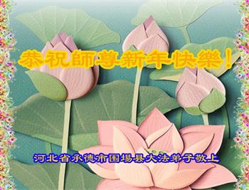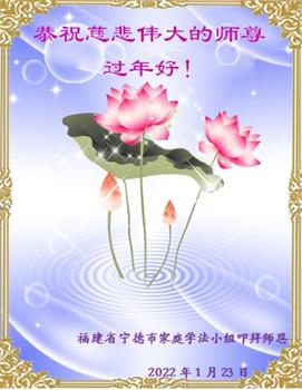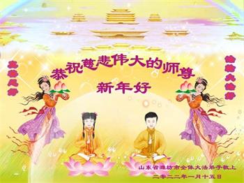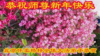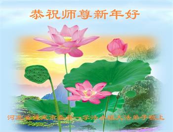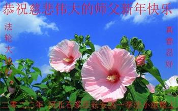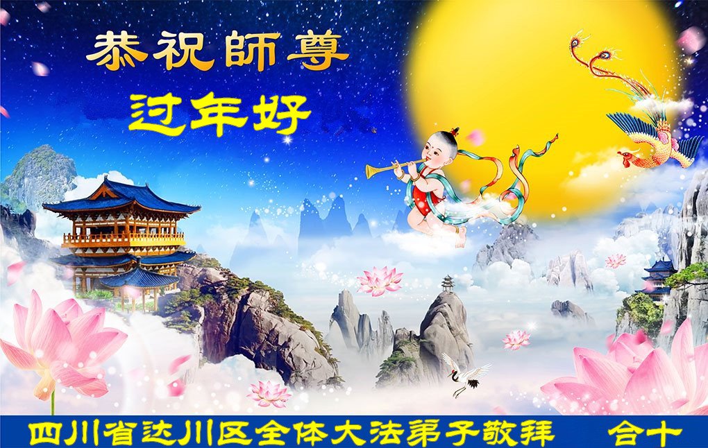 在师尊您的加持和保护下,又進入了新的一年。新的一年里,我们一定会按照师尊您的教诲,做好三件事,学好法,修好自己、多救人。紧跟师尊的正法進程,圆满随师还。
