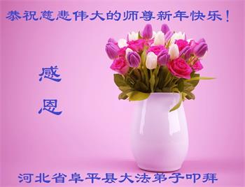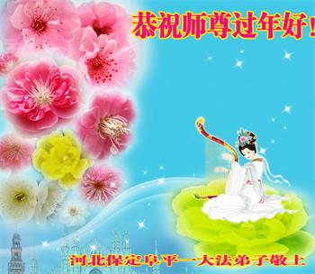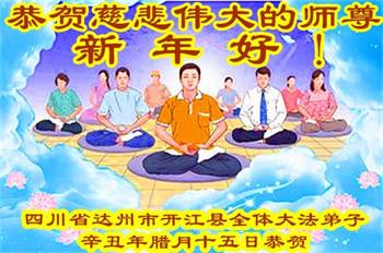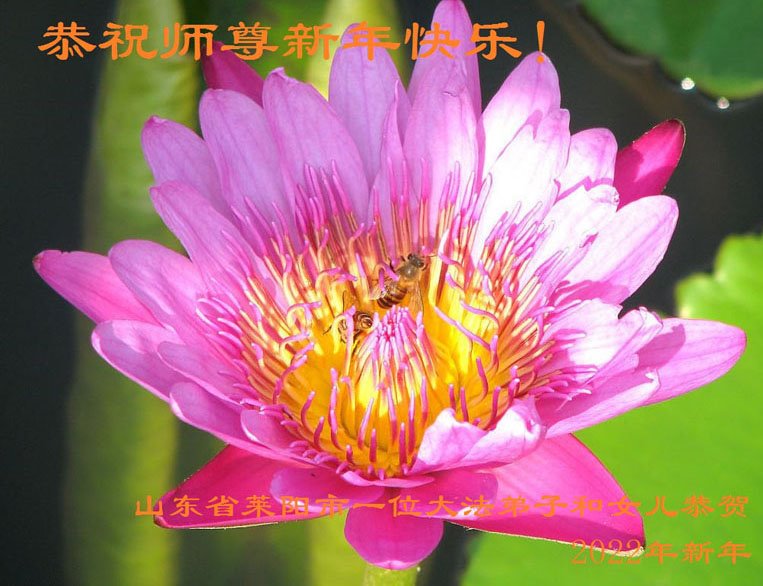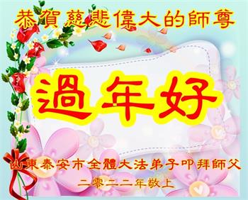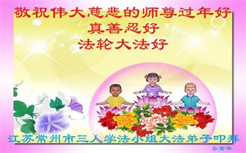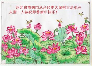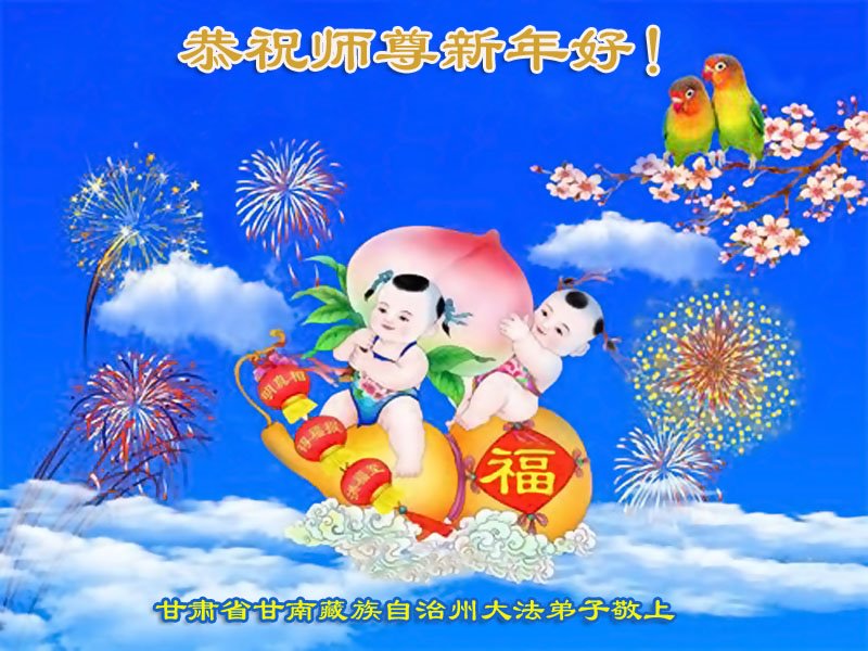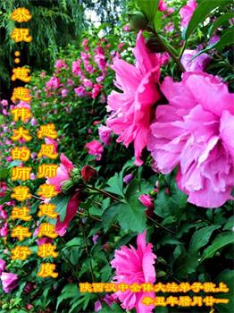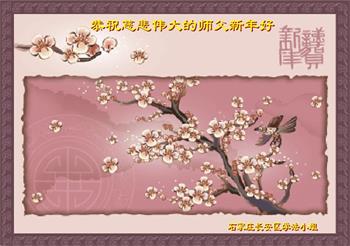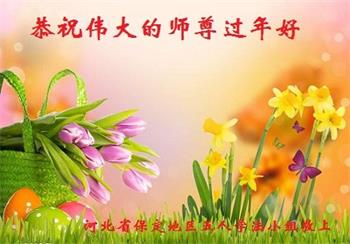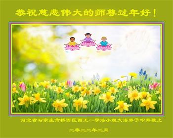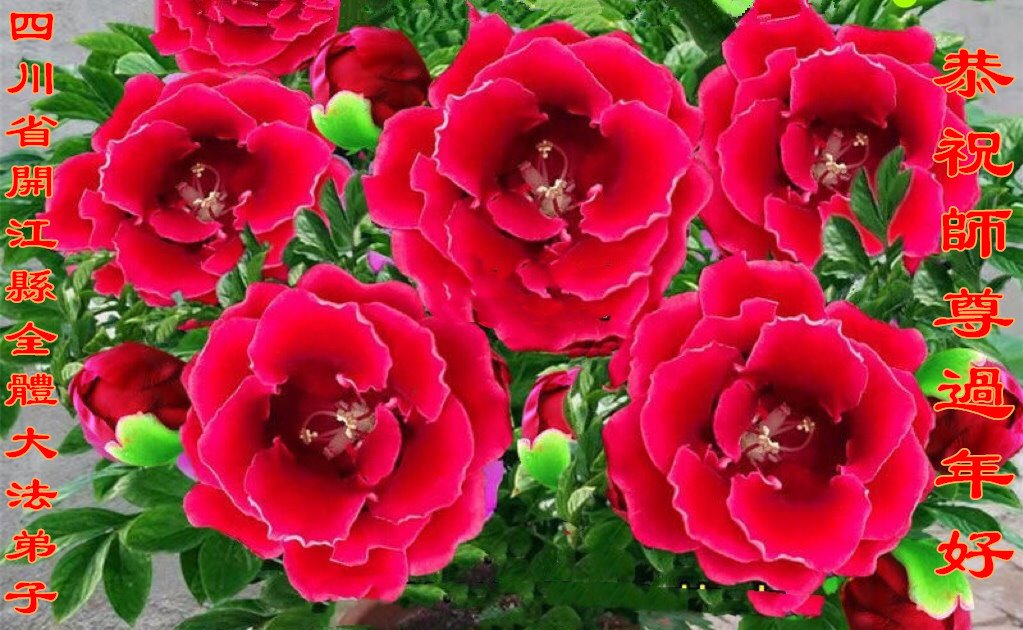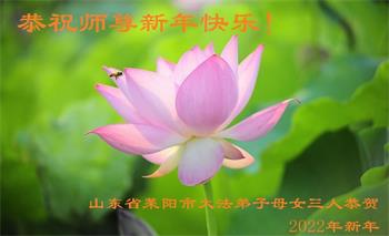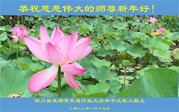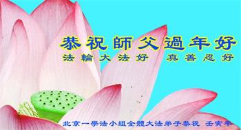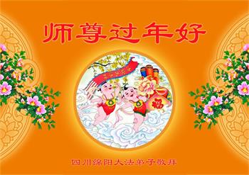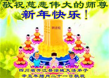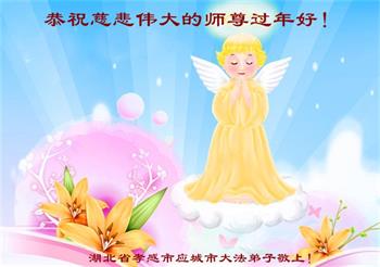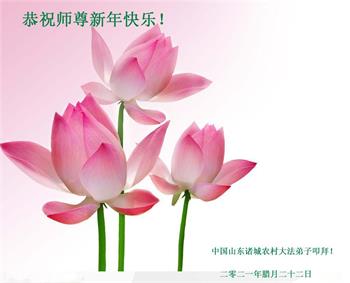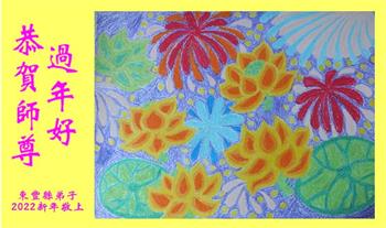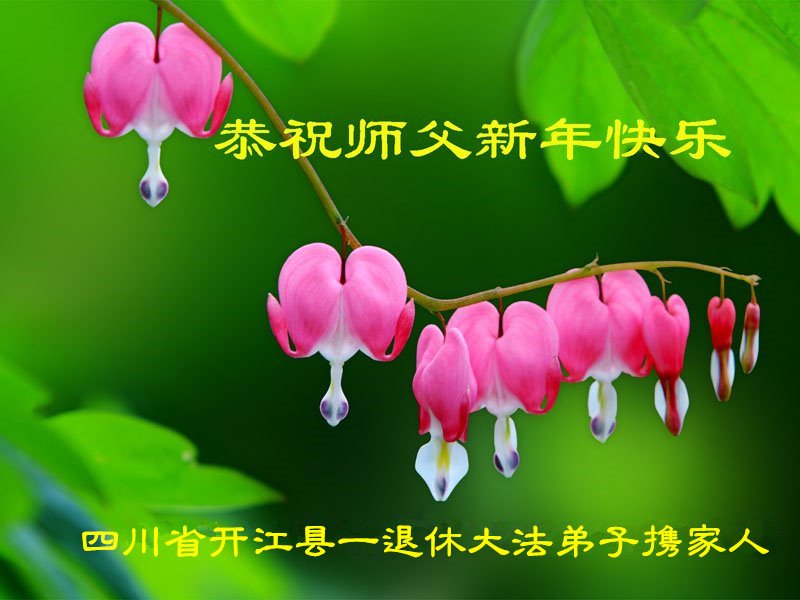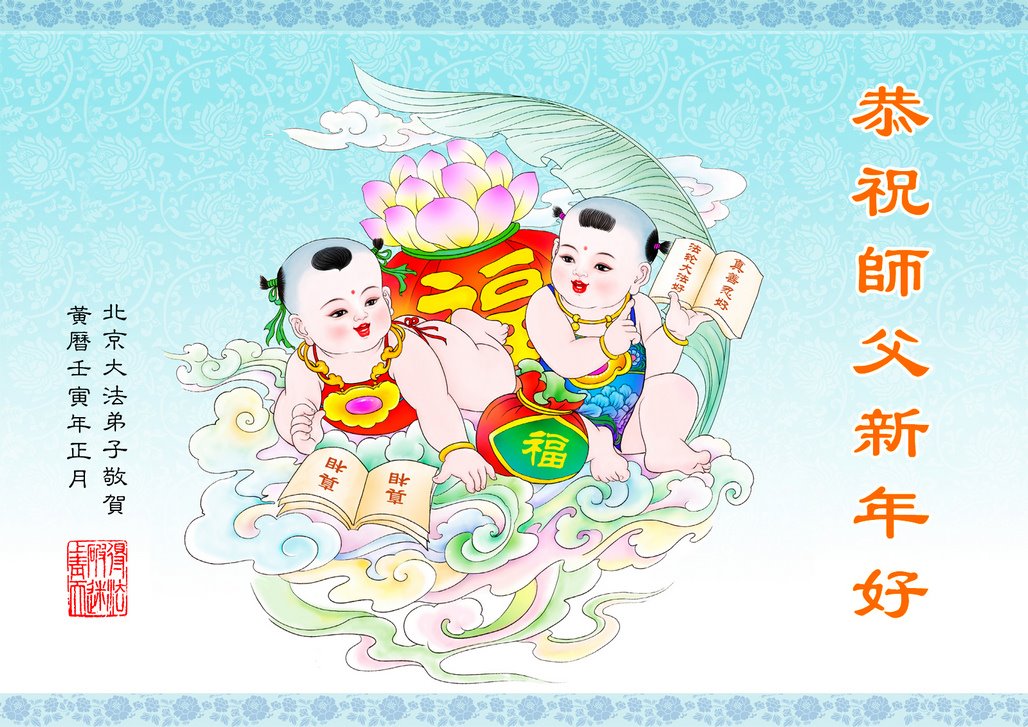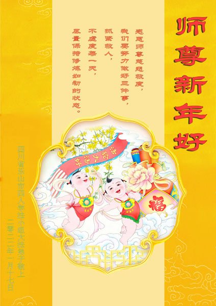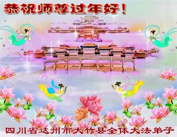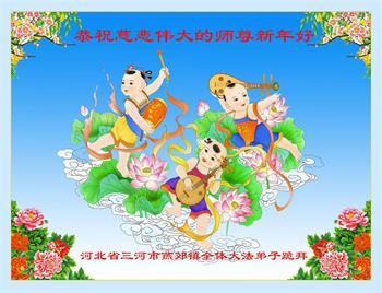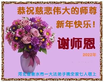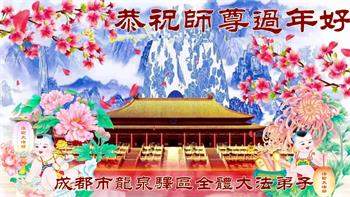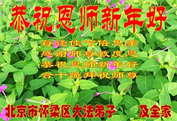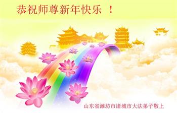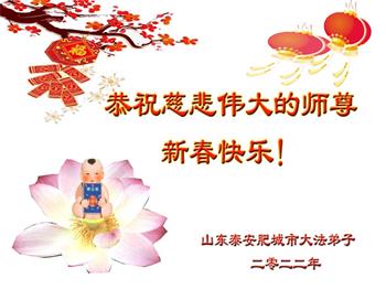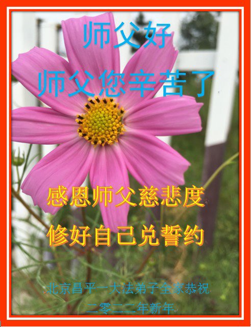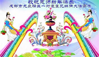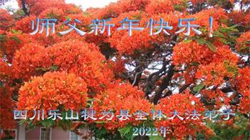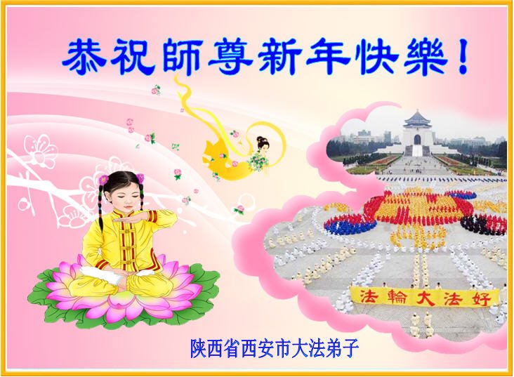 在师尊您的加持和保护下,又進入了新的一年。新的一年里,我们一定会按照师尊您的教诲,做好三件事,学好法,修好自己、多救人。紧跟师尊的正法進程,圆满随师还。
