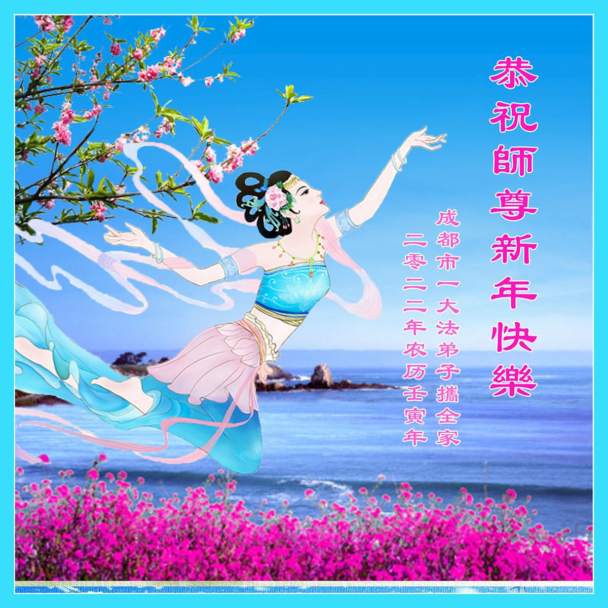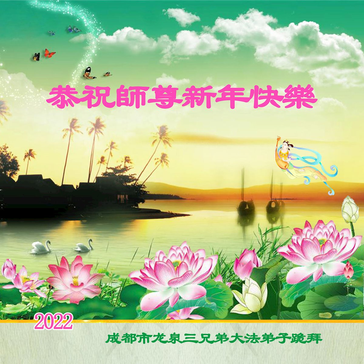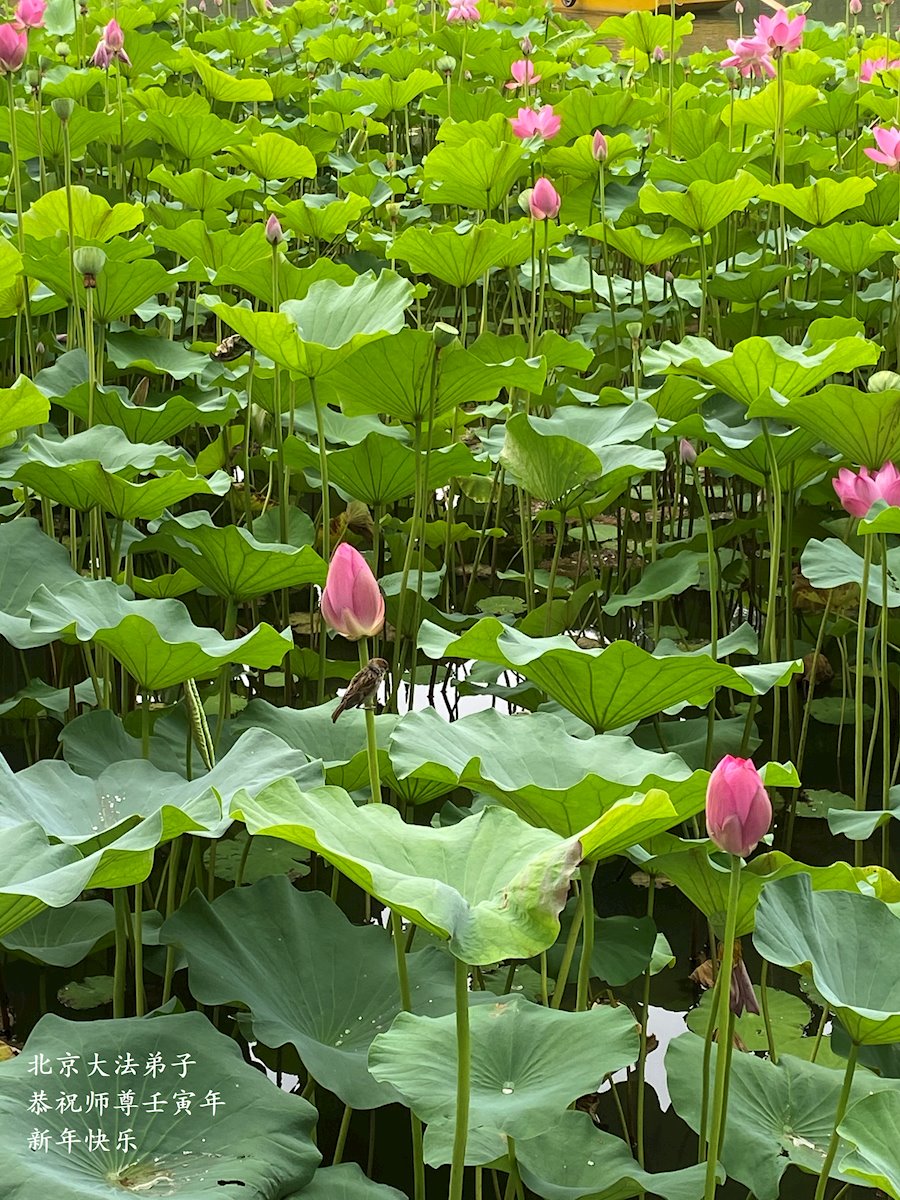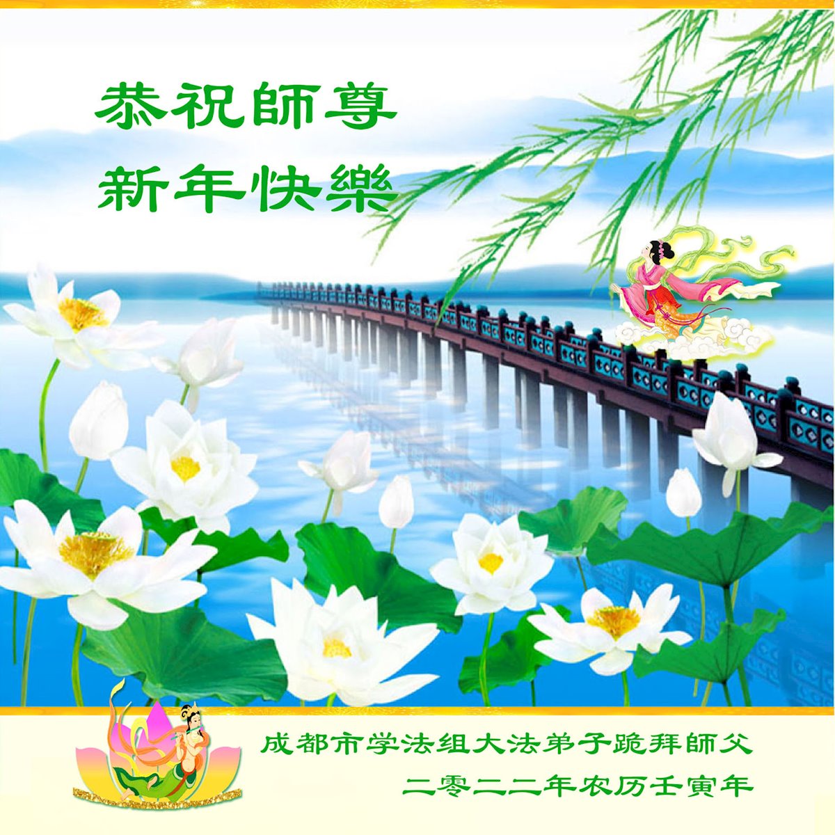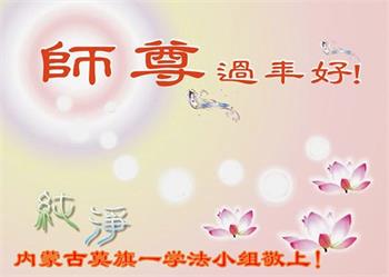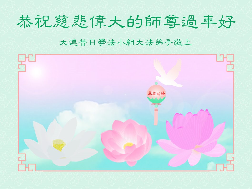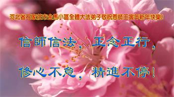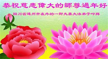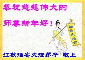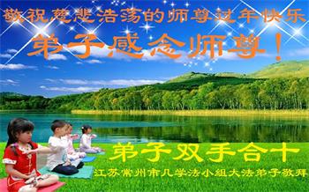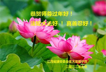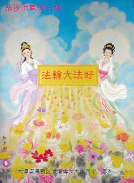 在师尊您的加持和保护下,又進入了新的一年。新的一年里,我们一定会按照师尊您的教诲,做好三件事,学好法,修好自己、多救人。紧跟师尊的正法進程,圆满随师还。