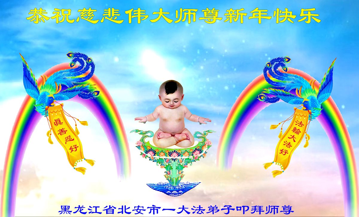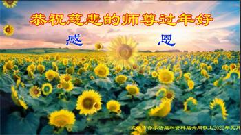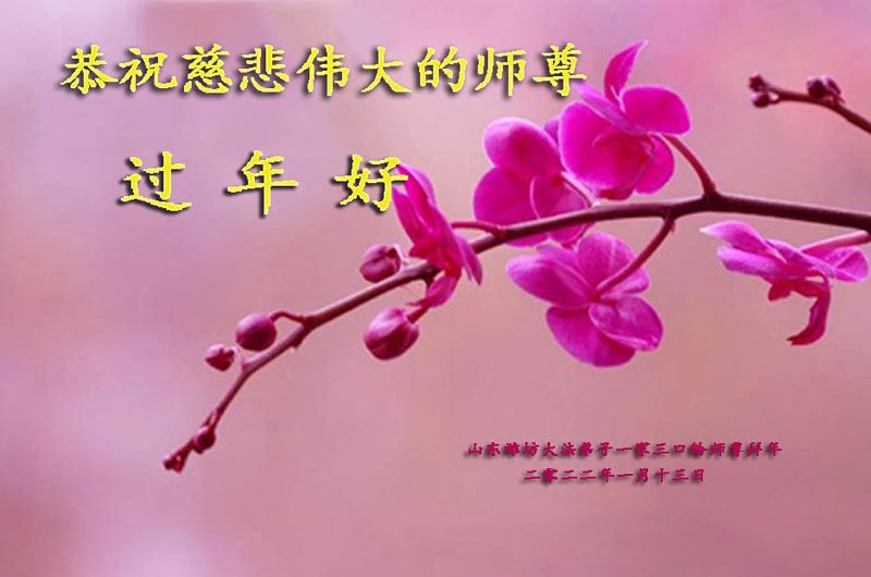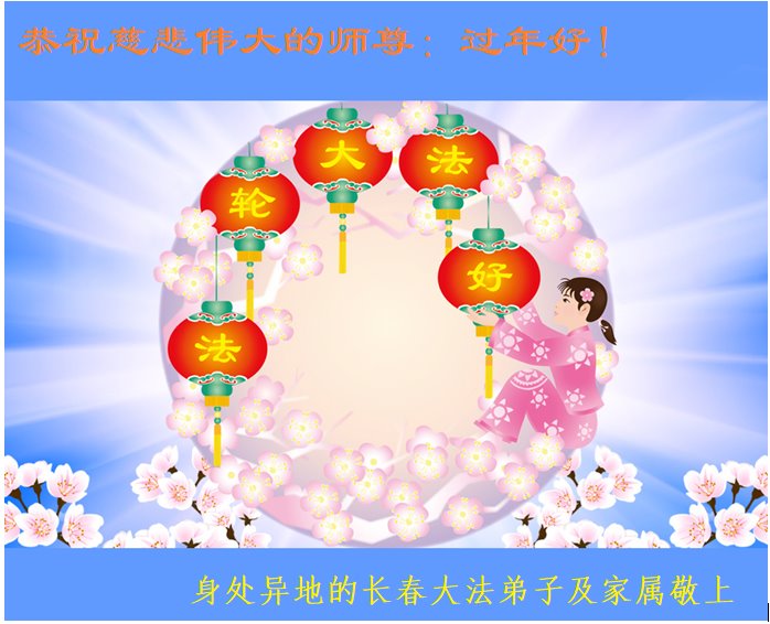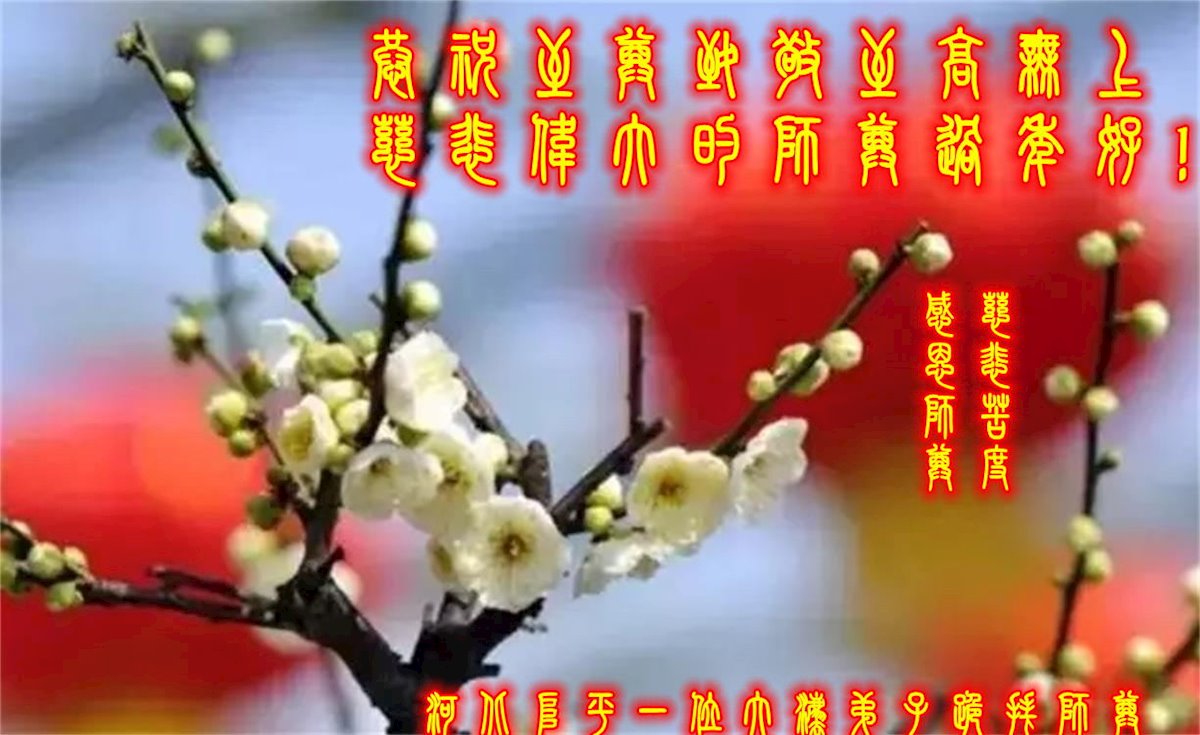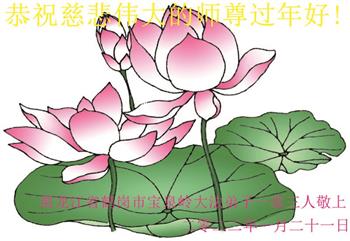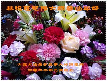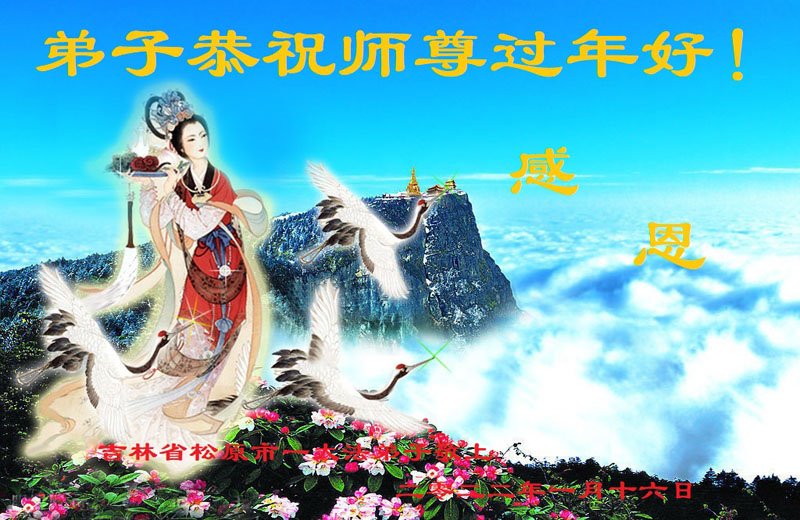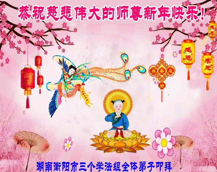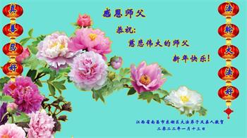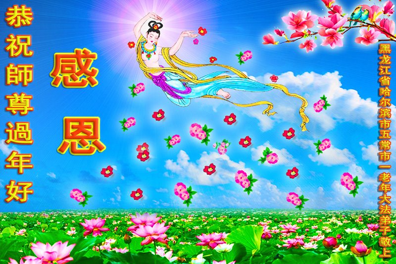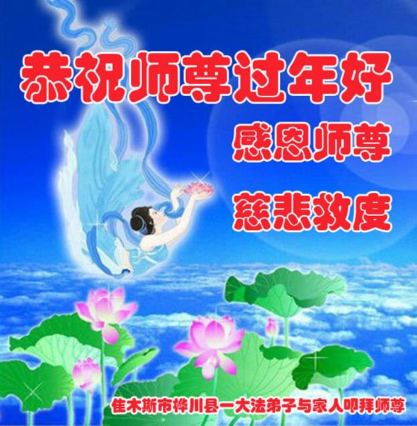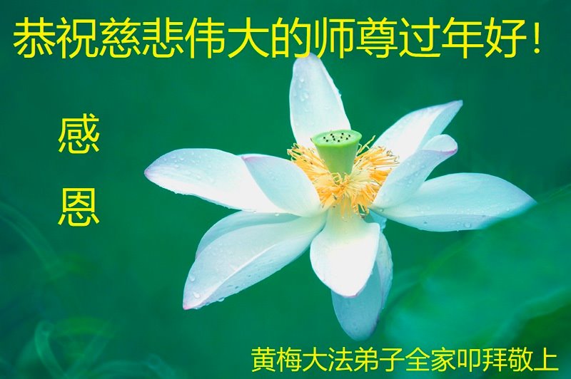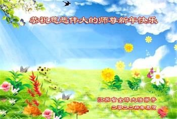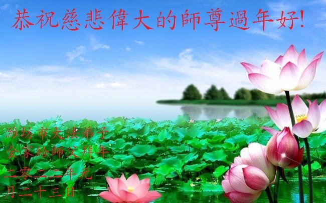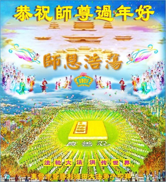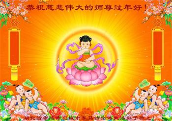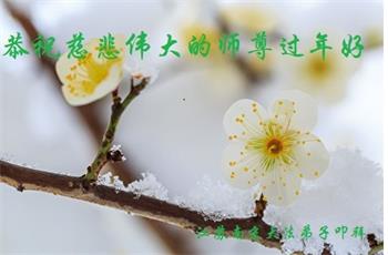 在新春佳节到来之际,弟子怀着无限感恩的心,恭祝慈悲伟大的师尊新年快乐!师尊您辛苦了!您为无量众生付出了无尽的辛苦,您无尽的慈悲驱散了阴霾,照亮了寰宇,在劫难中得救的众生对师尊只有无尽的感恩!无尽的感恩!