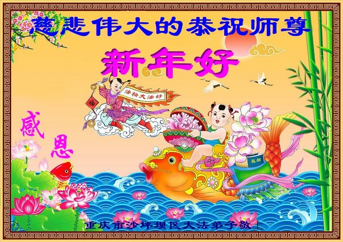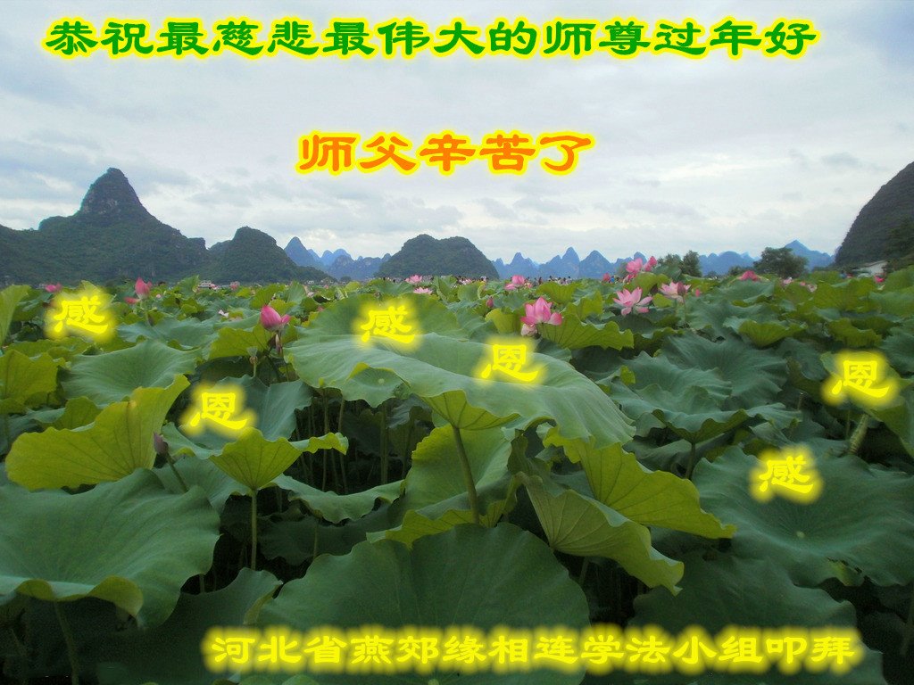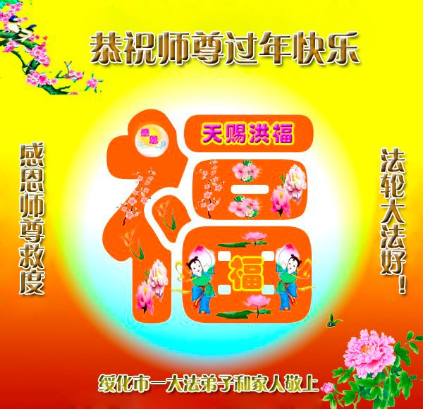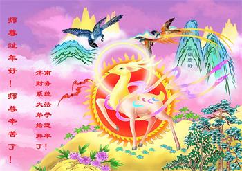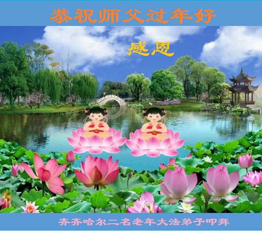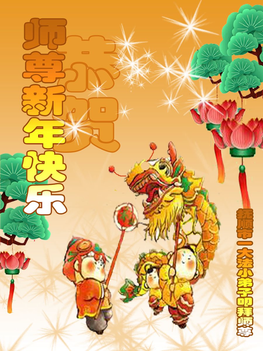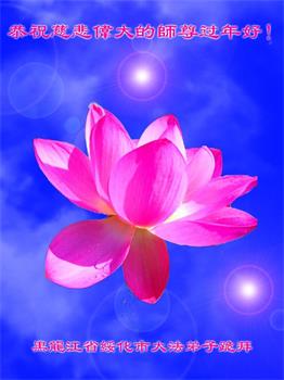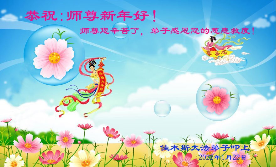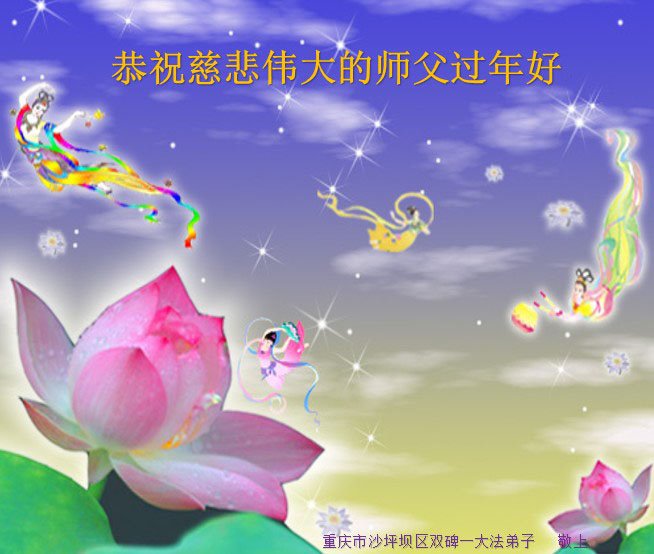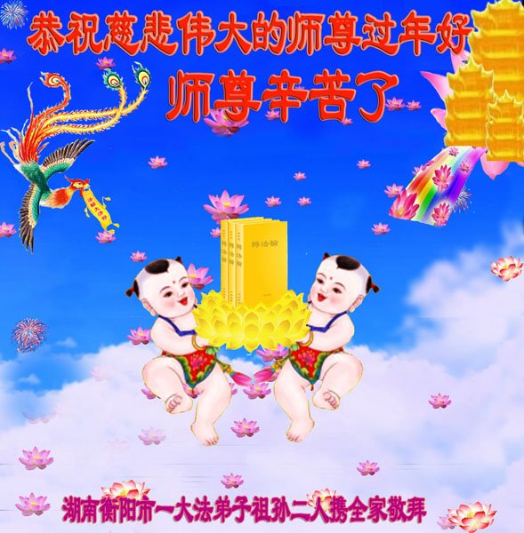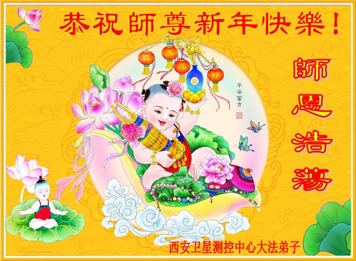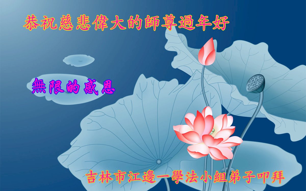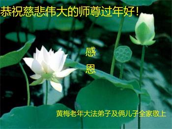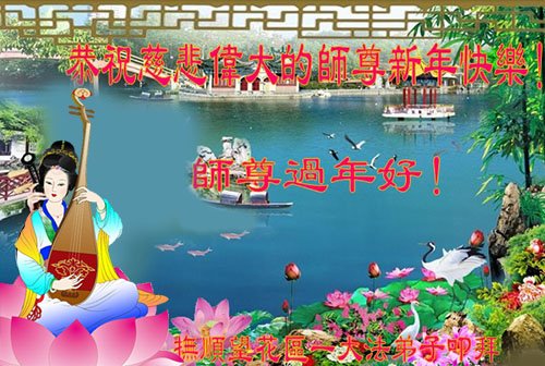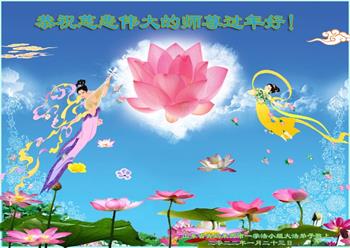 在新春佳节到来之际,弟子怀着无限感恩的心,恭祝慈悲伟大的师尊新年快乐!师尊您辛苦了!您为无量众生付出了无尽的辛苦,您无尽的慈悲驱散了阴霾,照亮了寰宇,在劫难中得救的众生对师尊只有无尽的感恩!无尽的感恩!